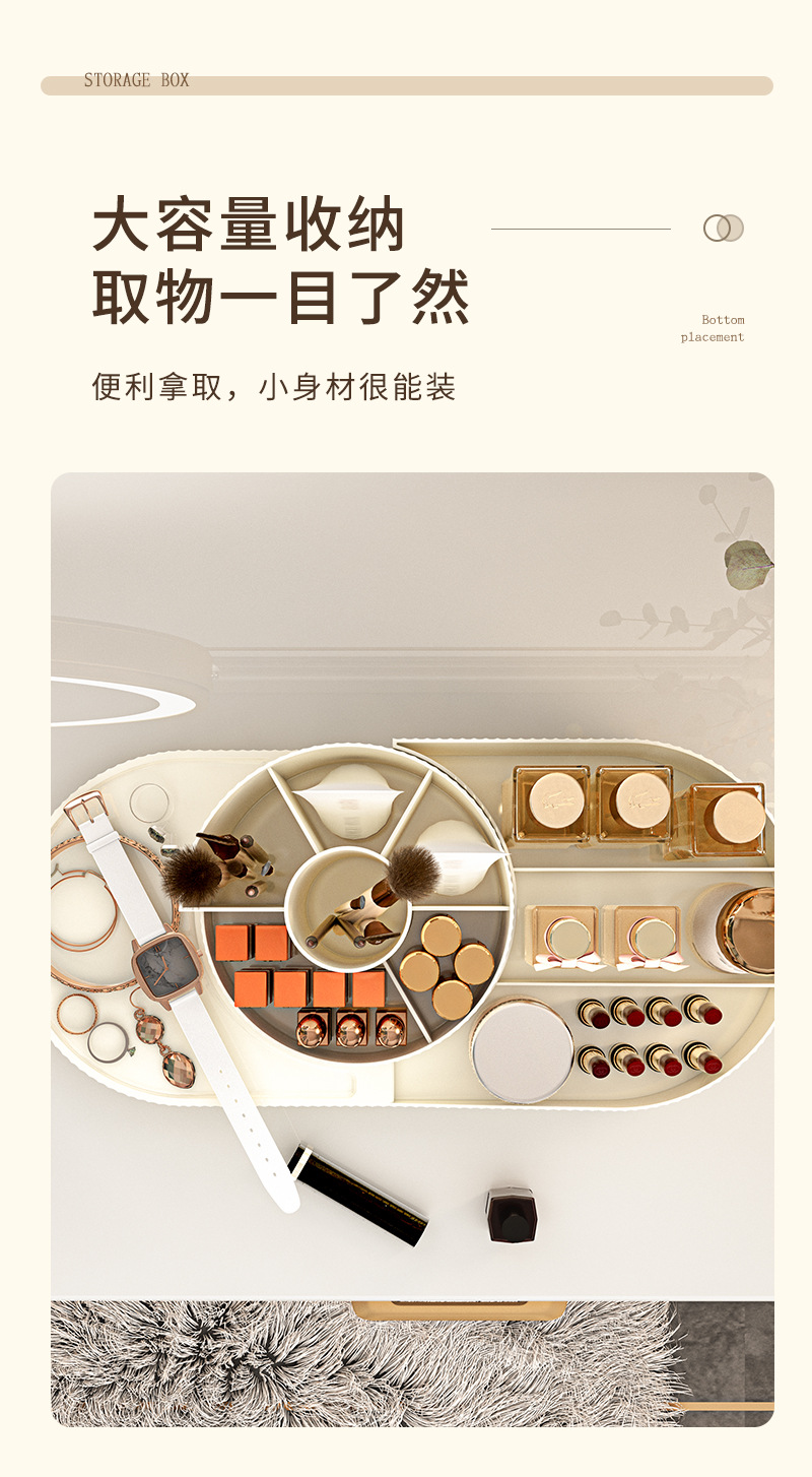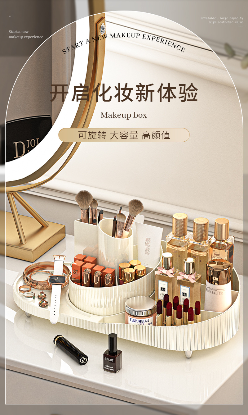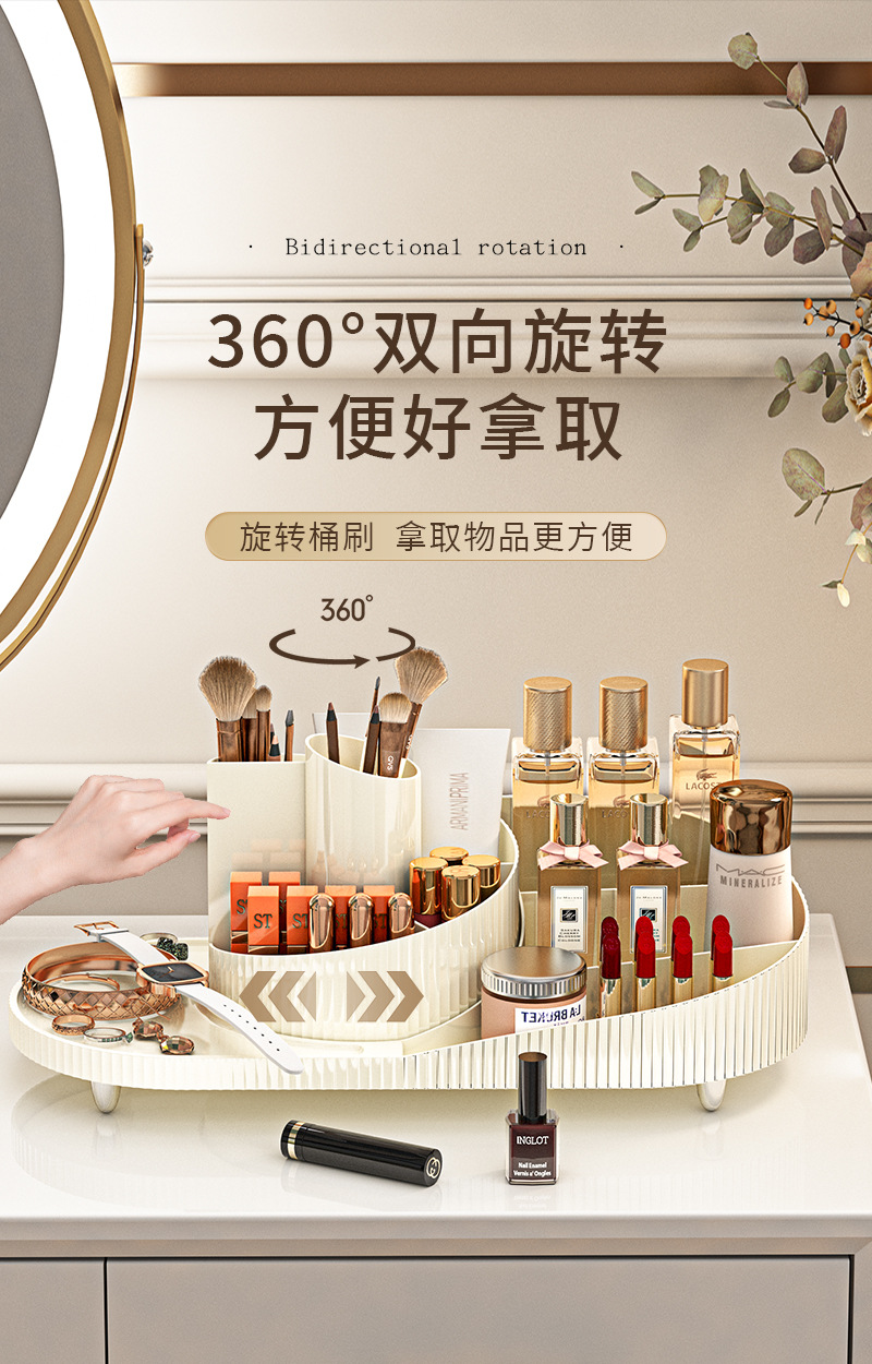 轻奢简约化妆品收纳盒台面梳妆台化妆刷口红高级感眼影桌面旋转收