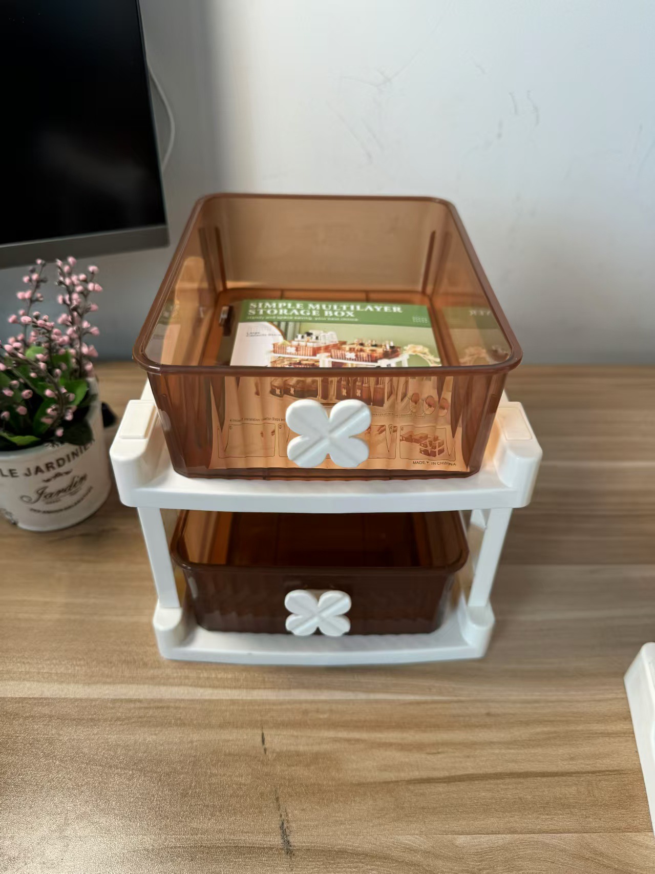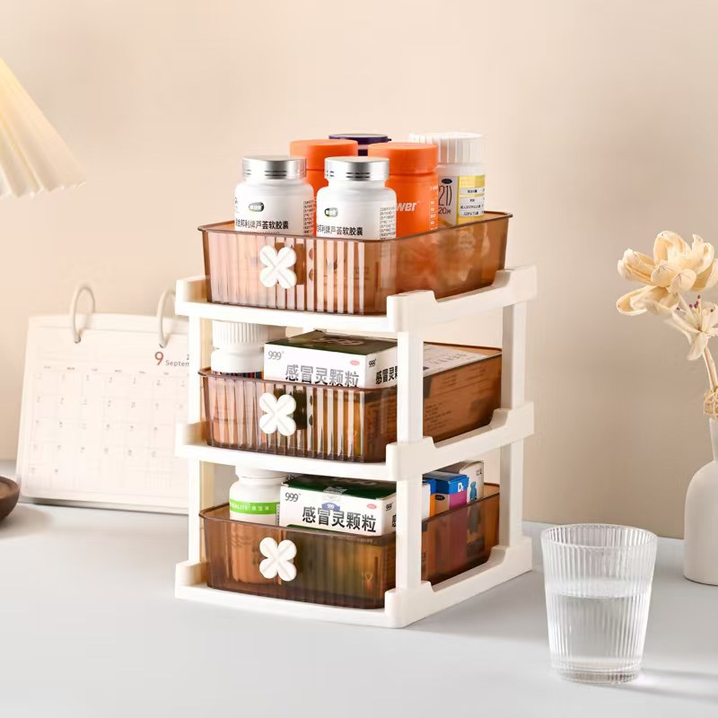 多层收纳盒抽屉式透明梳妆台化妆品收纳盒塑料多层文具整理置物架