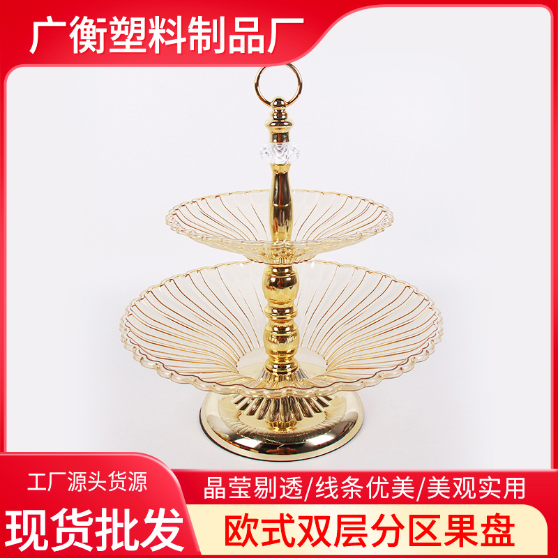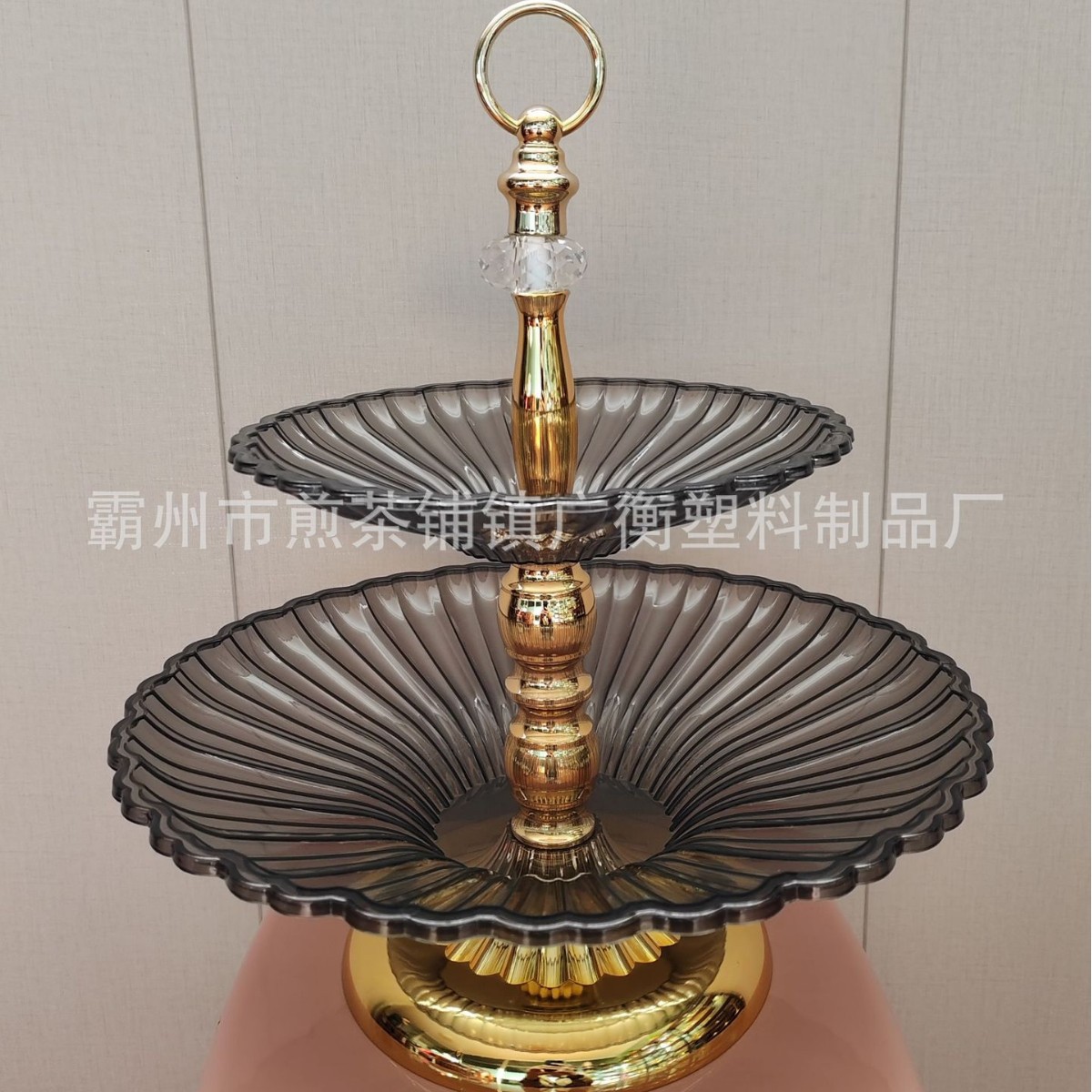 简约欧式装饰果盘水晶双层果盘家居甜品展示架茶几餐桌KTV用大号