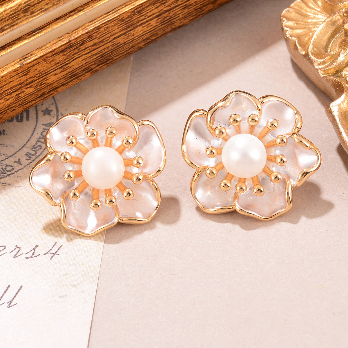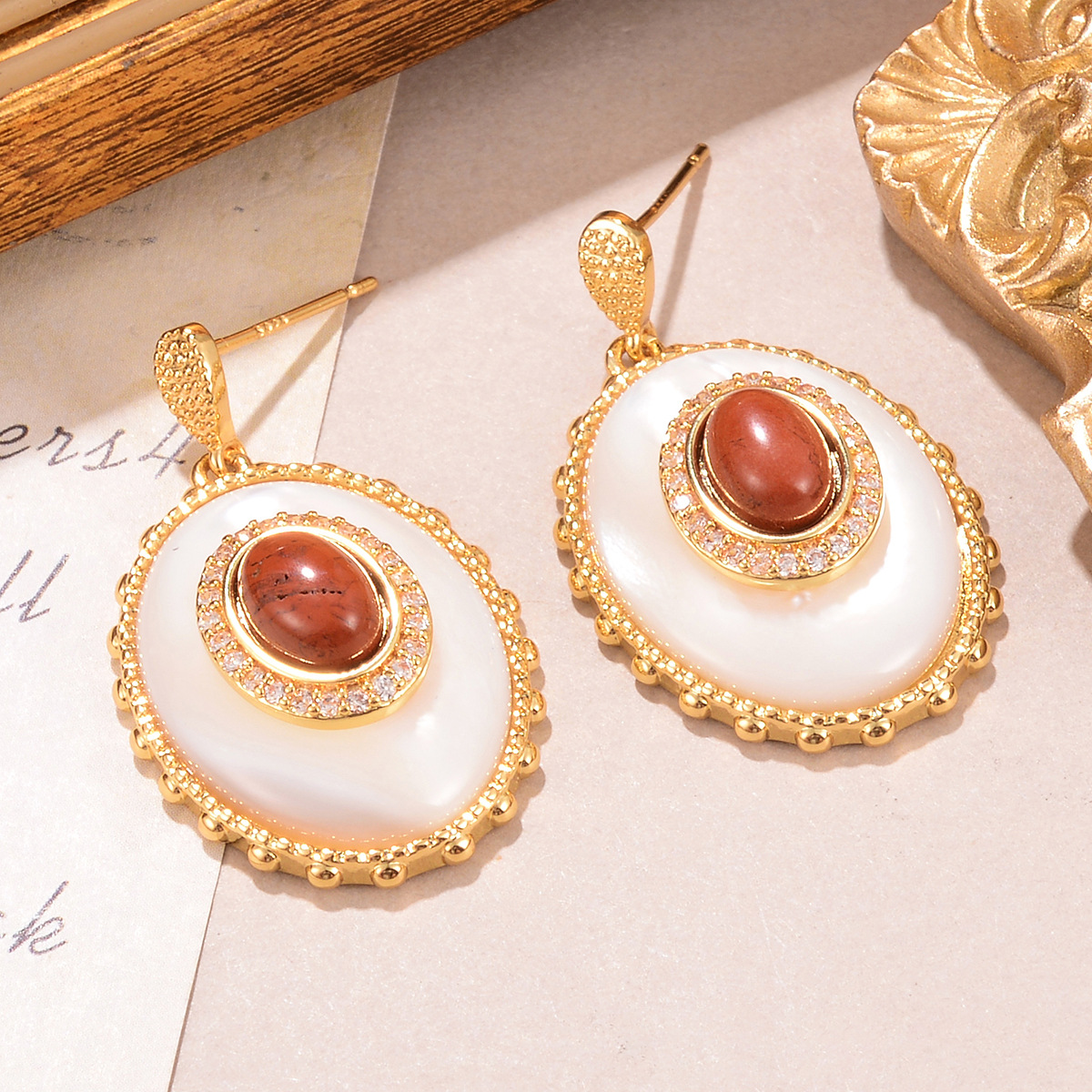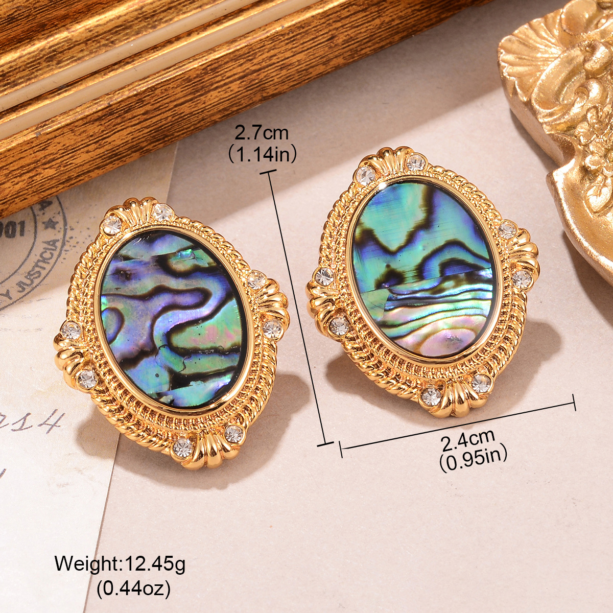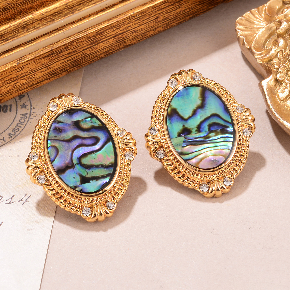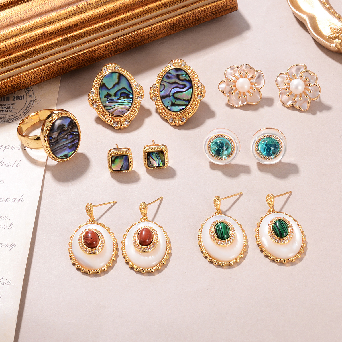 复古天然石耳钉鲍鱼贝花朵vintage中古风轻奢高级感法式耳饰批发