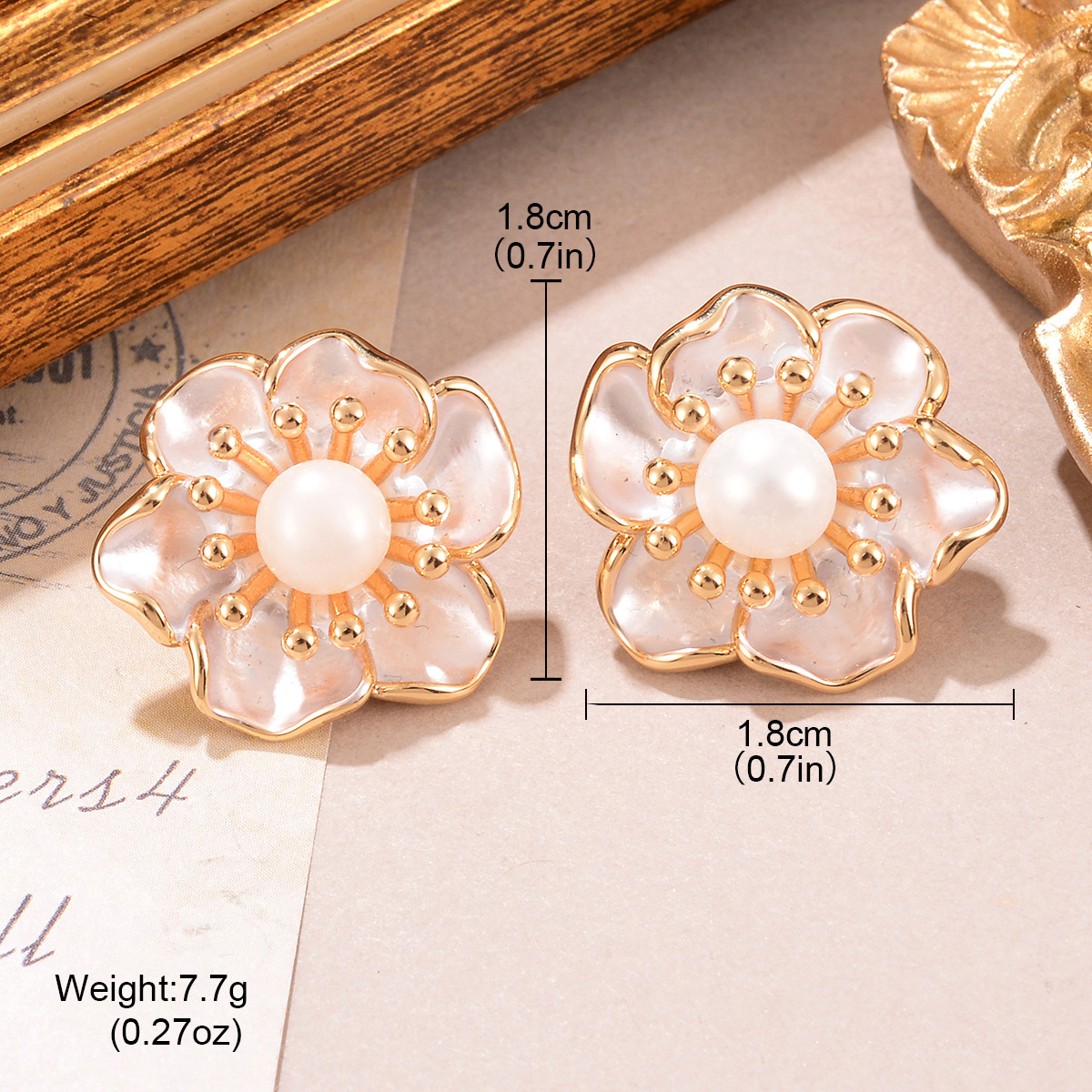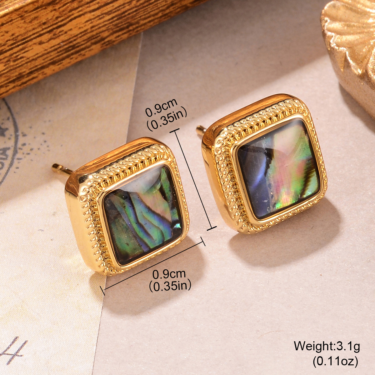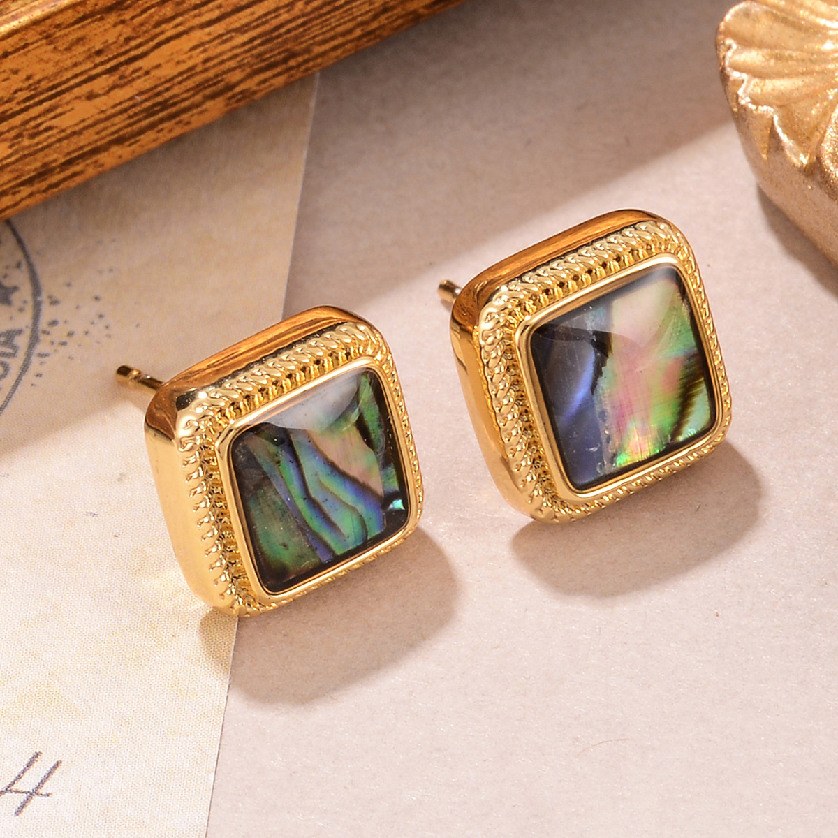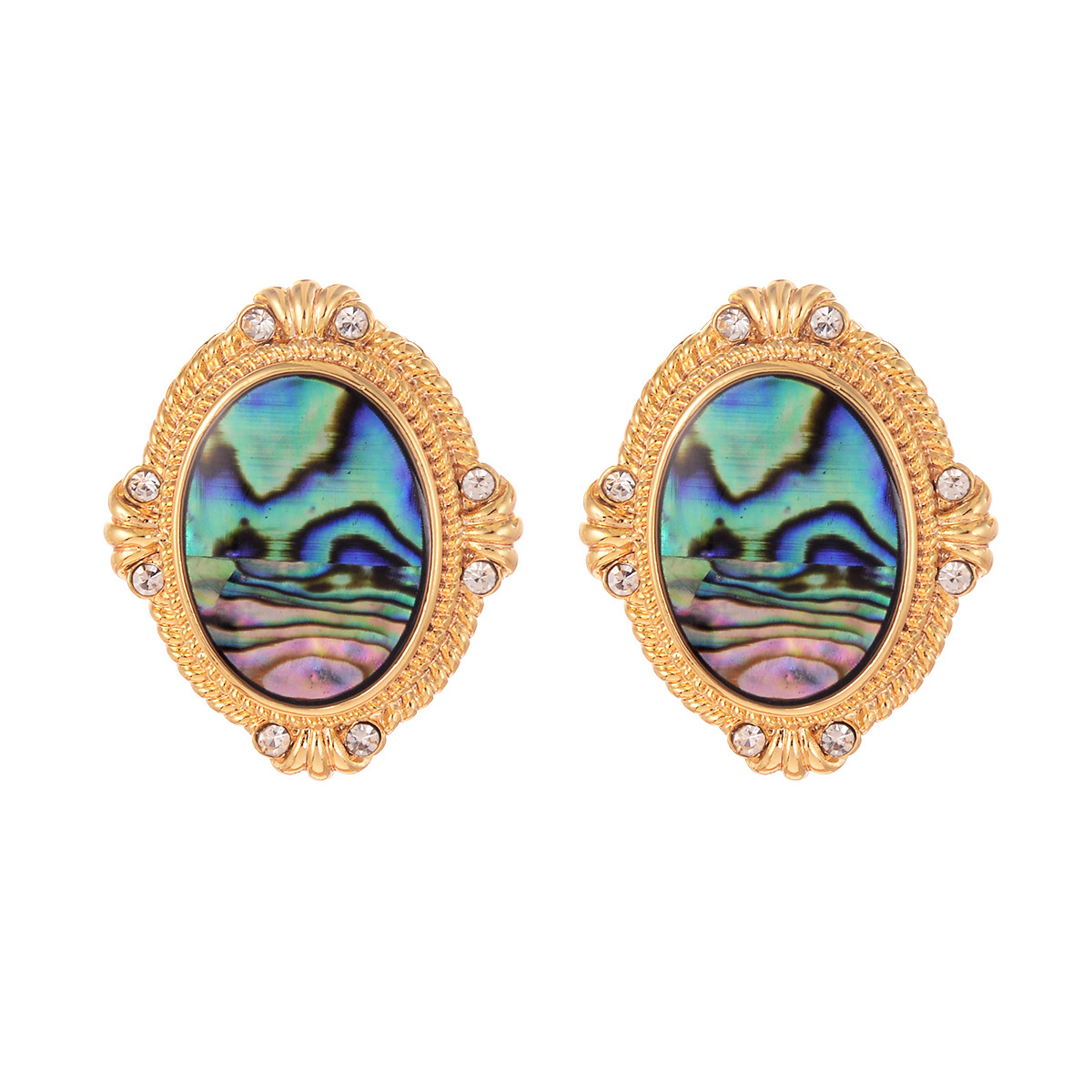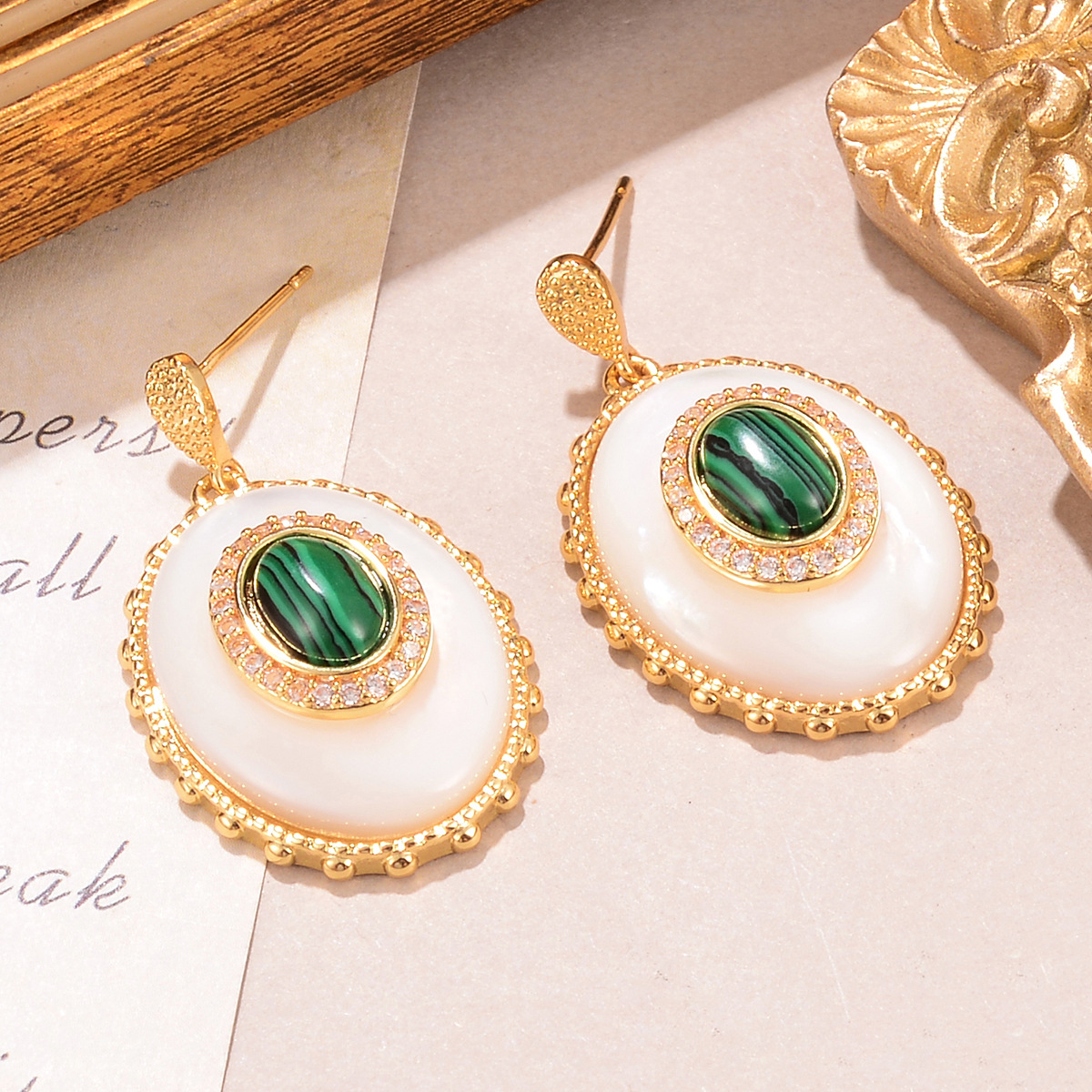 复古天然石耳钉鲍鱼贝花朵vintage中古风轻奢高级感法式耳饰批发