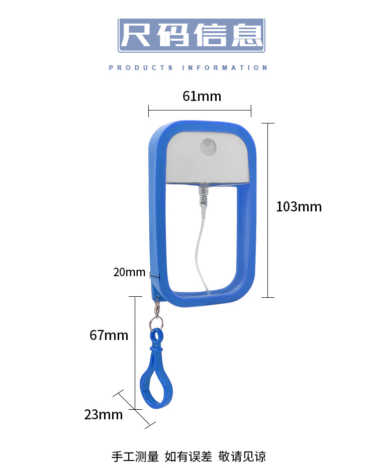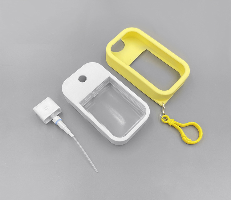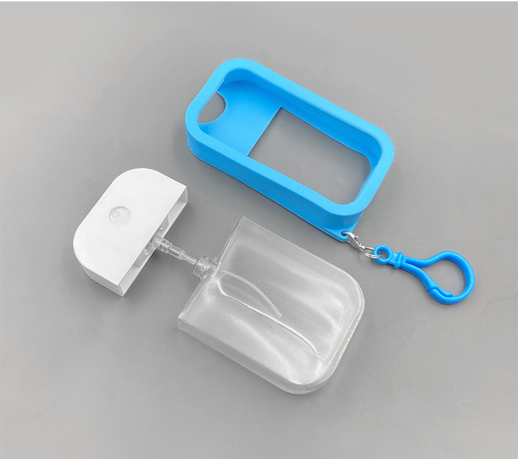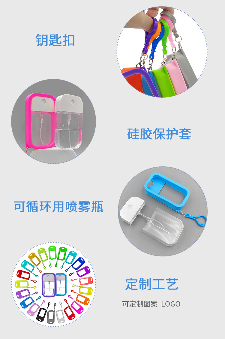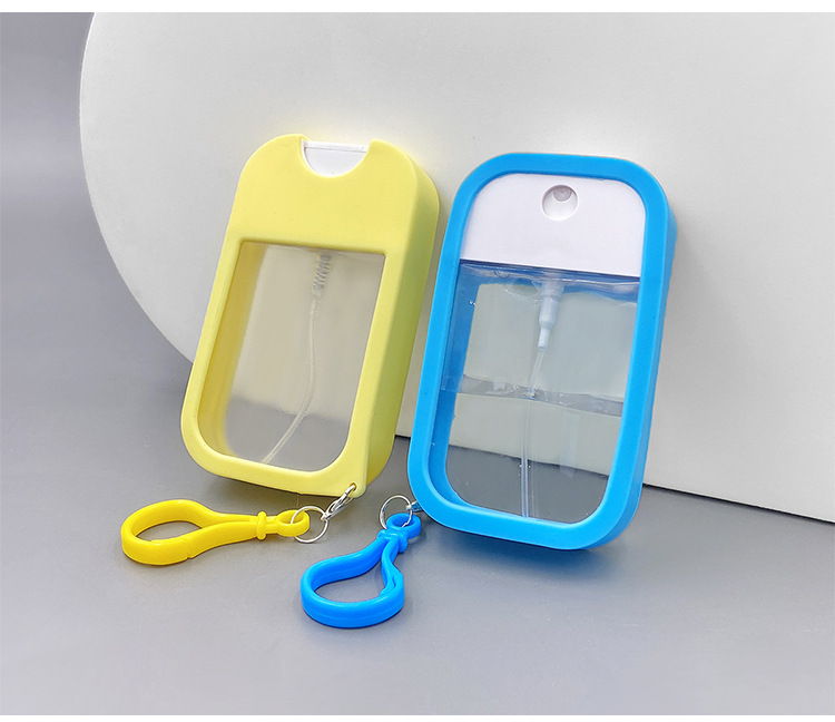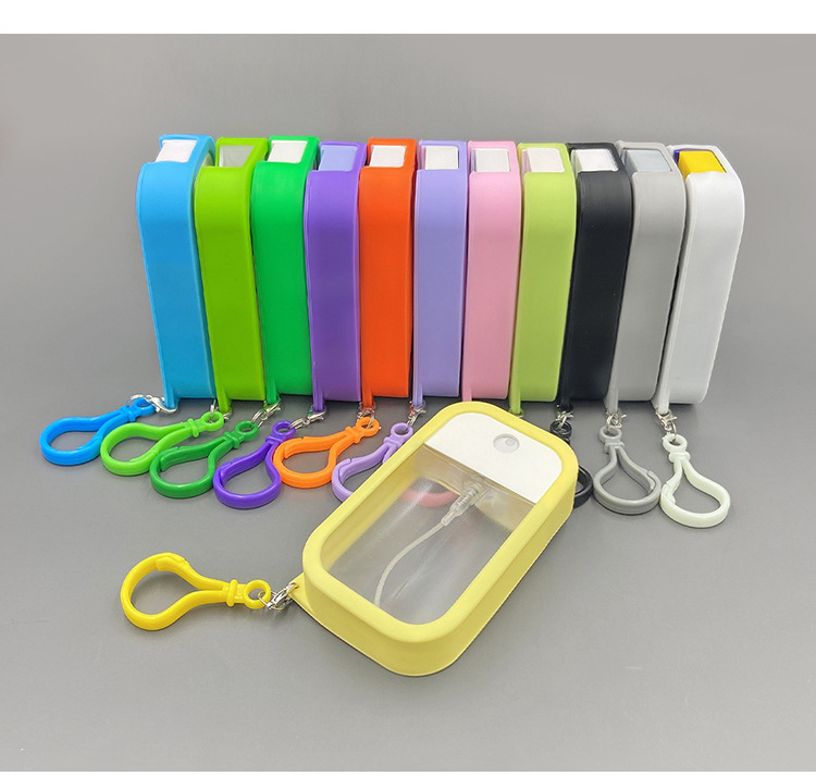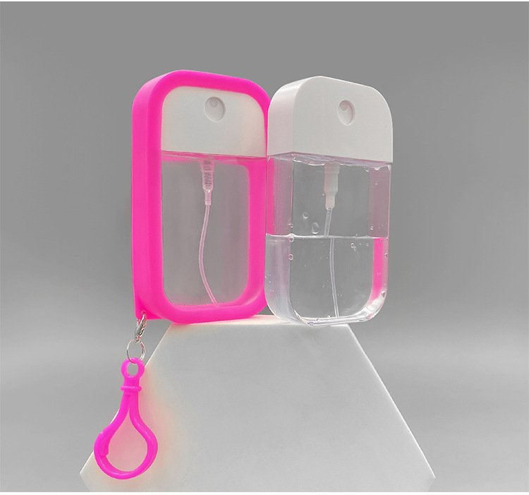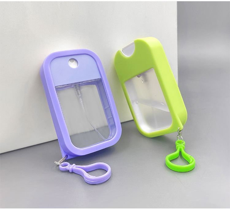 批发38ml卡片瓶洗手液瓶硅胶套挂钩苹果卡片酒精消毒液喷雾瓶