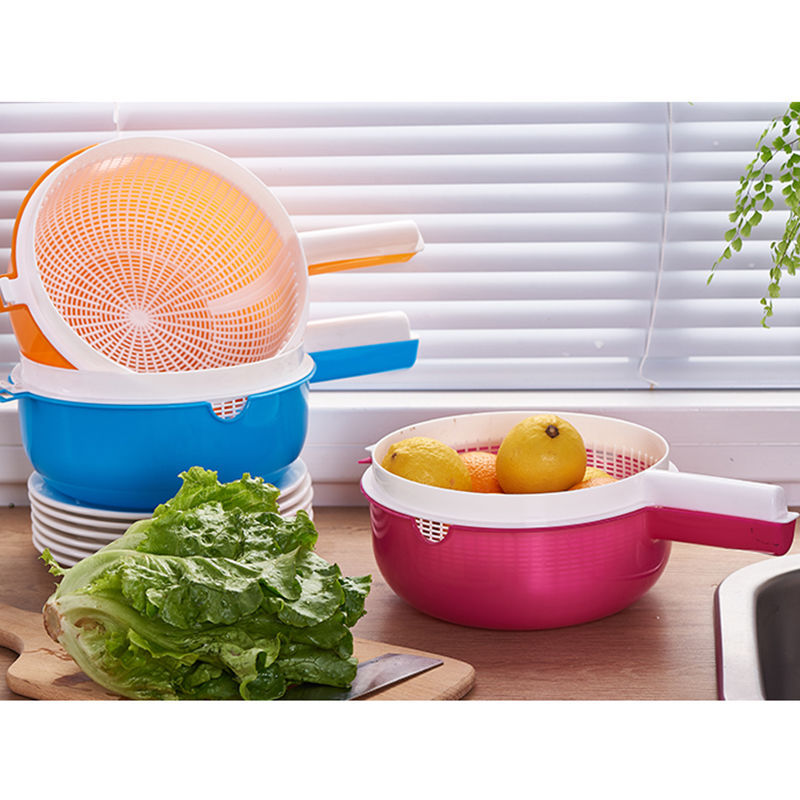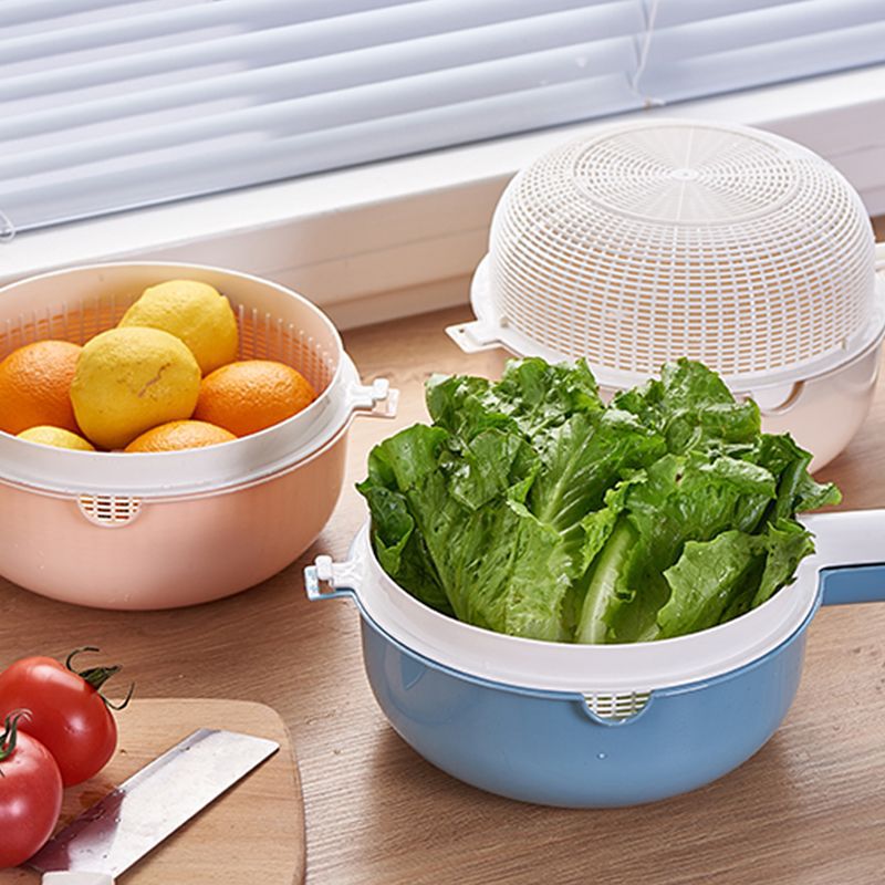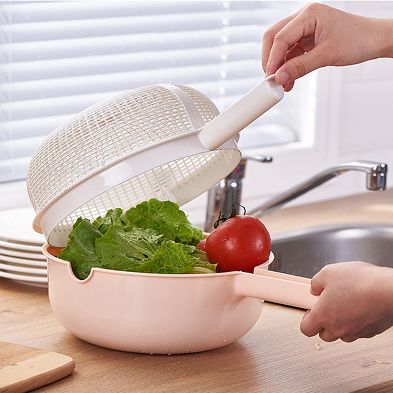 kimchi shop special double-layer handle drain basket with handle plastic vegetable basket vegetables and fruits water throwing draining basin