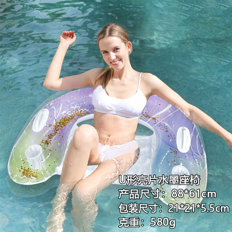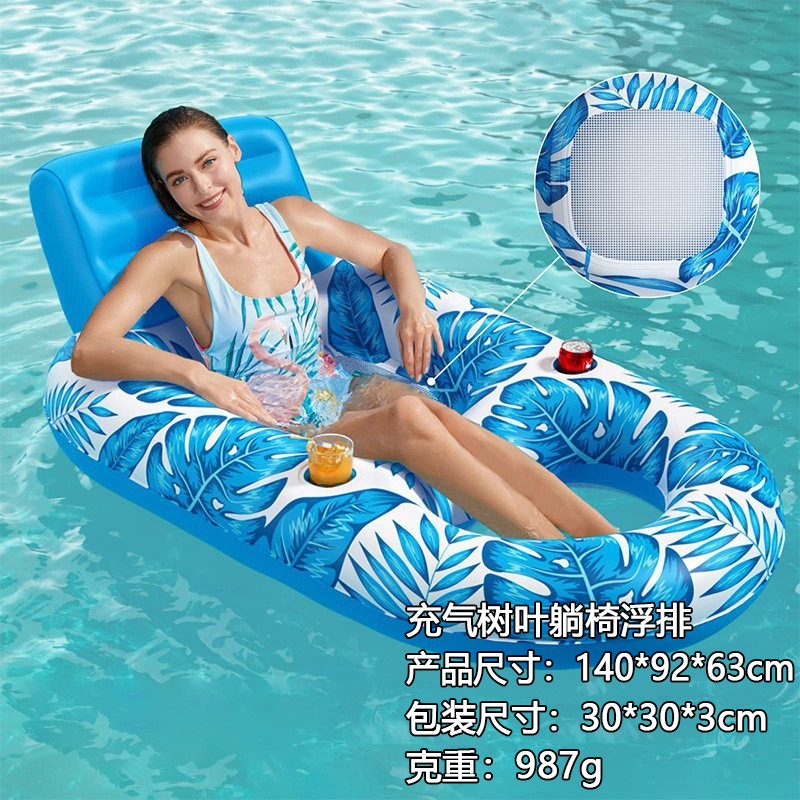 跨境游泳池PVC充气浮排可折叠水上条纹吊床成人游乐躺椅浮床批发