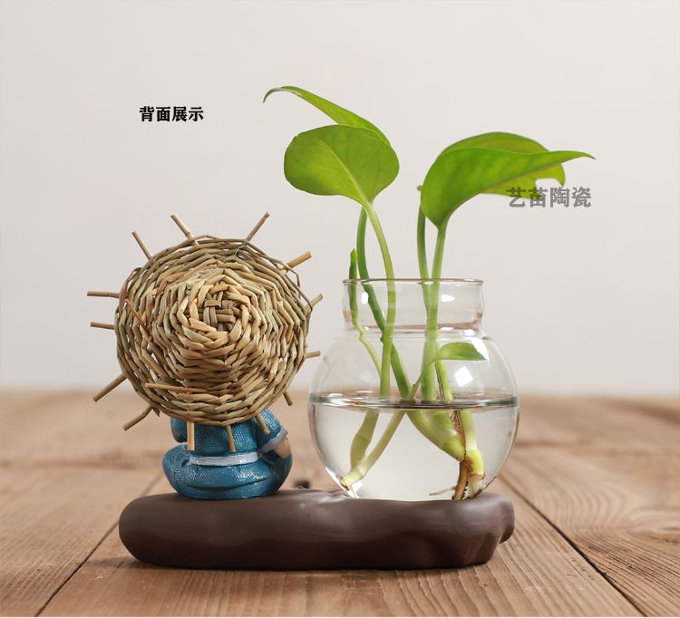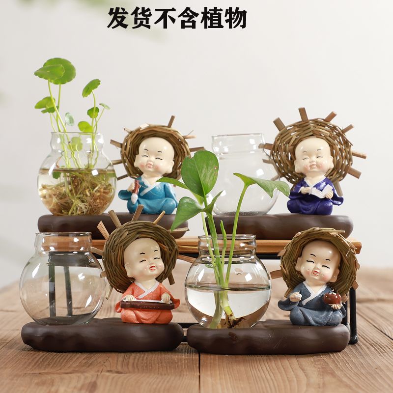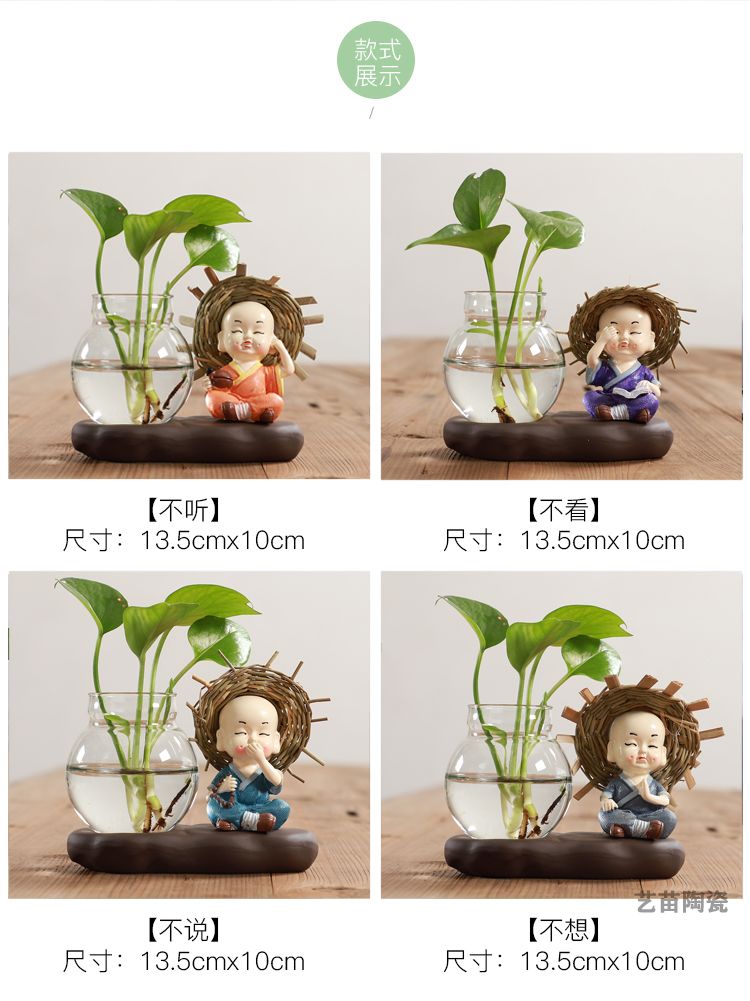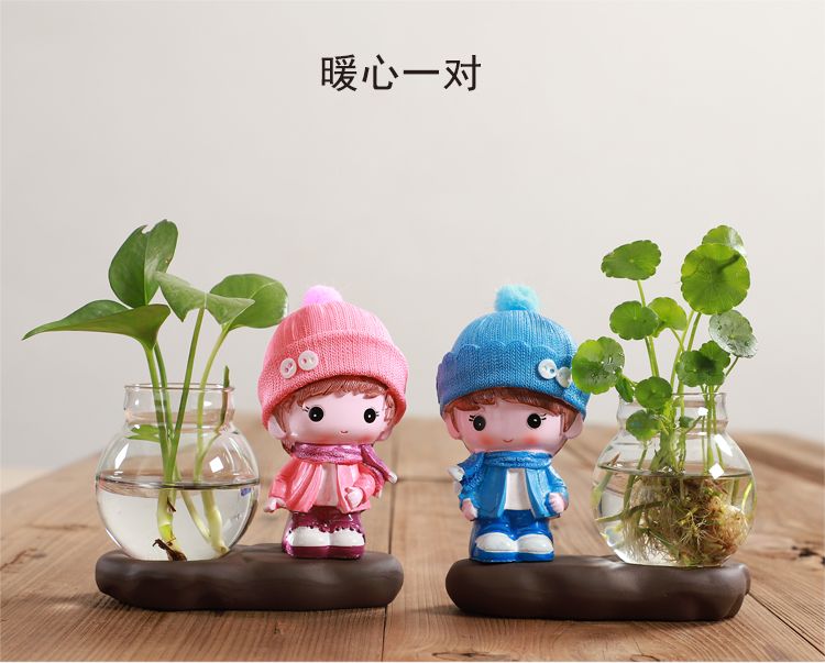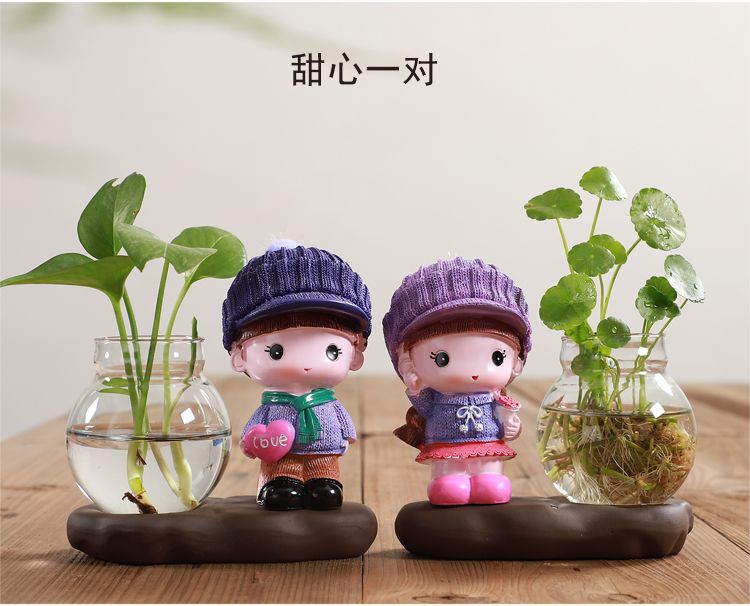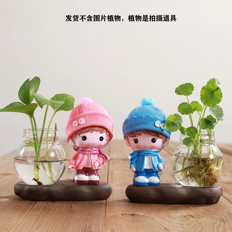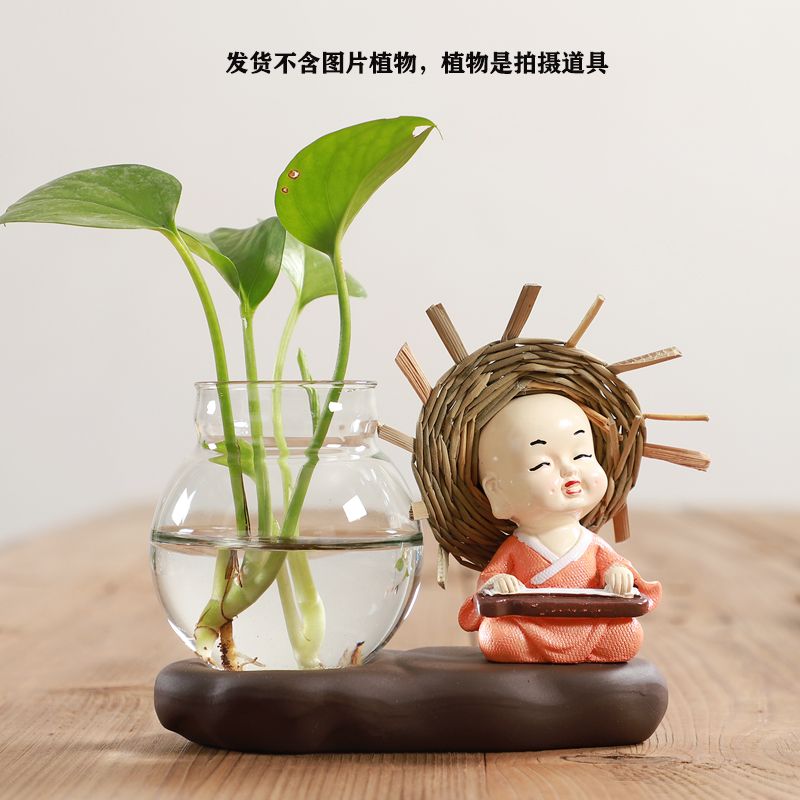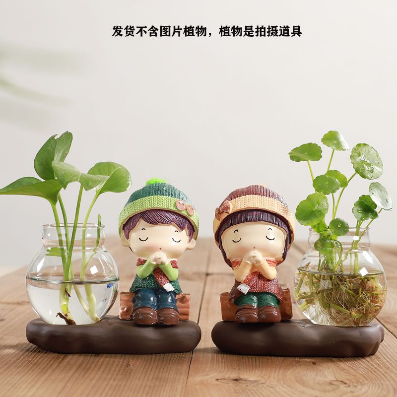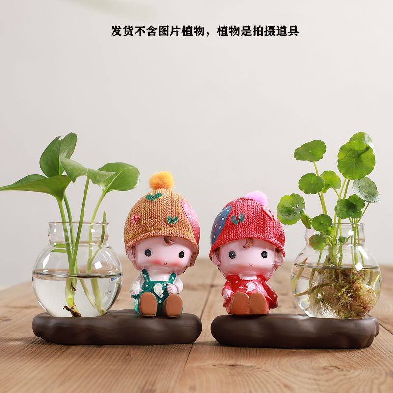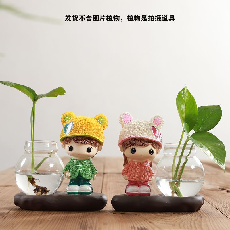 可爱创意小玻璃花瓶卡通人物水培花盆桌面摆件绿萝金钱草水养花器