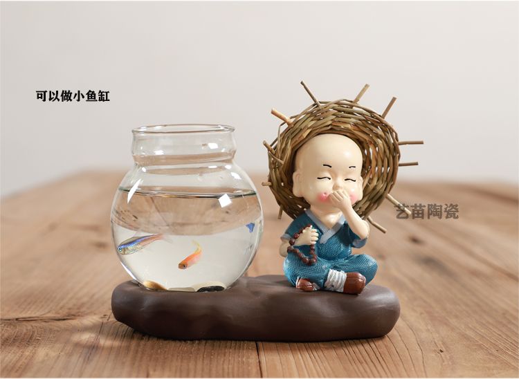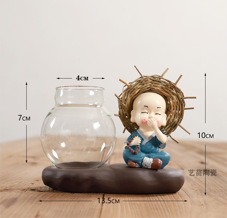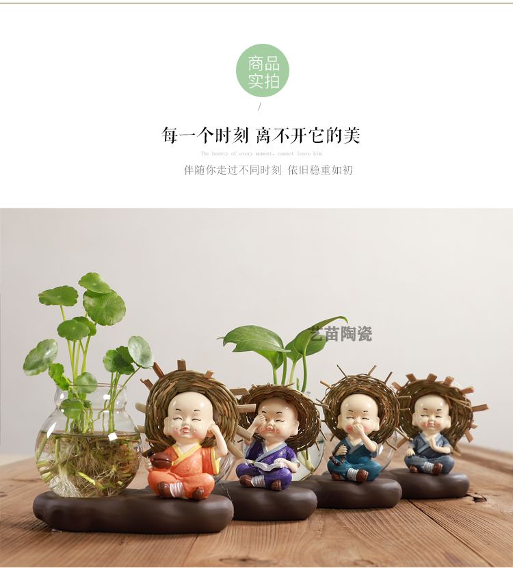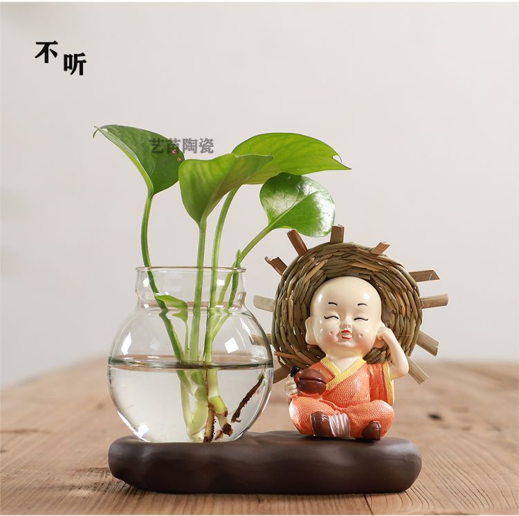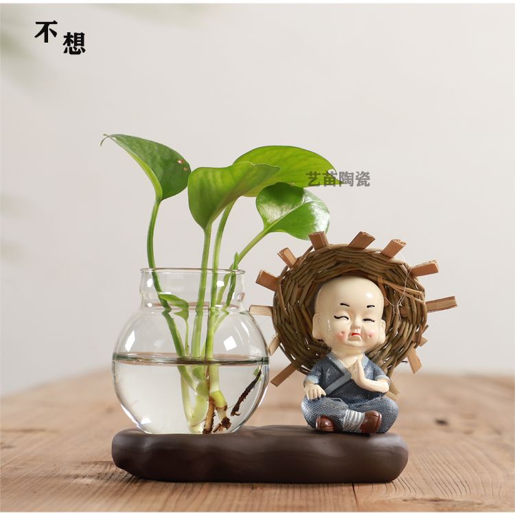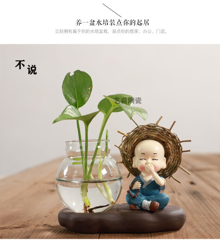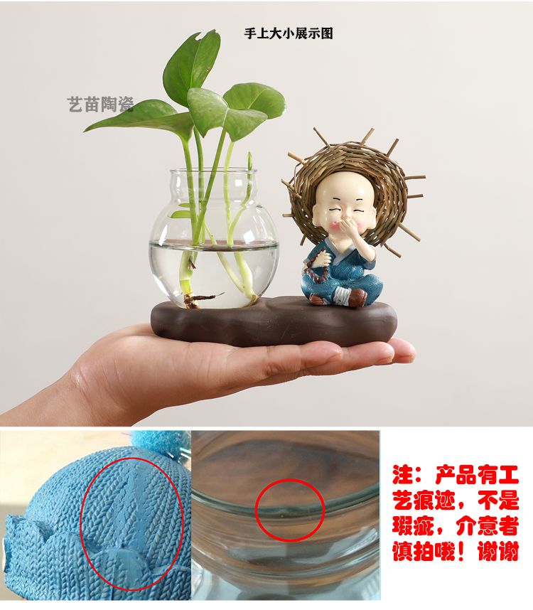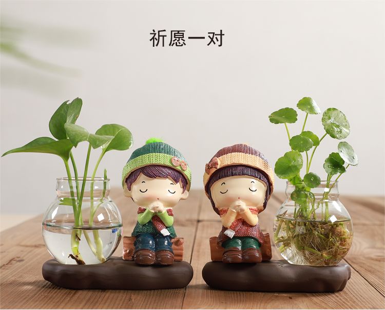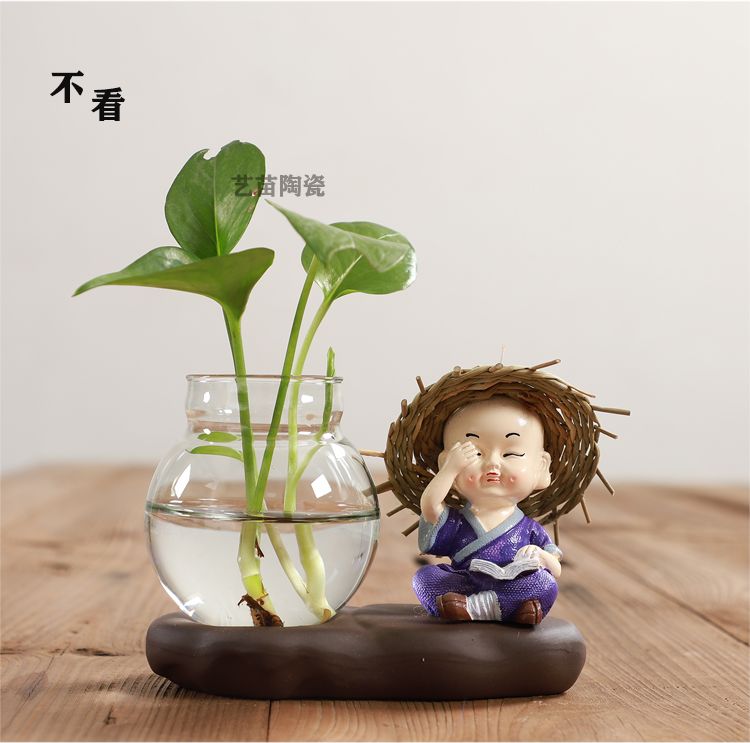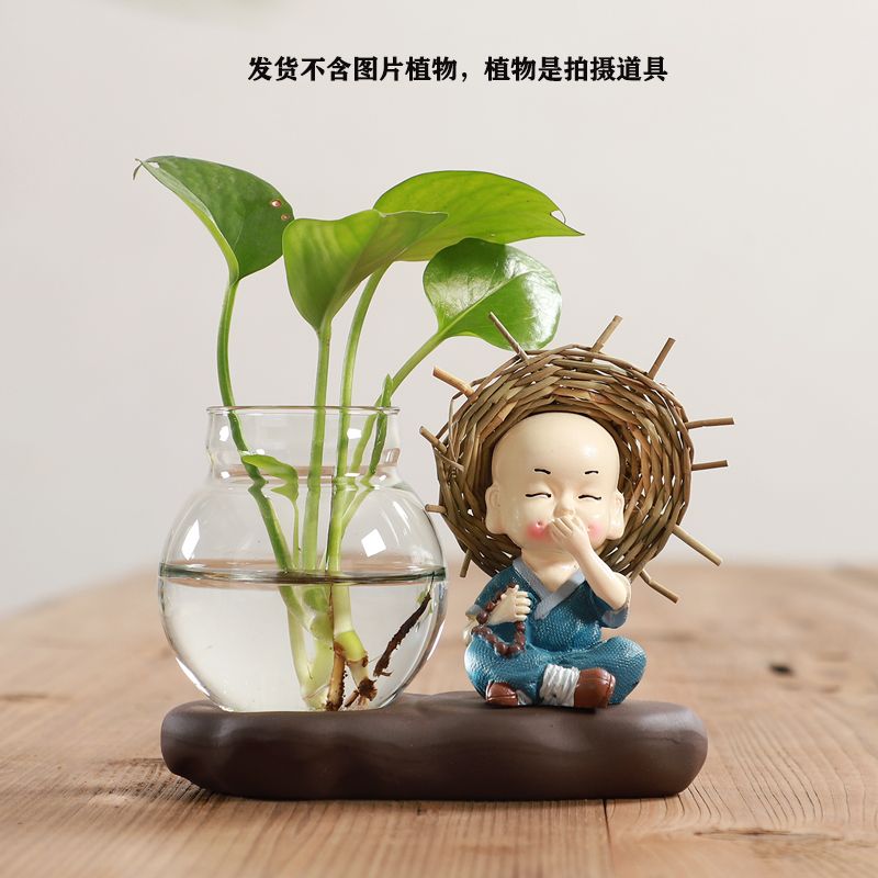可爱创意小玻璃花瓶卡通人物水培花盆桌面摆件绿萝金钱草水养花器