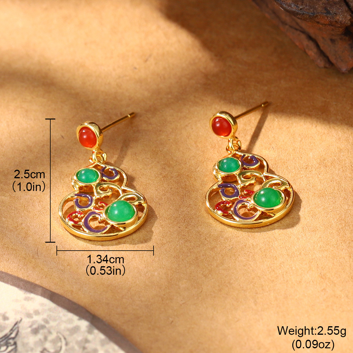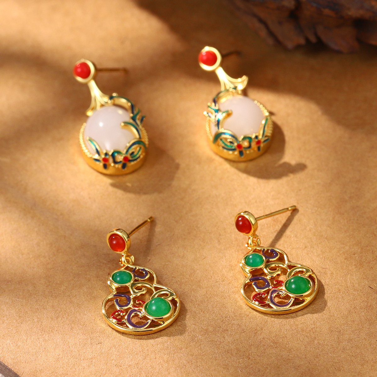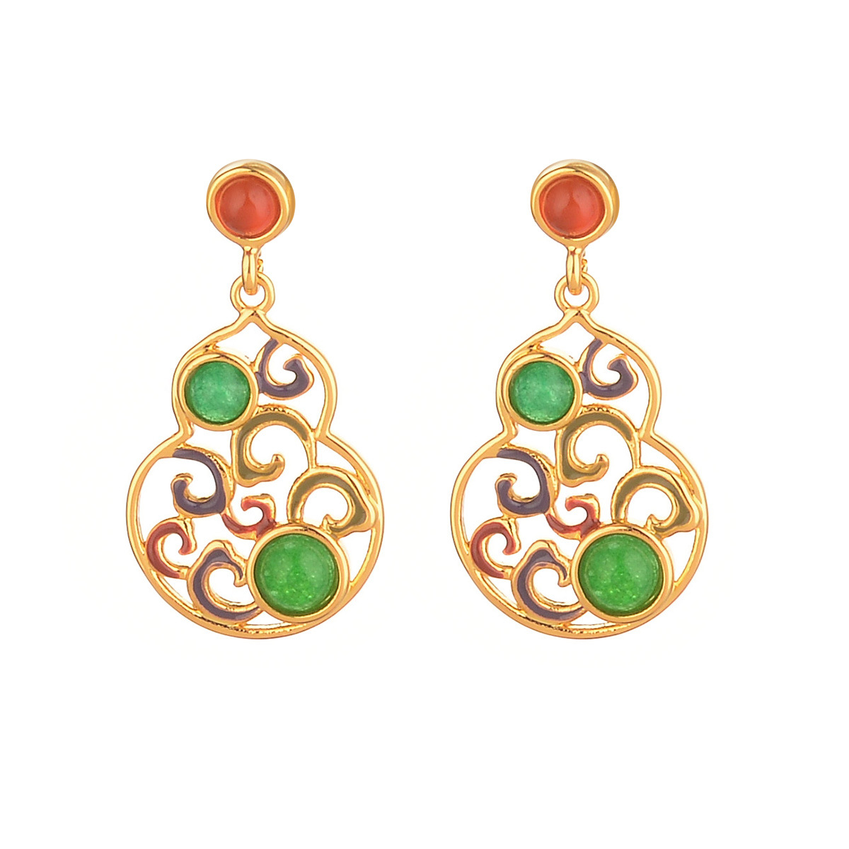 新款秋冬新中式宫廷风葫芦气质仿玉石耳环复古国潮高级感耳饰批发