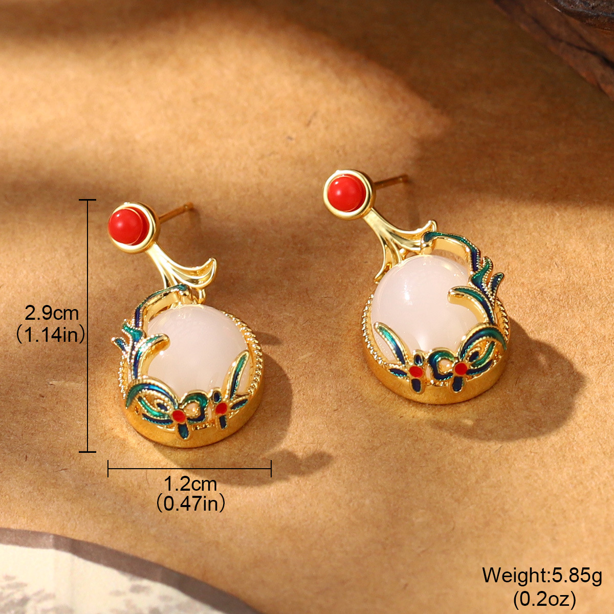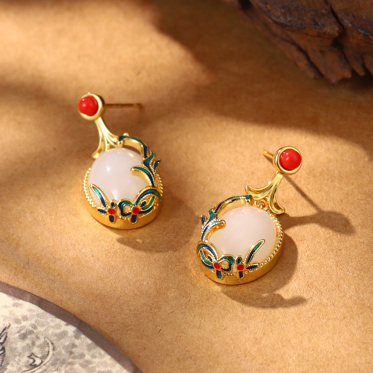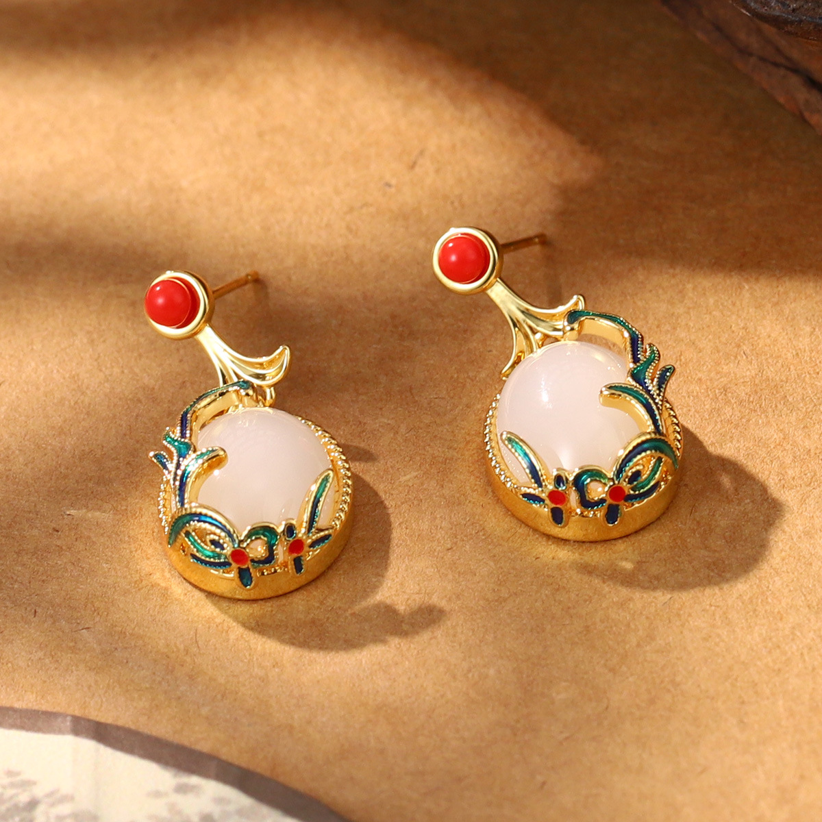 新款秋冬新中式宫廷风葫芦气质仿玉石耳环复古国潮高级感耳饰批发