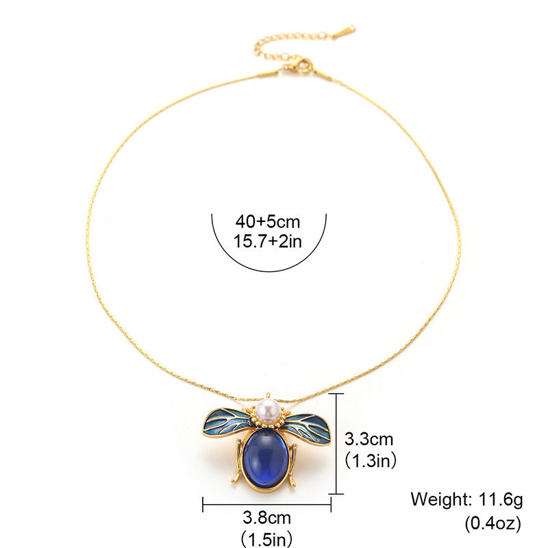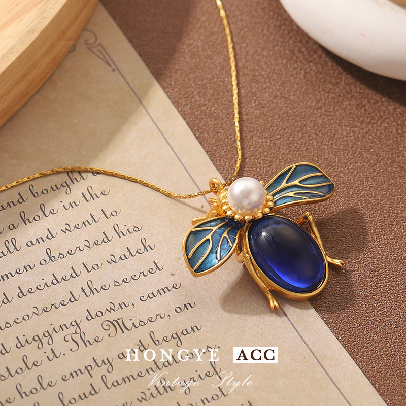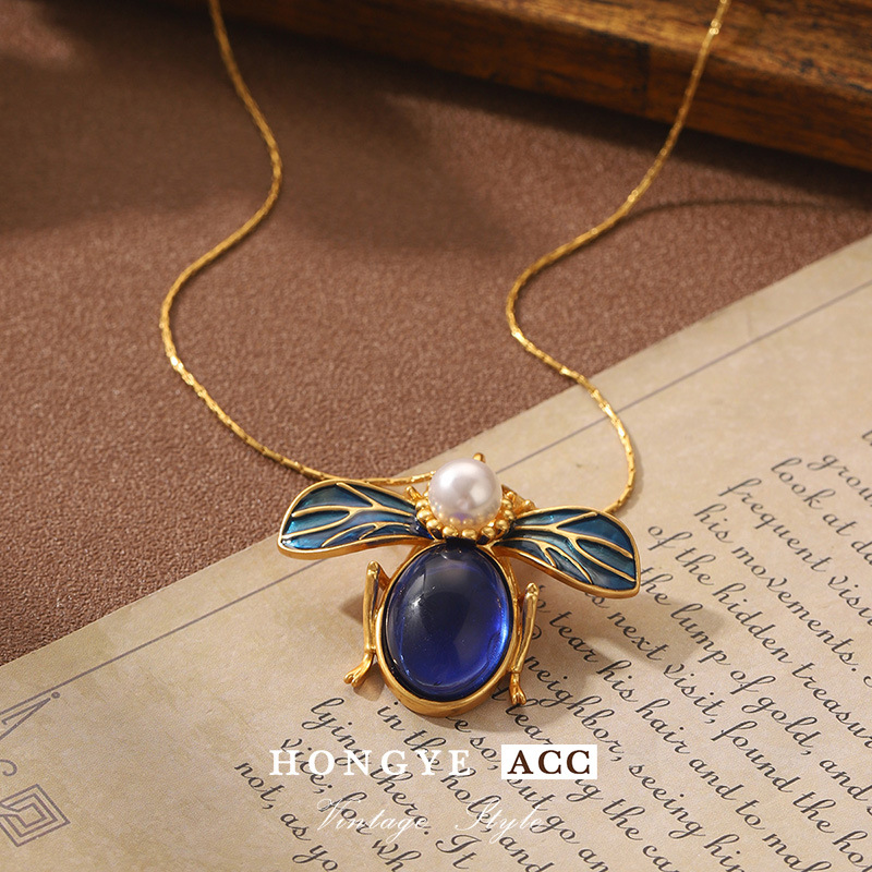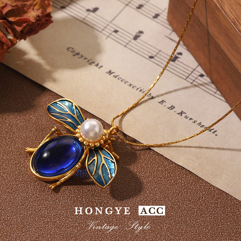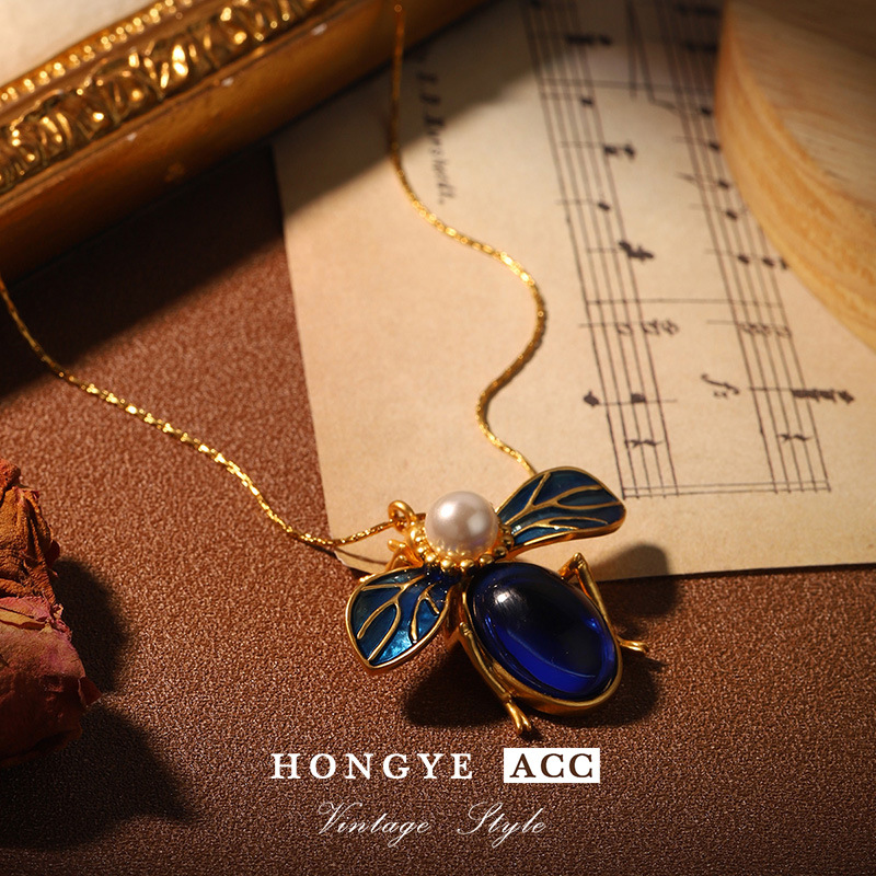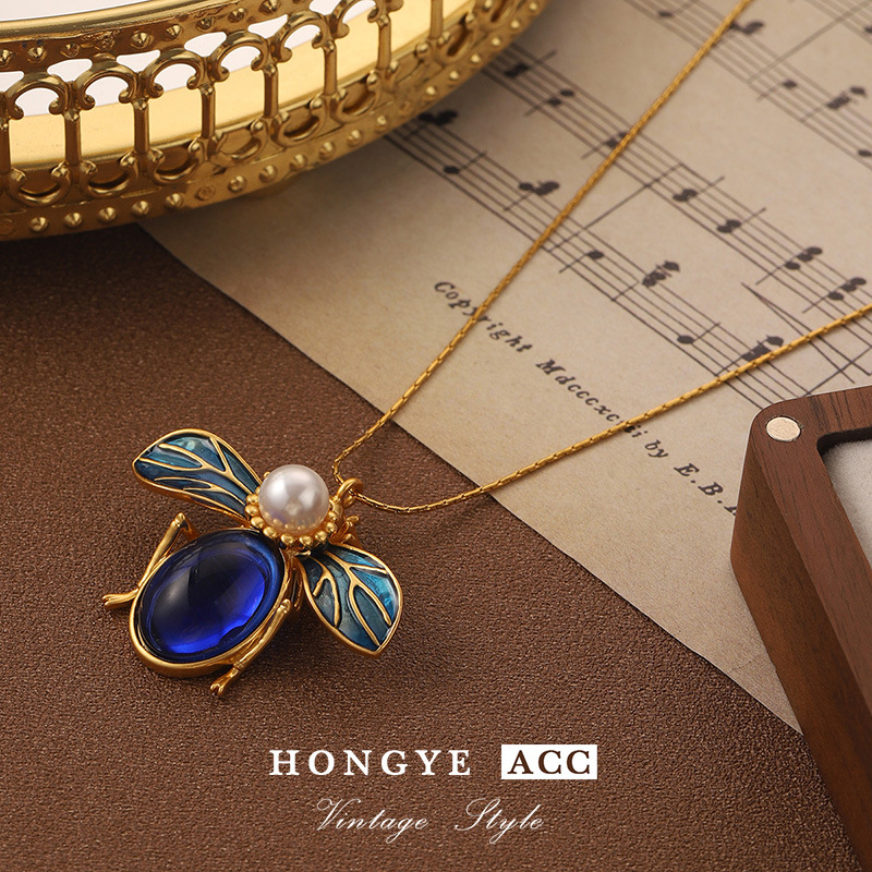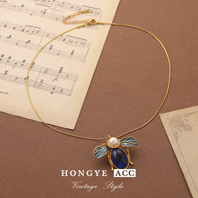珍珠链条蜜蜂项链复古毛衣链中古油画高级感吊坠女士小众锁骨