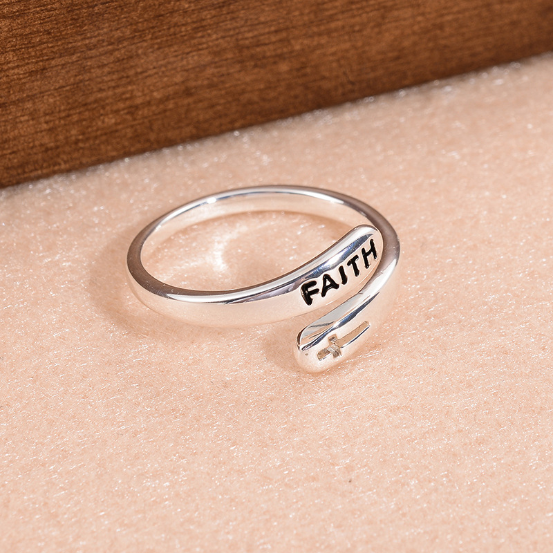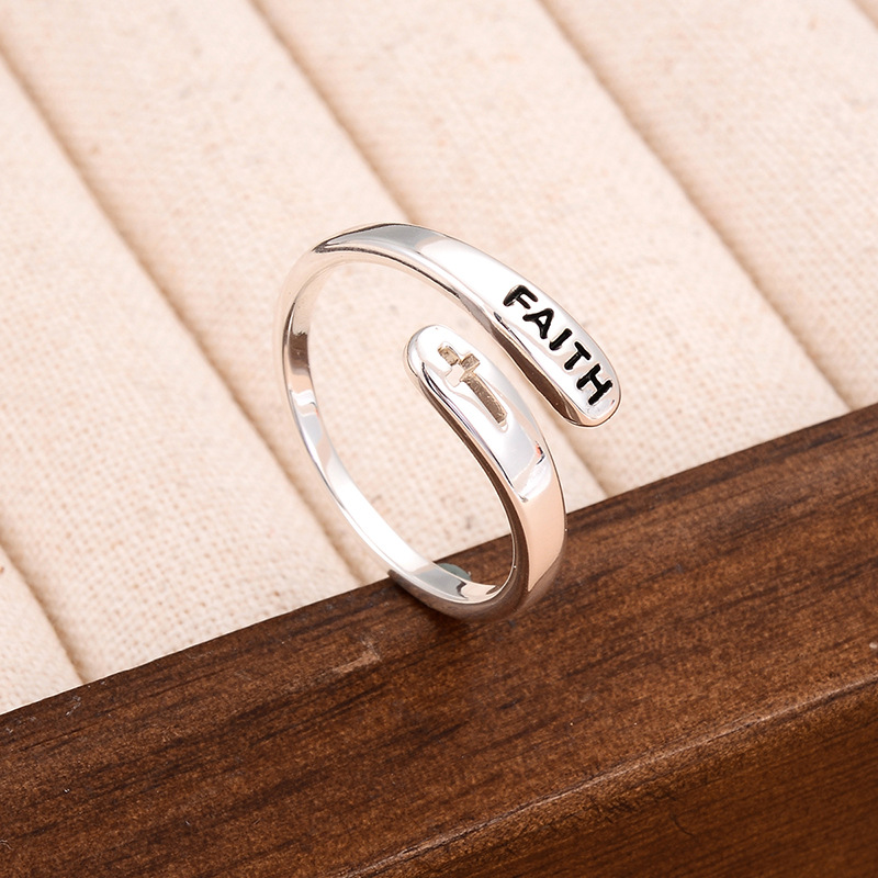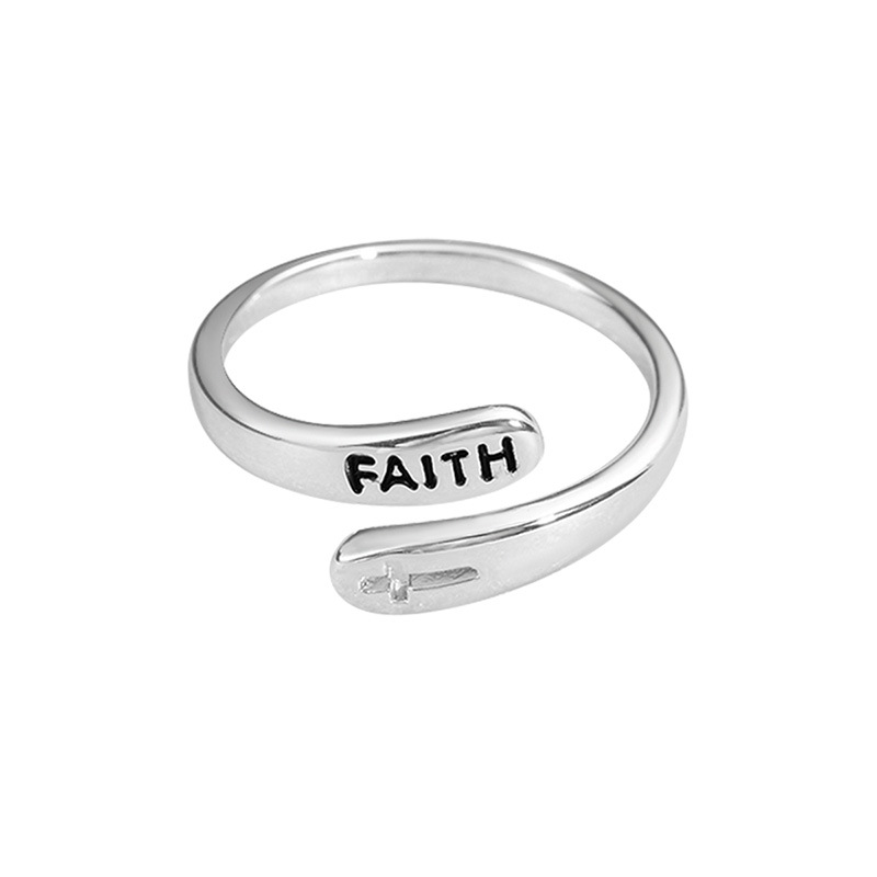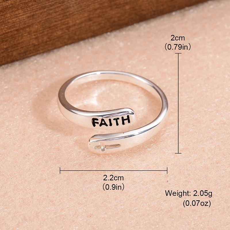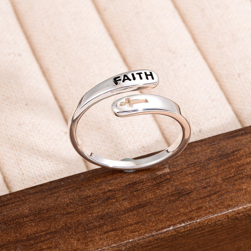 faith字母女时尚复古小众可调节戒指轻奢简约高级感个性批发饰品