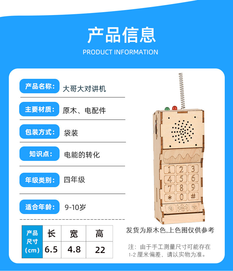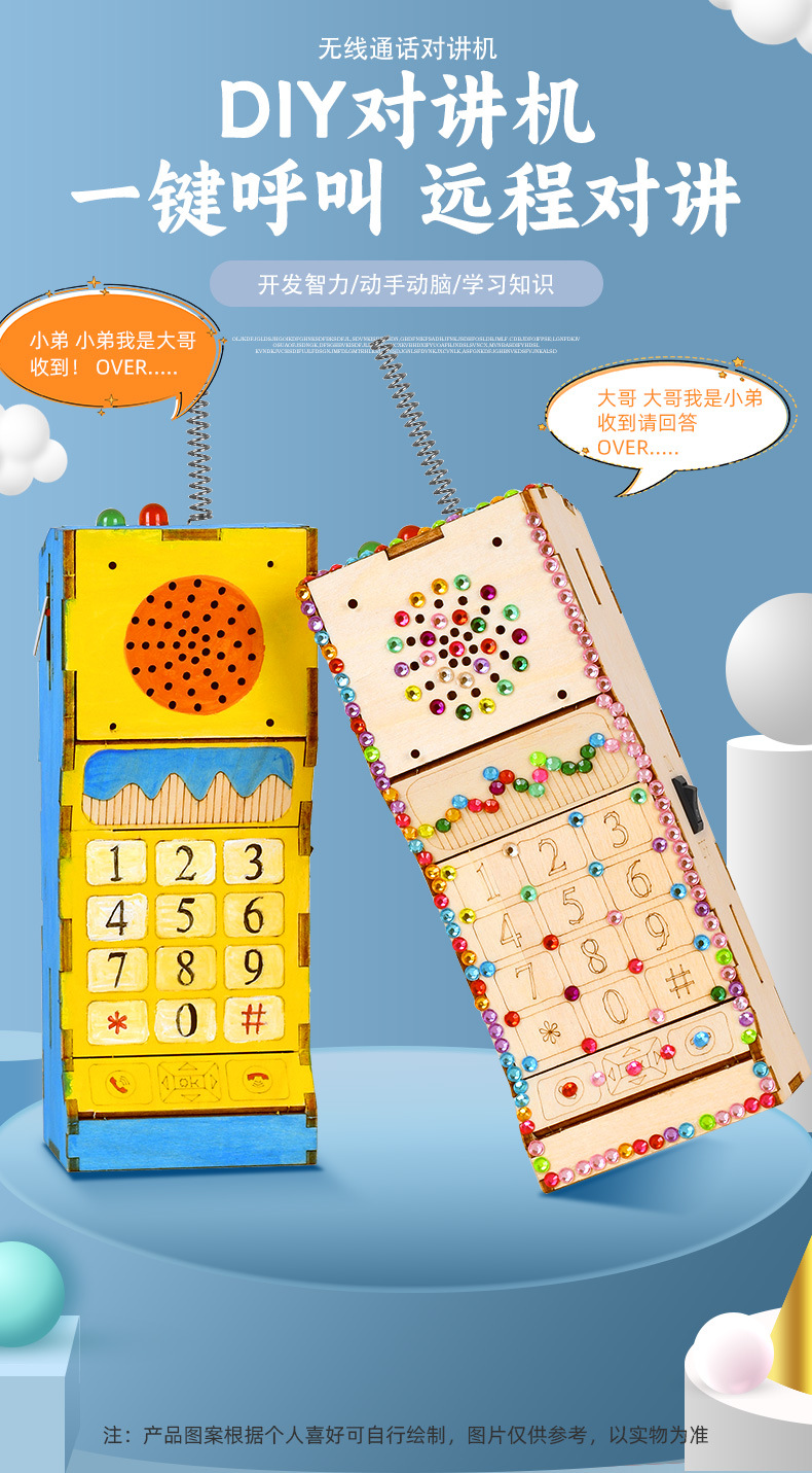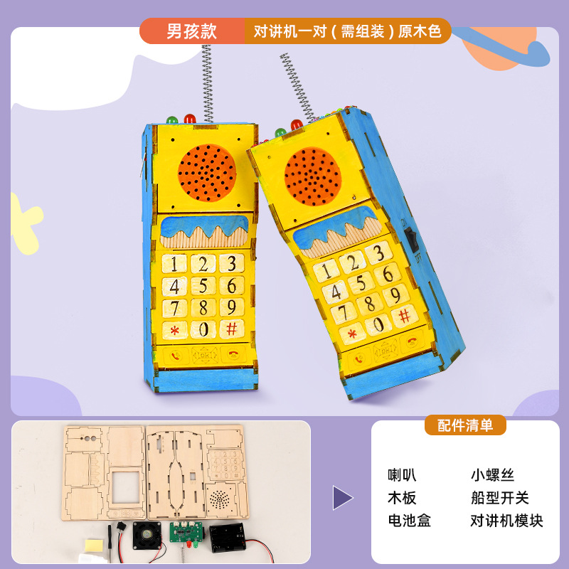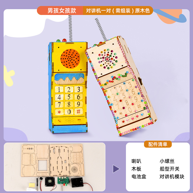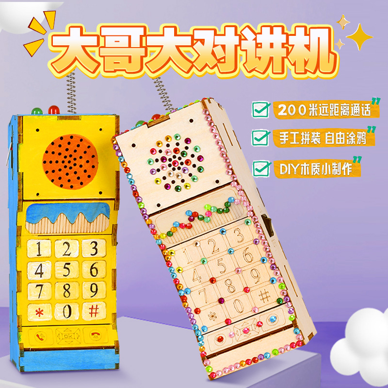 儿童DIY大哥大对讲机科技小制作200米亲子电话手工拼装玩具新年
