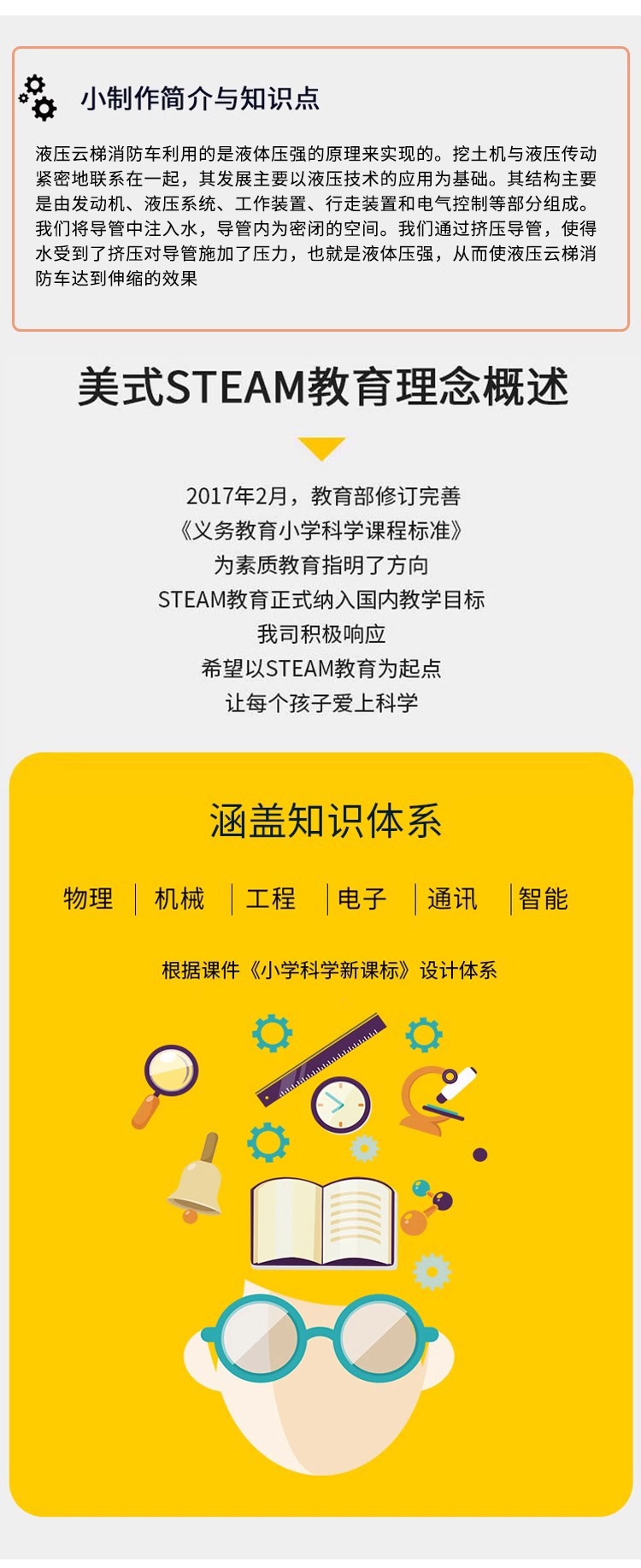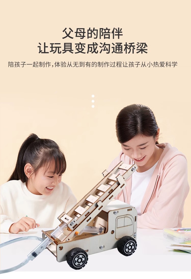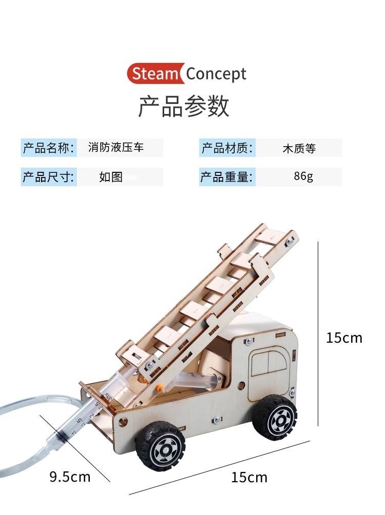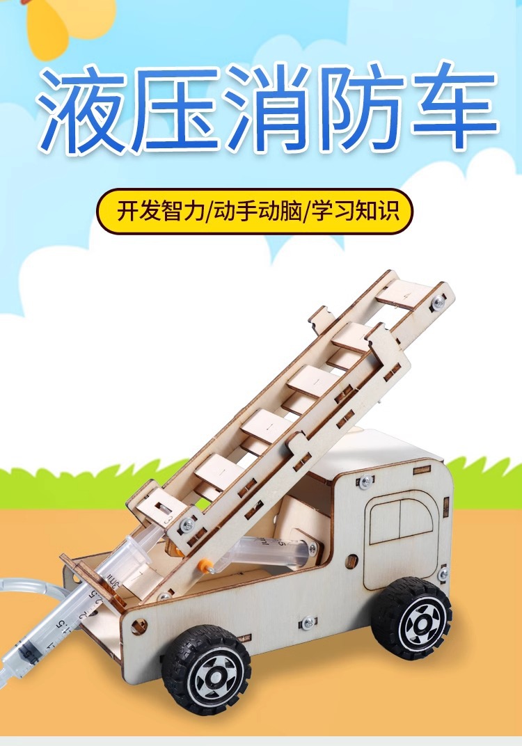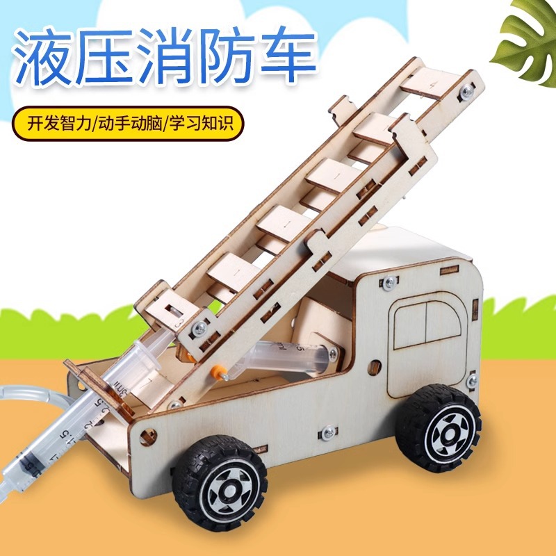 工厂科学小制作小发明云梯液压消防车玩具儿童3-6岁手工拼装diy
