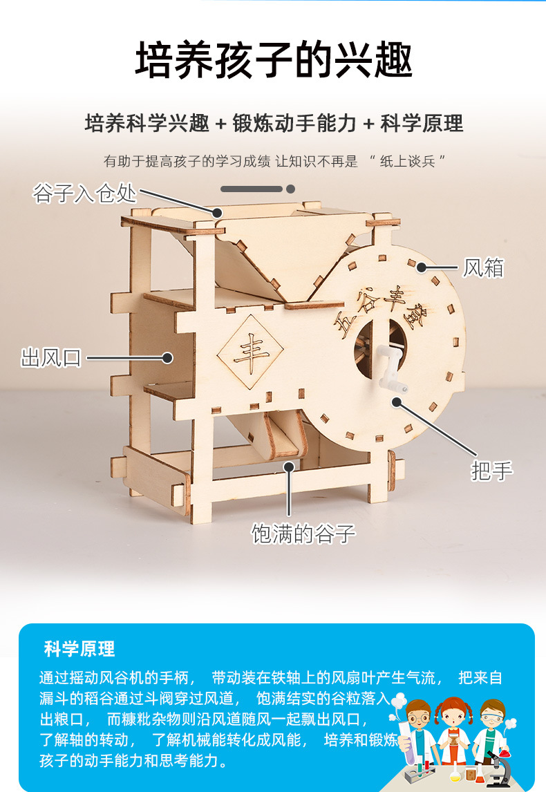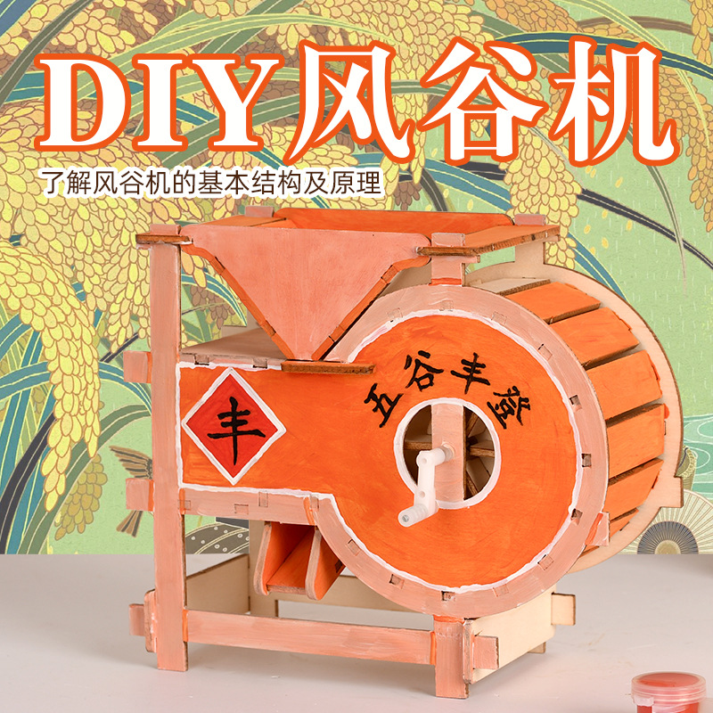 DIY怀旧风谷机科技小制作老辈复古怀旧谷风车纪念品老物件小制作