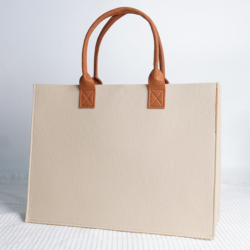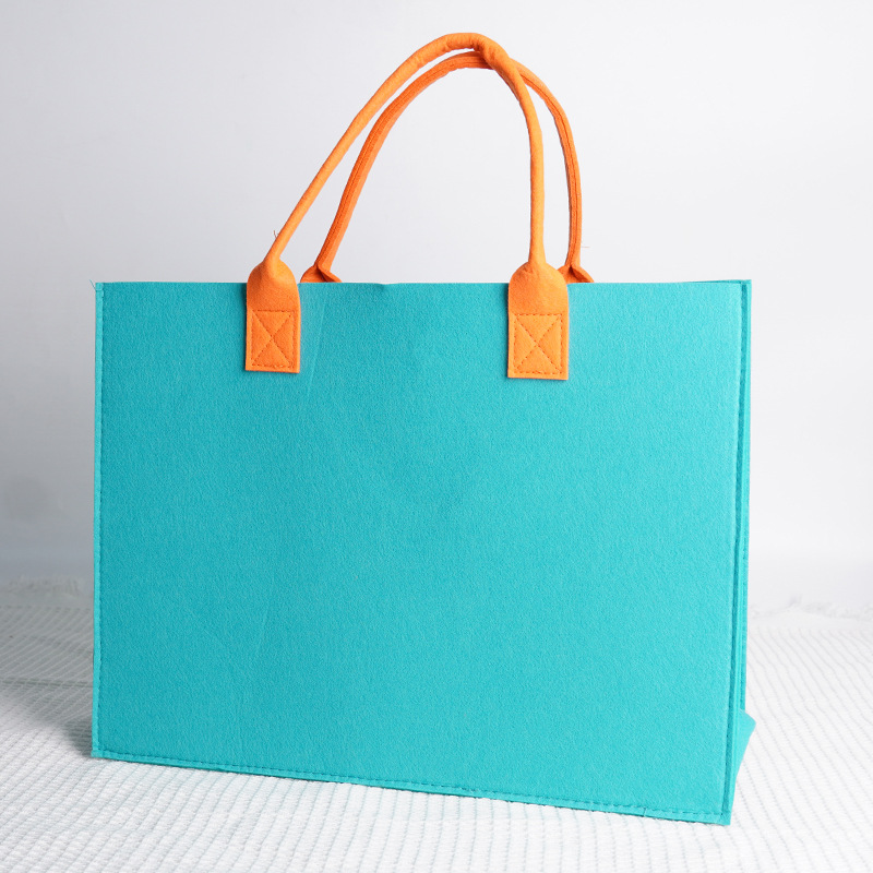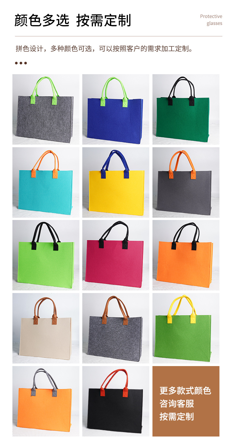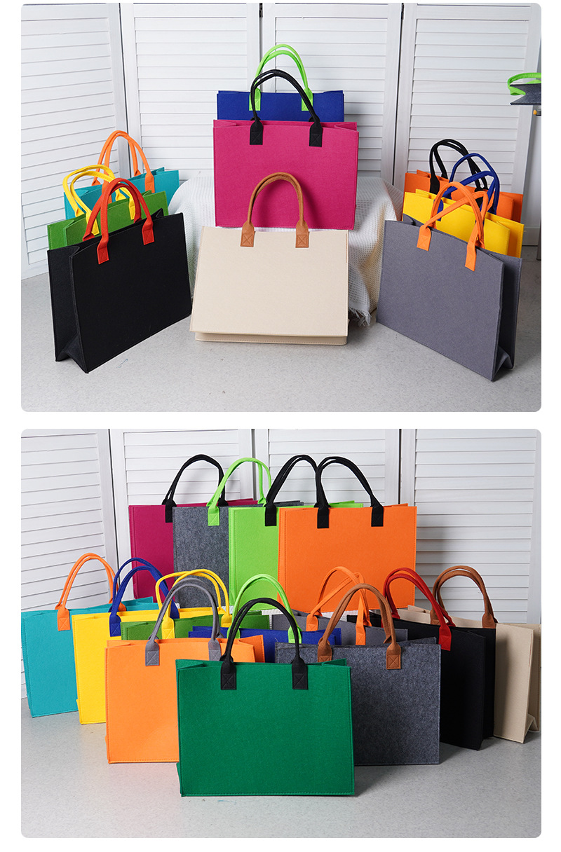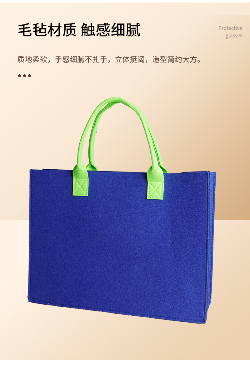 新款拼色时尚休闲毛毡手提包托特包伴手礼大容量环保购物手提袋