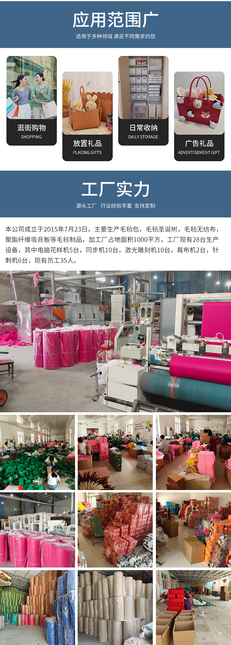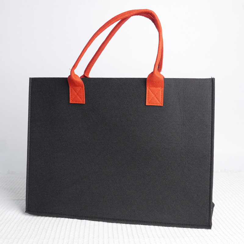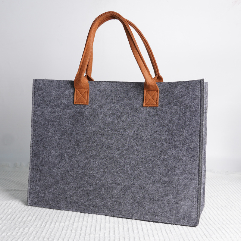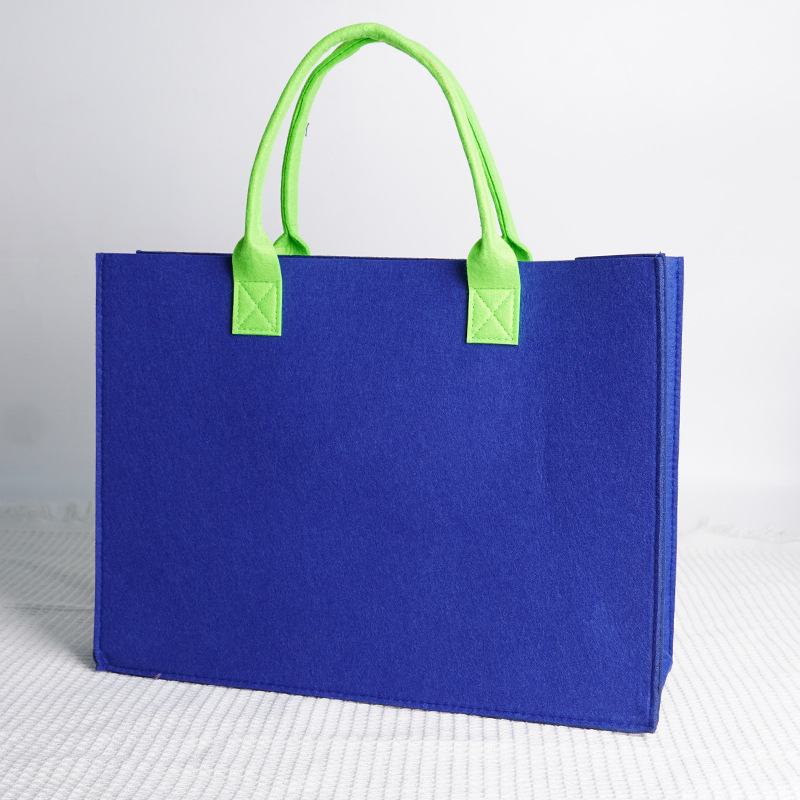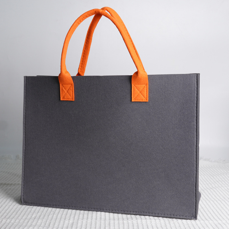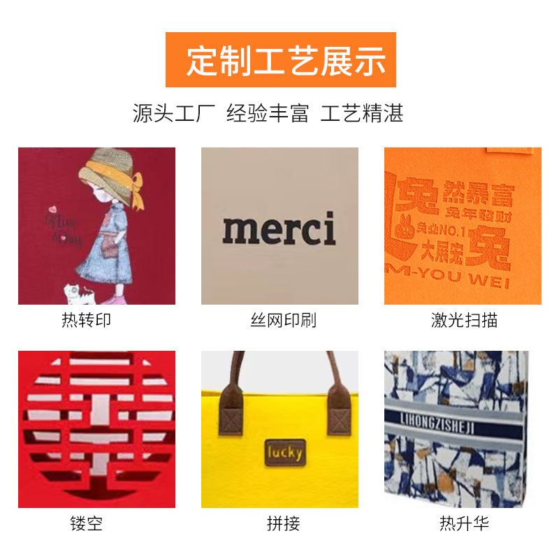 新款拼色时尚休闲毛毡手提包托特包伴手礼大容量环保购物手提袋