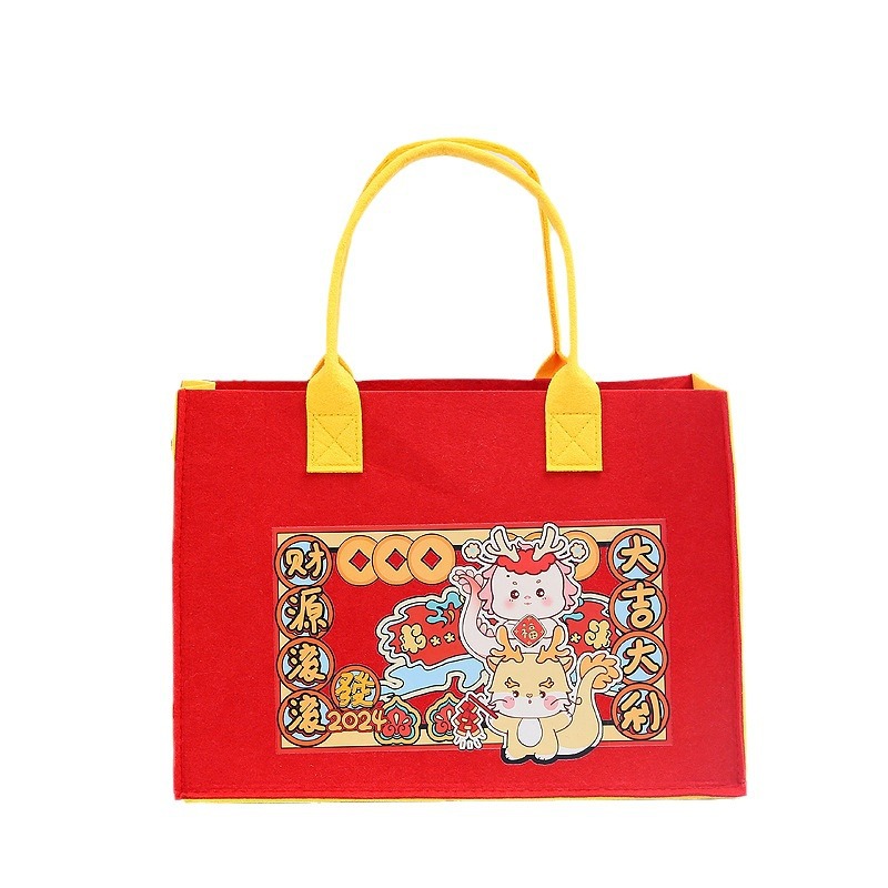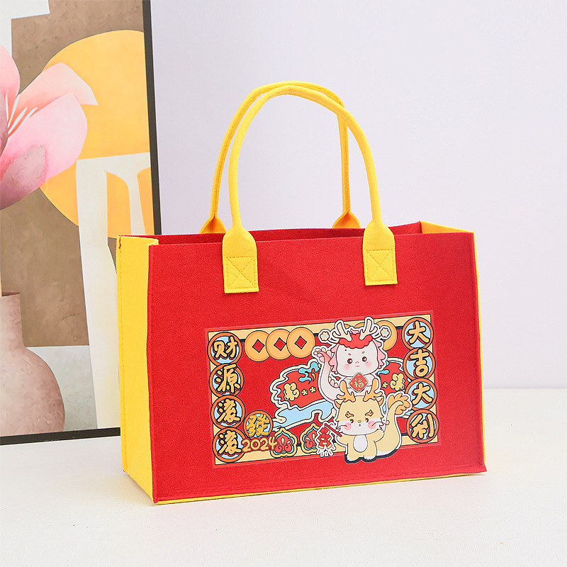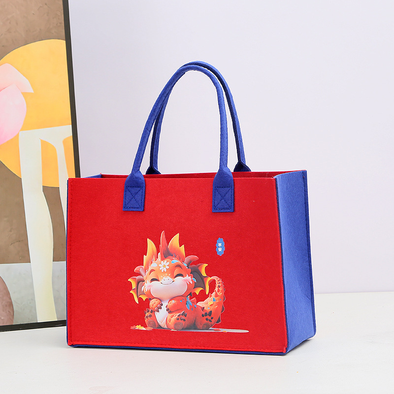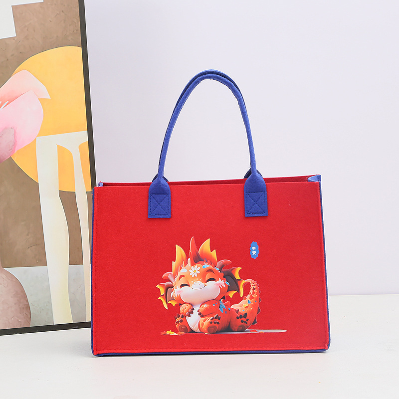 毛毡手提袋新款龙年卡通毛毡包厂家现货加厚大容量毛毡手提袋