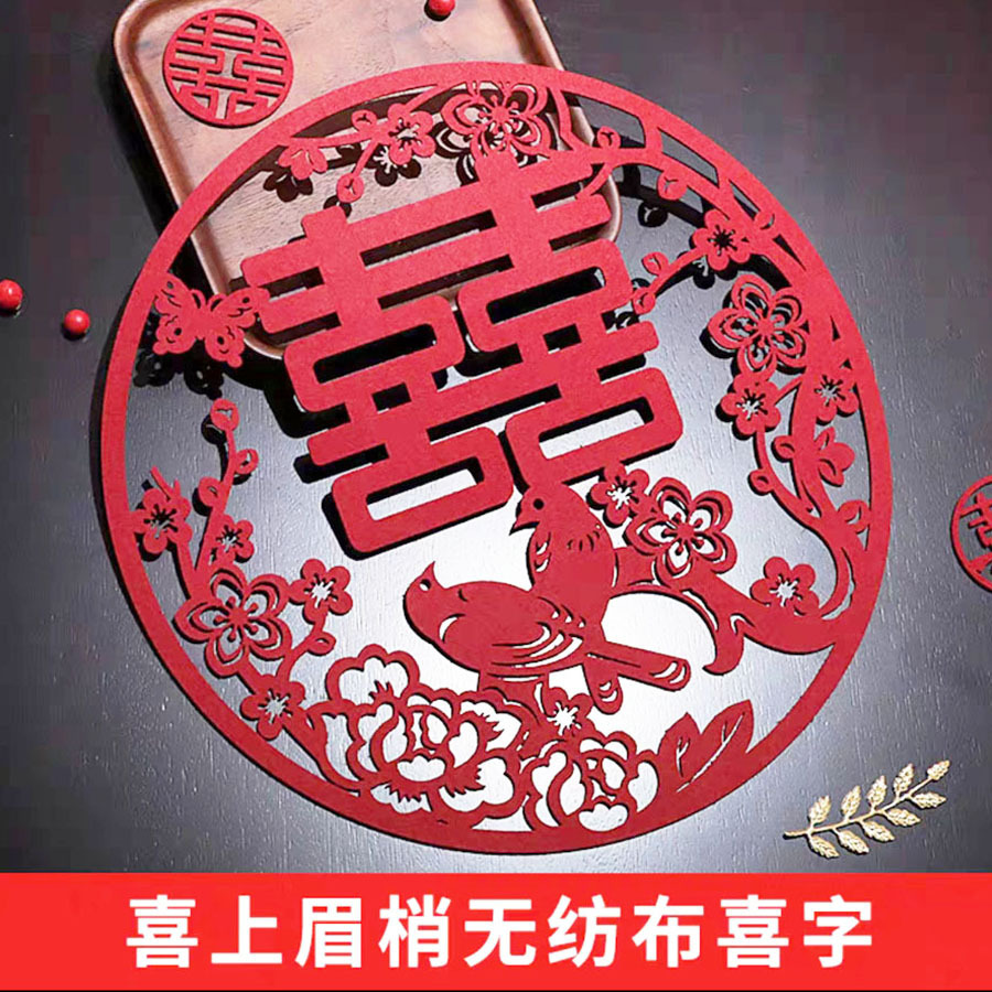 结婚大喜字贴专用楼梯窗户窗花大门贴男女方布置婚房装饰玻璃窗贴