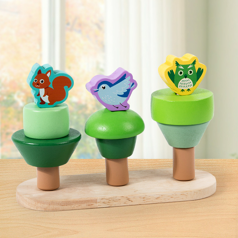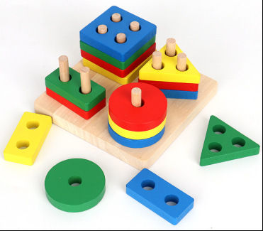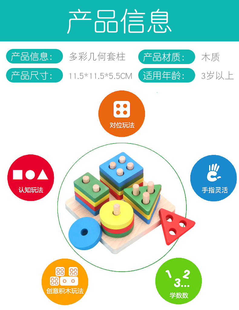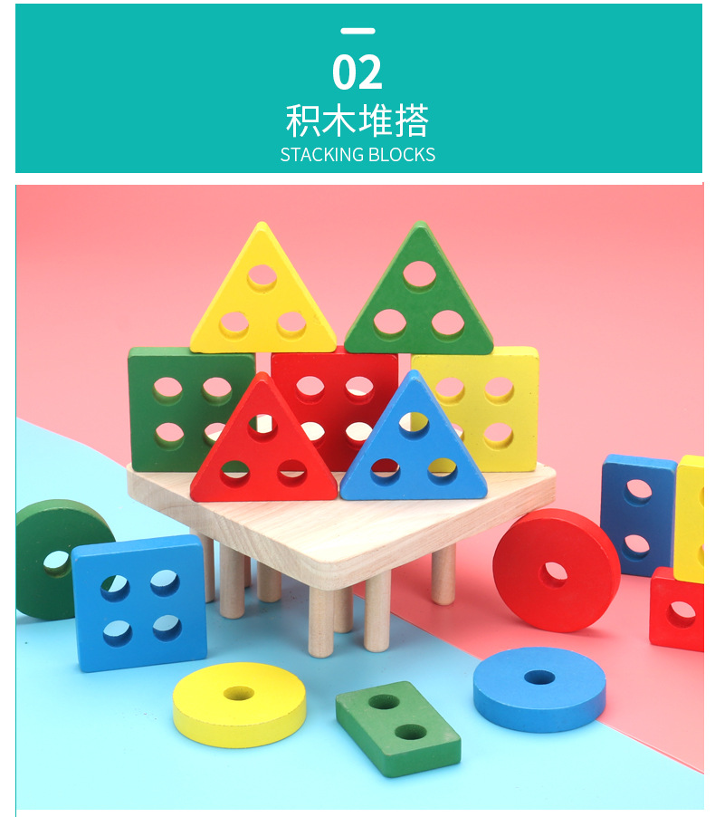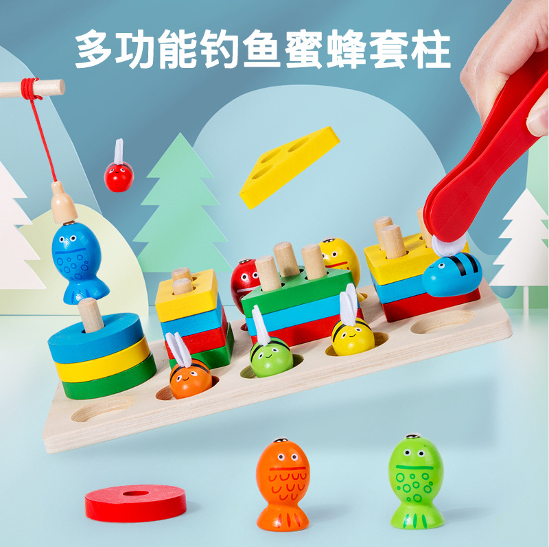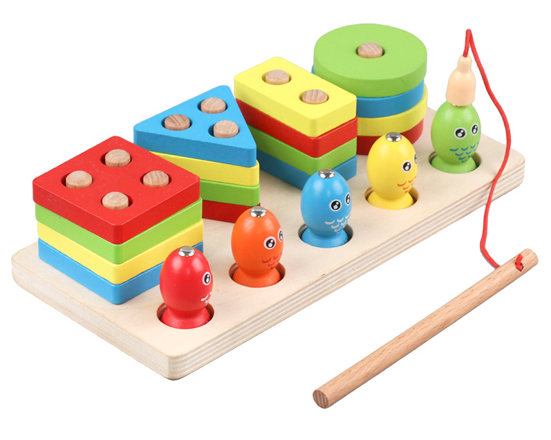 儿童蒙氏教具木质几何形状钓鱼套柱认知积木配对亲子互动益智玩具