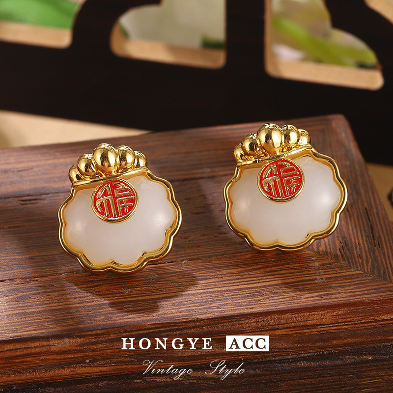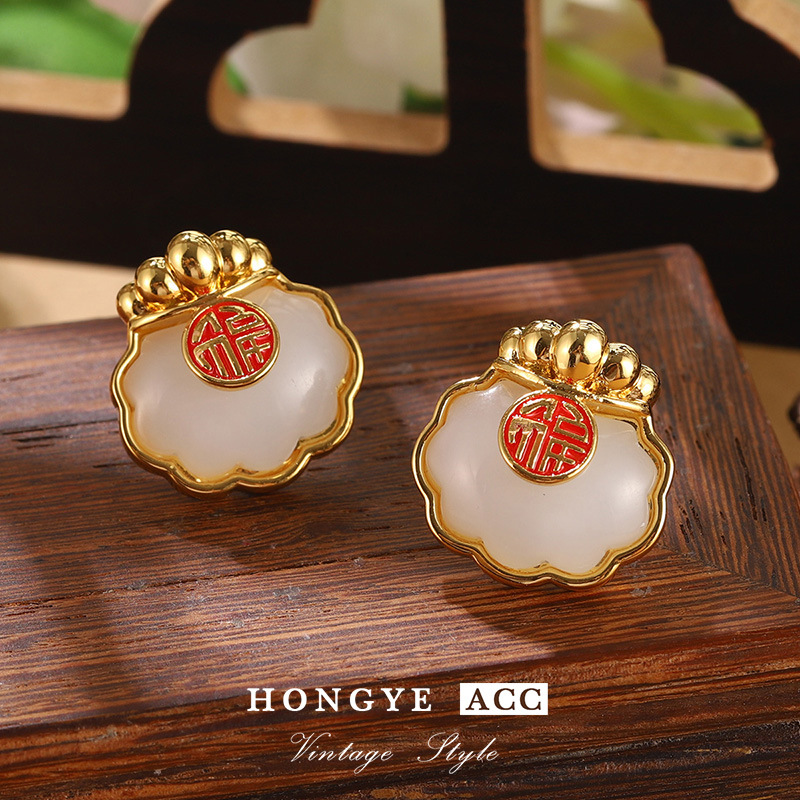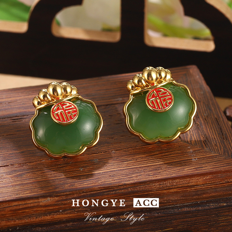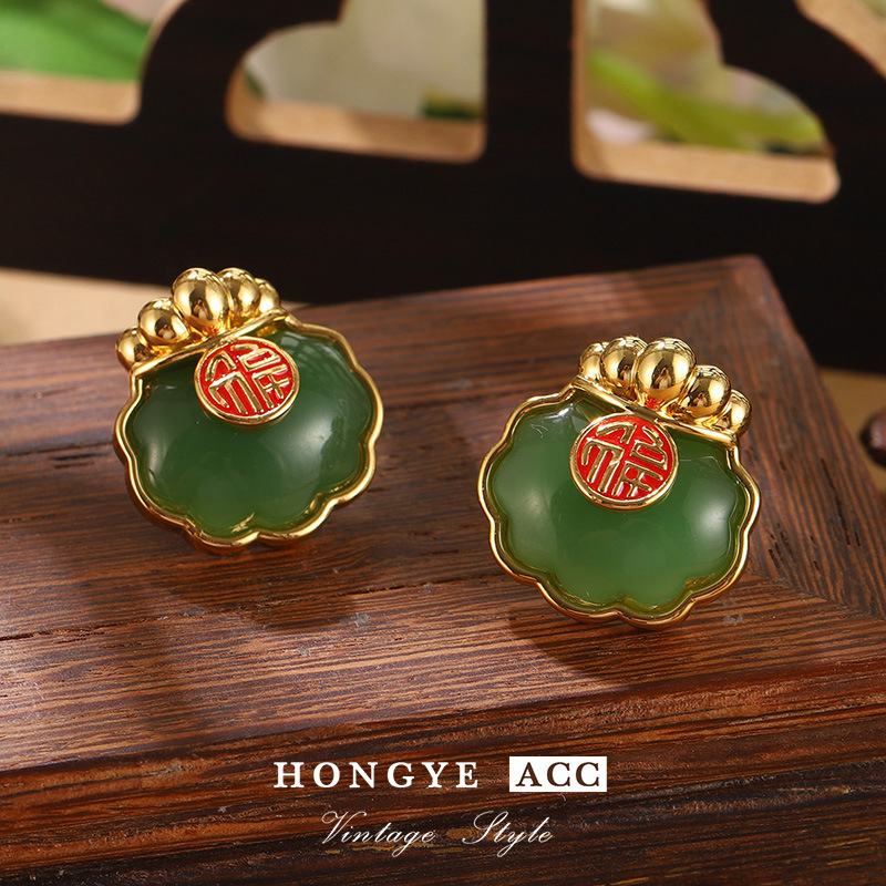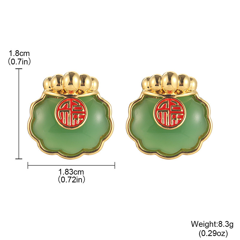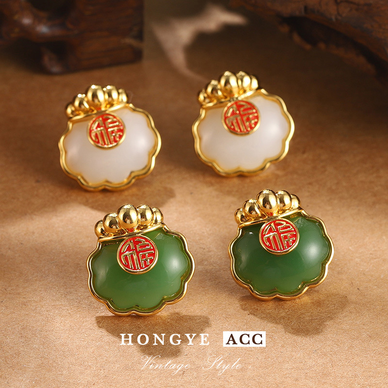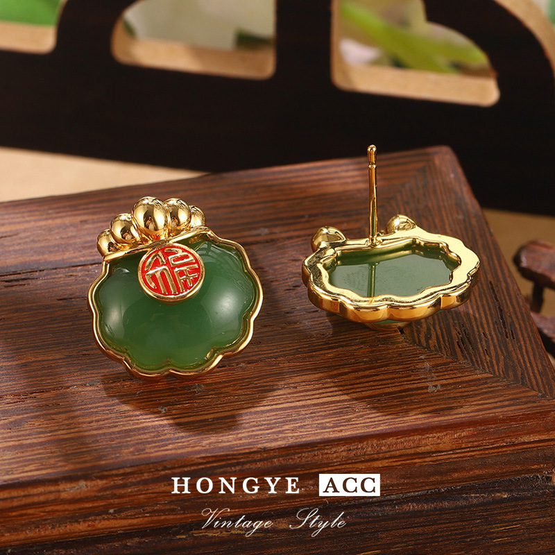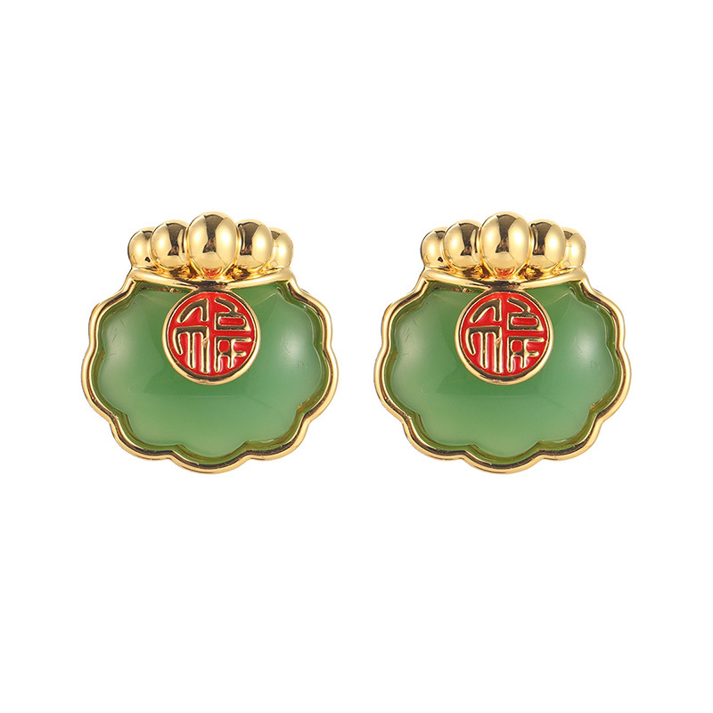 国潮民族风仿和田玉平安扣耳钉新中式福气满满耳环高级气质耳饰女