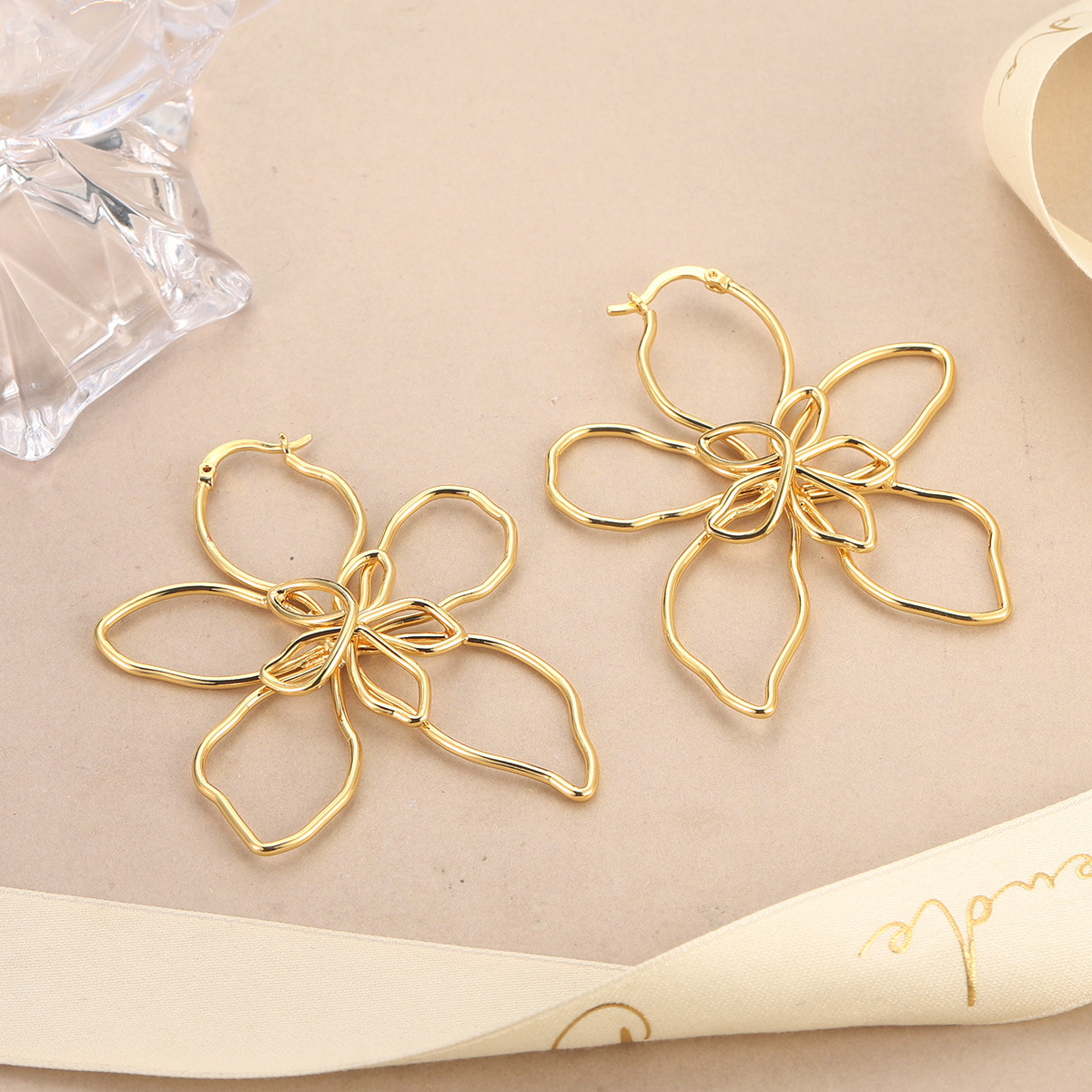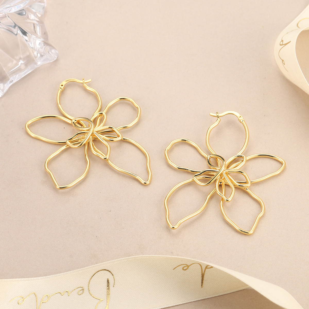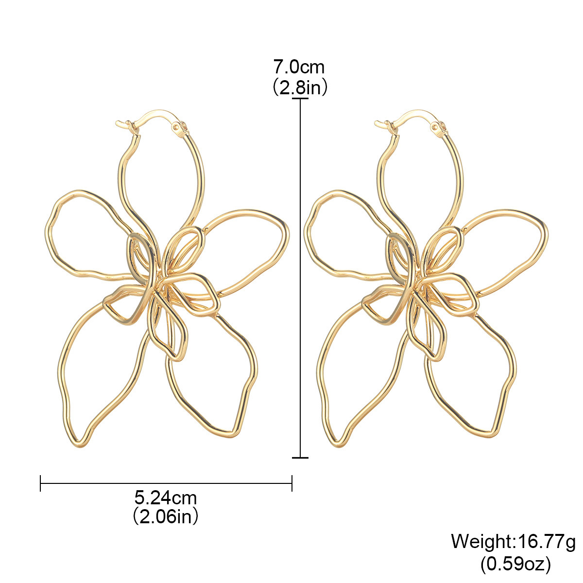极简风镂空素金性感耳饰辣妹大花朵ins亚马逊欧美夸张跨境耳钉女