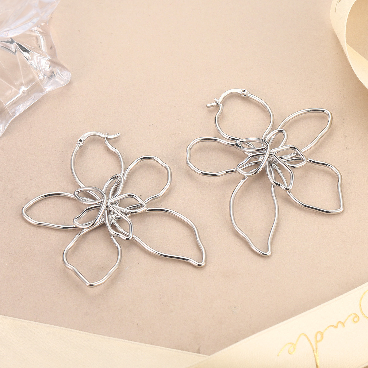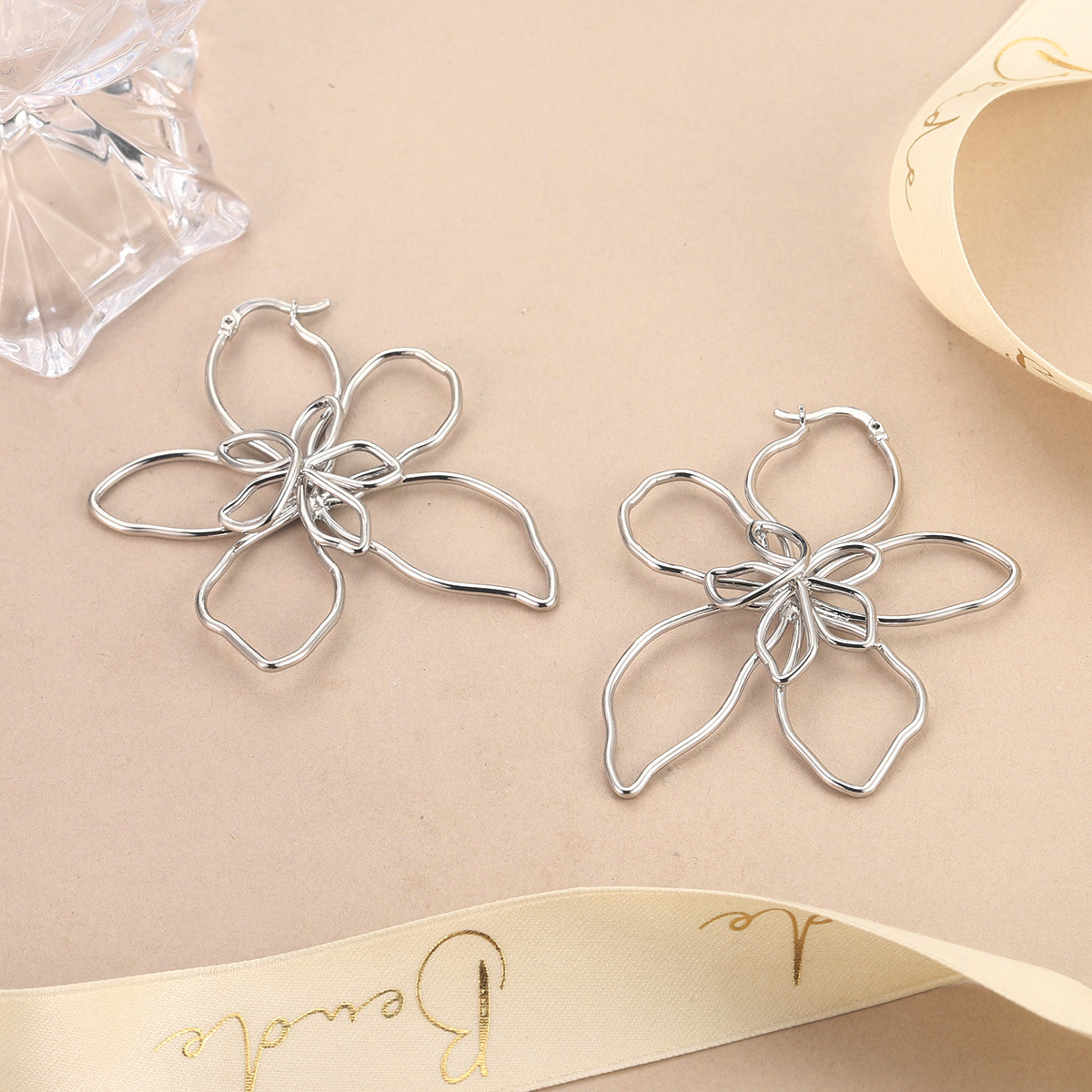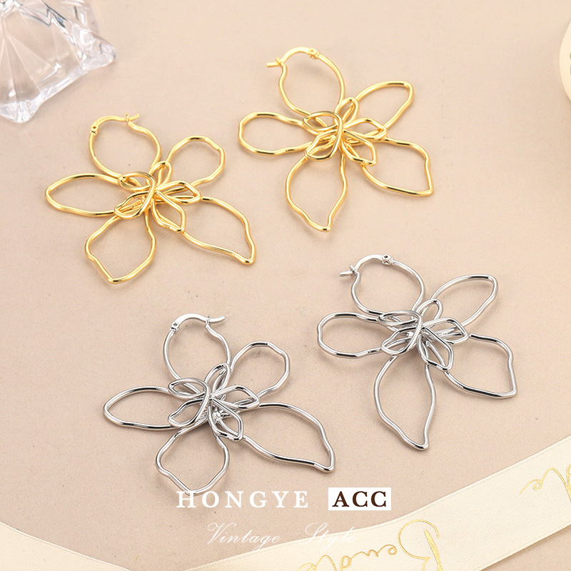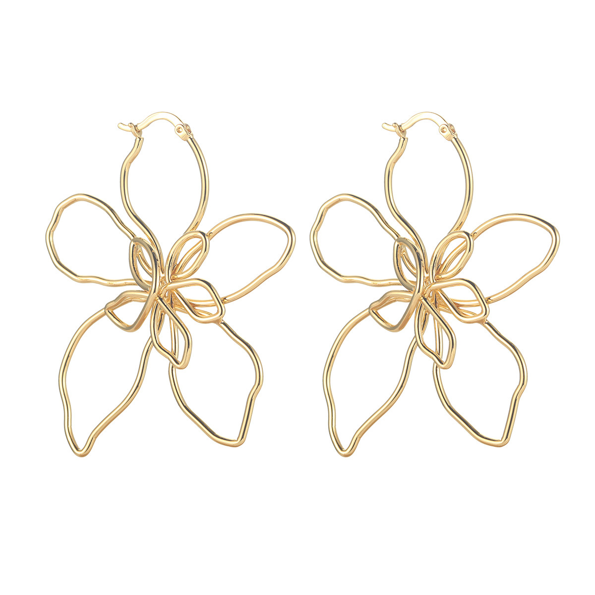 极简风镂空素金性感耳饰辣妹大花朵ins亚马逊欧美夸张跨境耳钉女