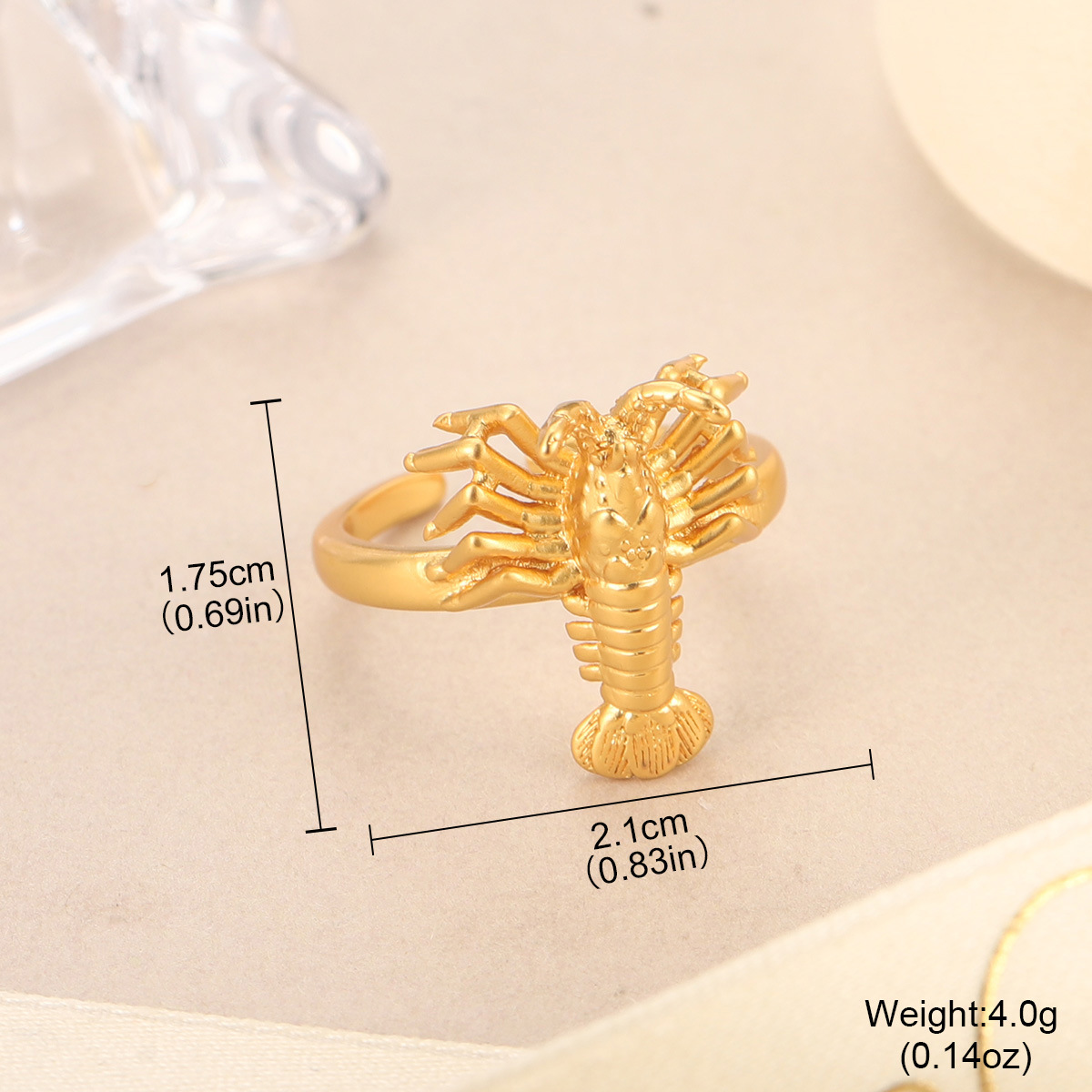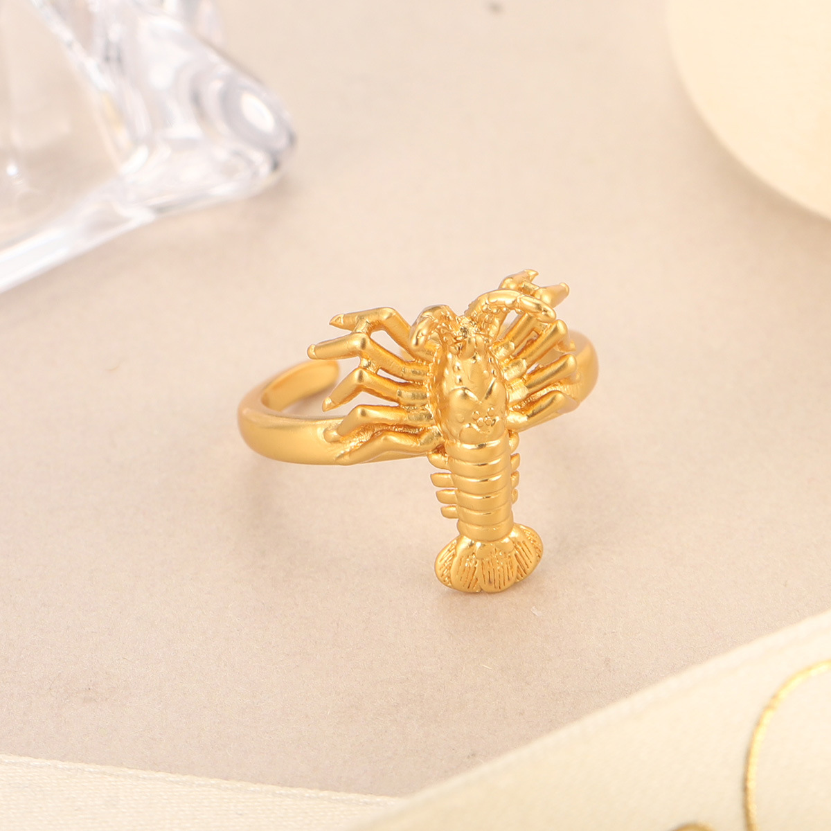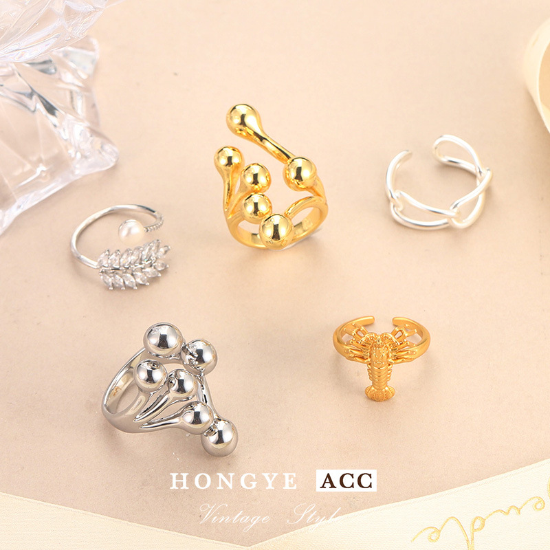 欧美时尚个性饰品圆球铸造戒指金色女士配饰树叶龙虾新奇开口戒指