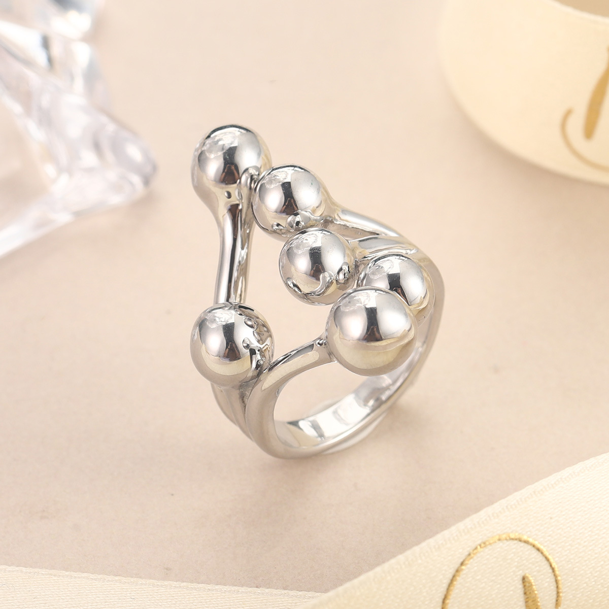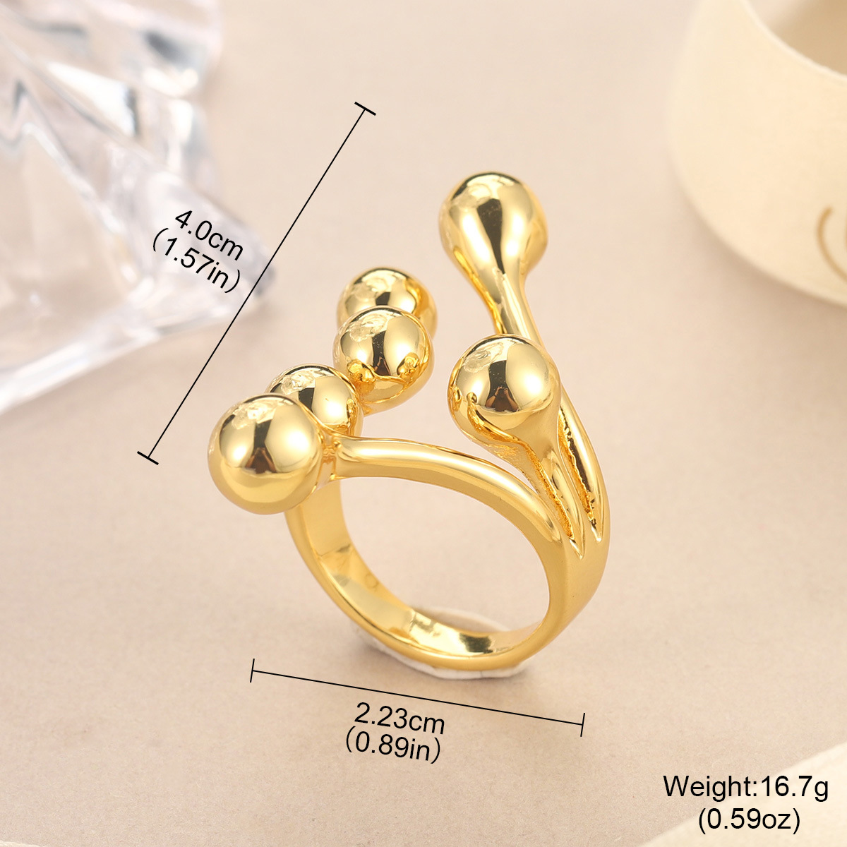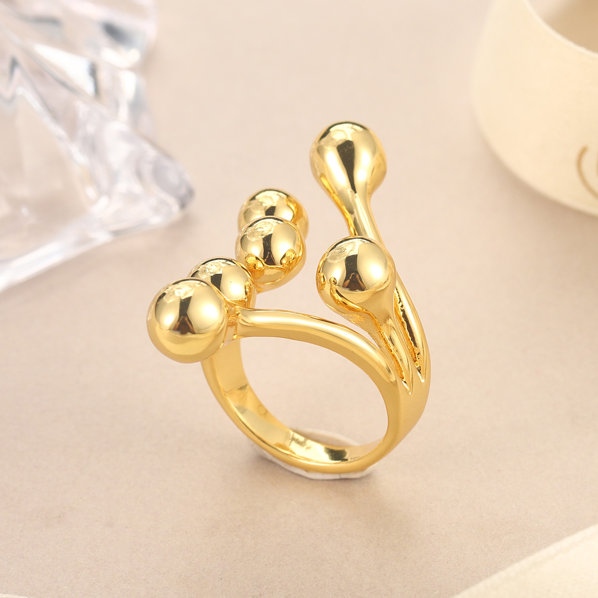 欧美时尚个性饰品圆球铸造戒指金色女士配饰树叶龙虾新奇开口戒指