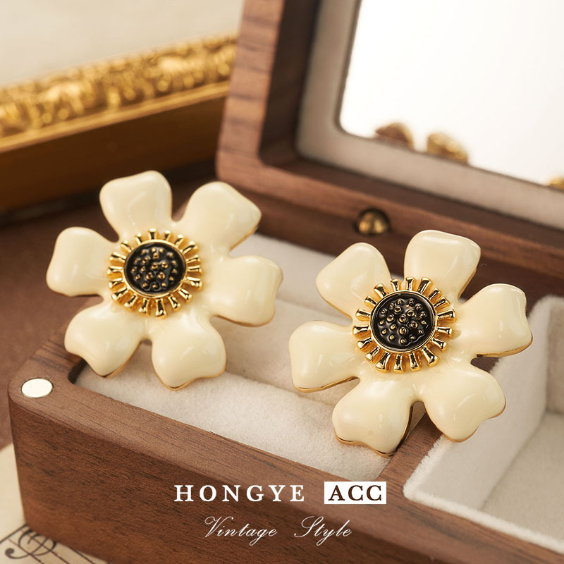 太阳花耳环女中古vintage饰品时尚百搭高级感耳饰925复古百搭耳钉