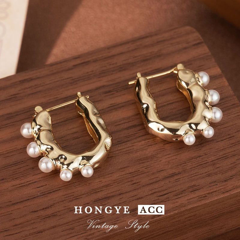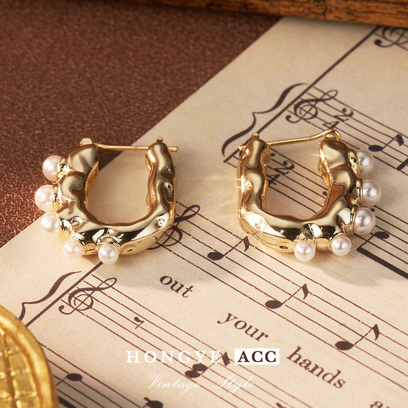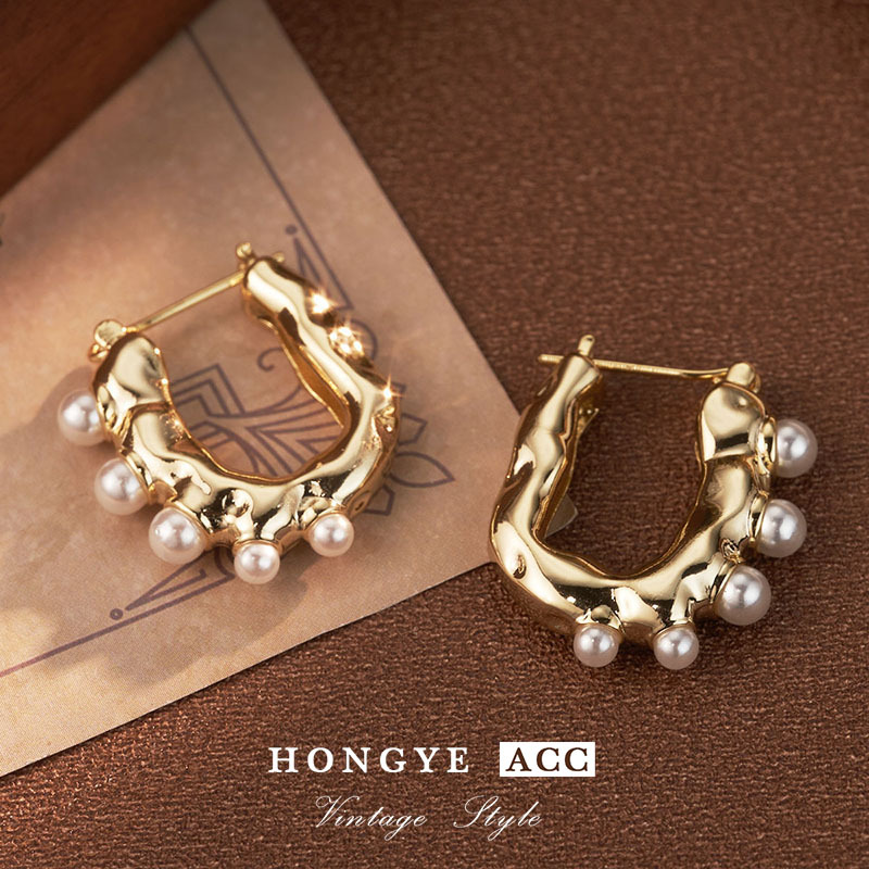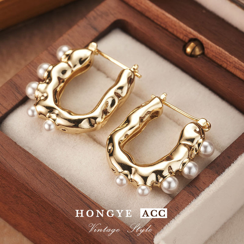 金属气质饰品时尚百搭高级感镀14K金珍珠耳环小众设计耳饰批发