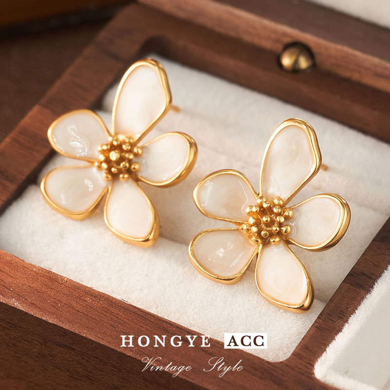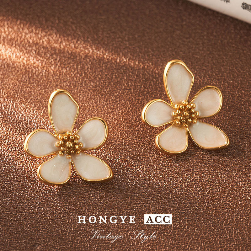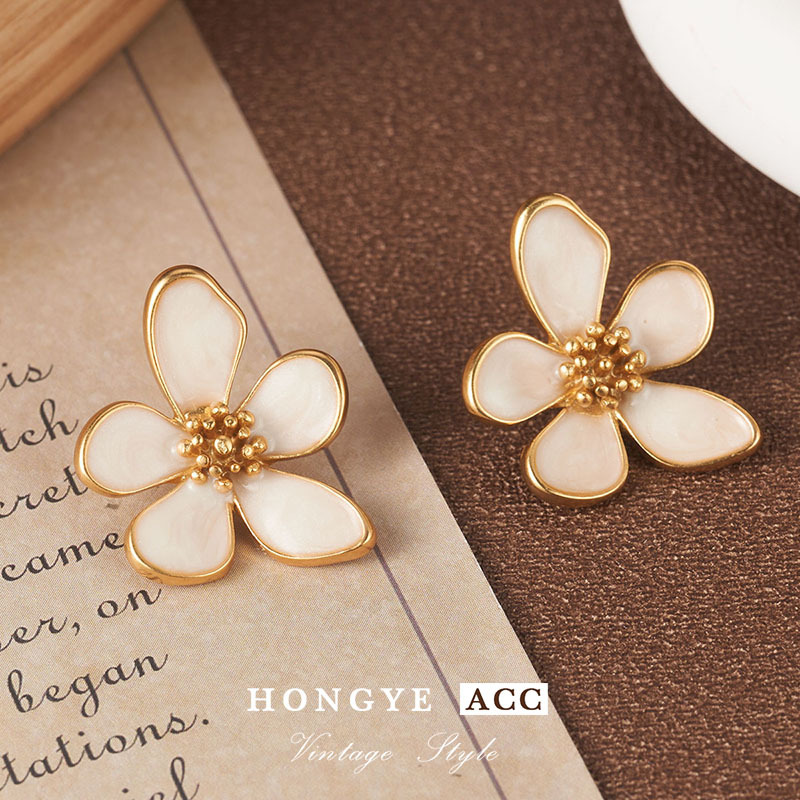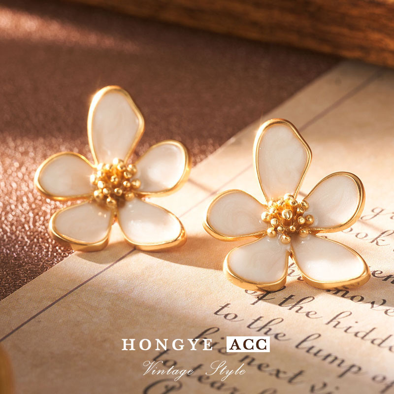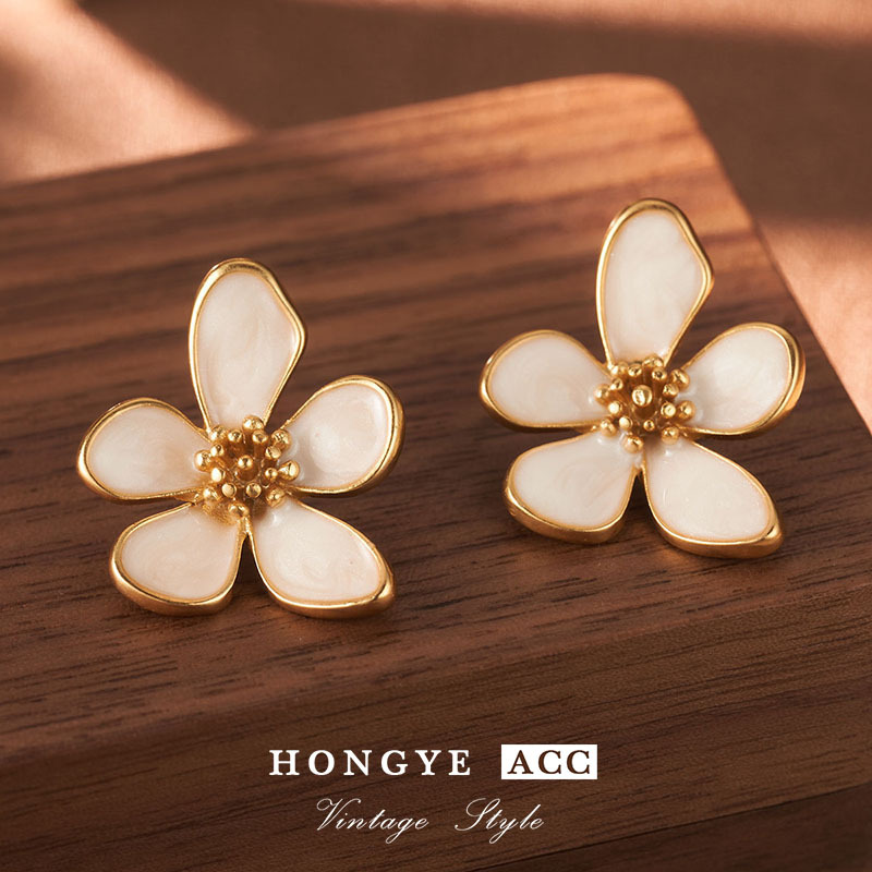 新款轻奢耳钉气质925银针高级感饰品精致复古风铜镀18K金花朵耳环