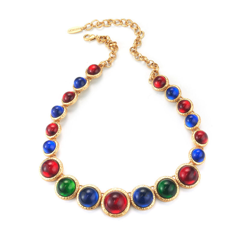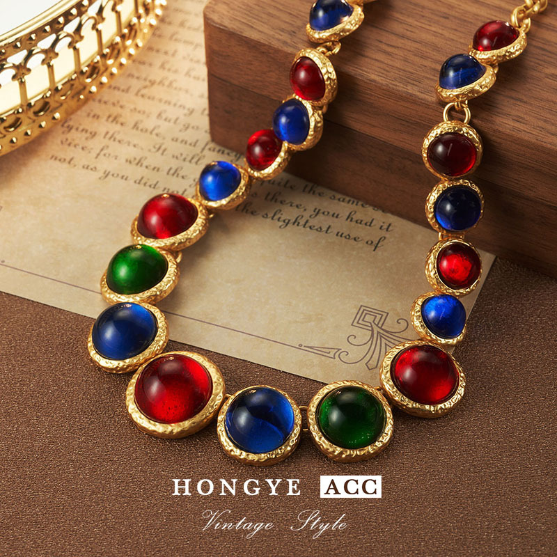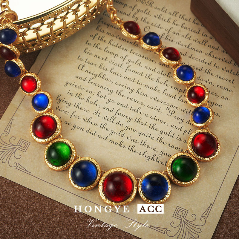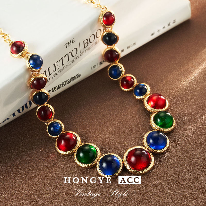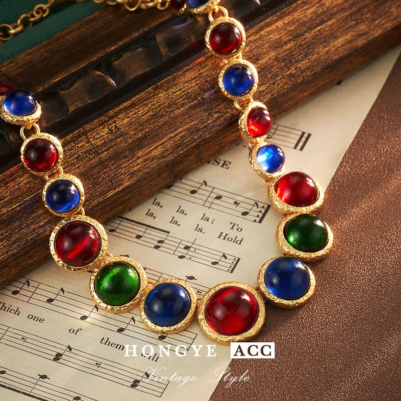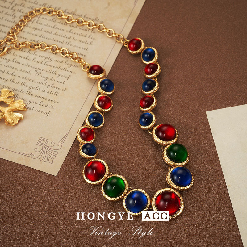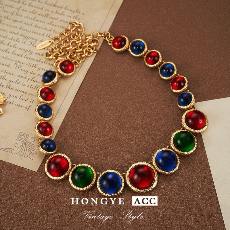 中古风玻璃项链饰品女高级感小众锁骨链多巴胺不掉色新品百搭配饰