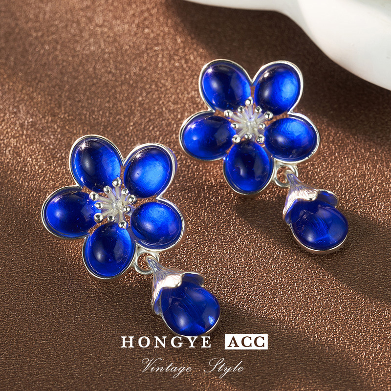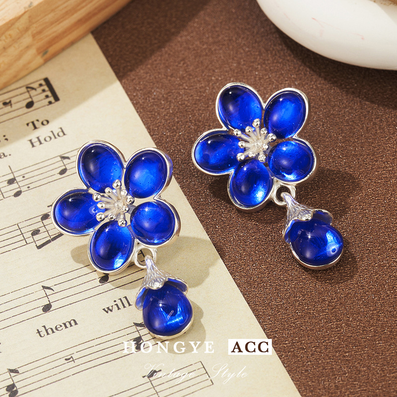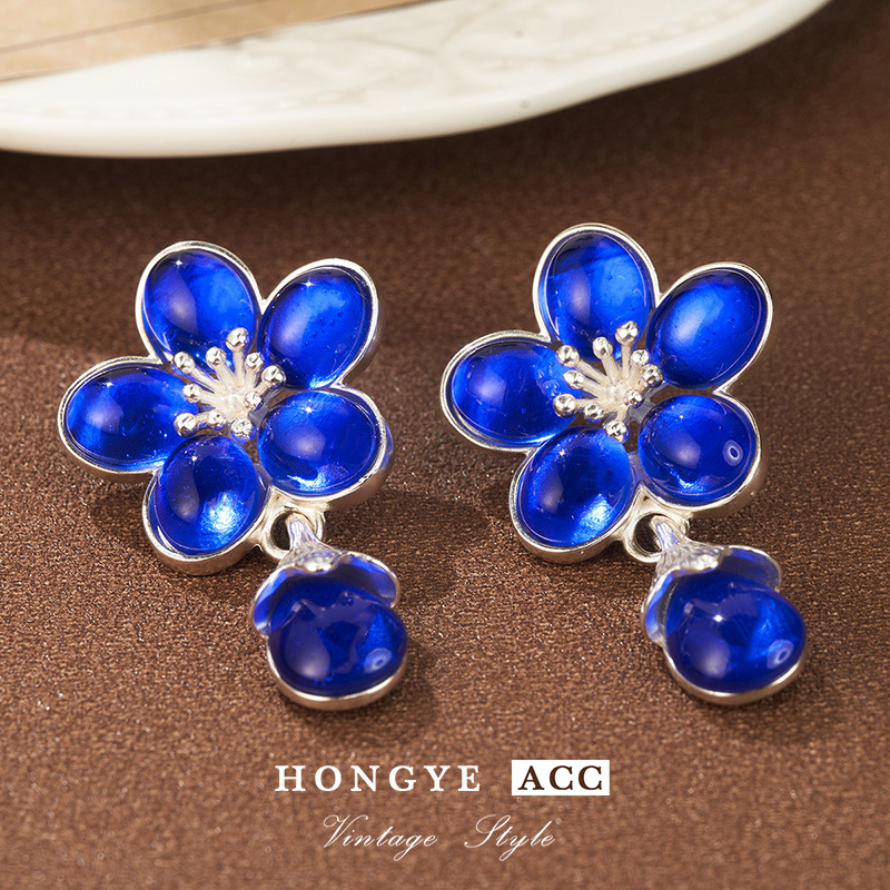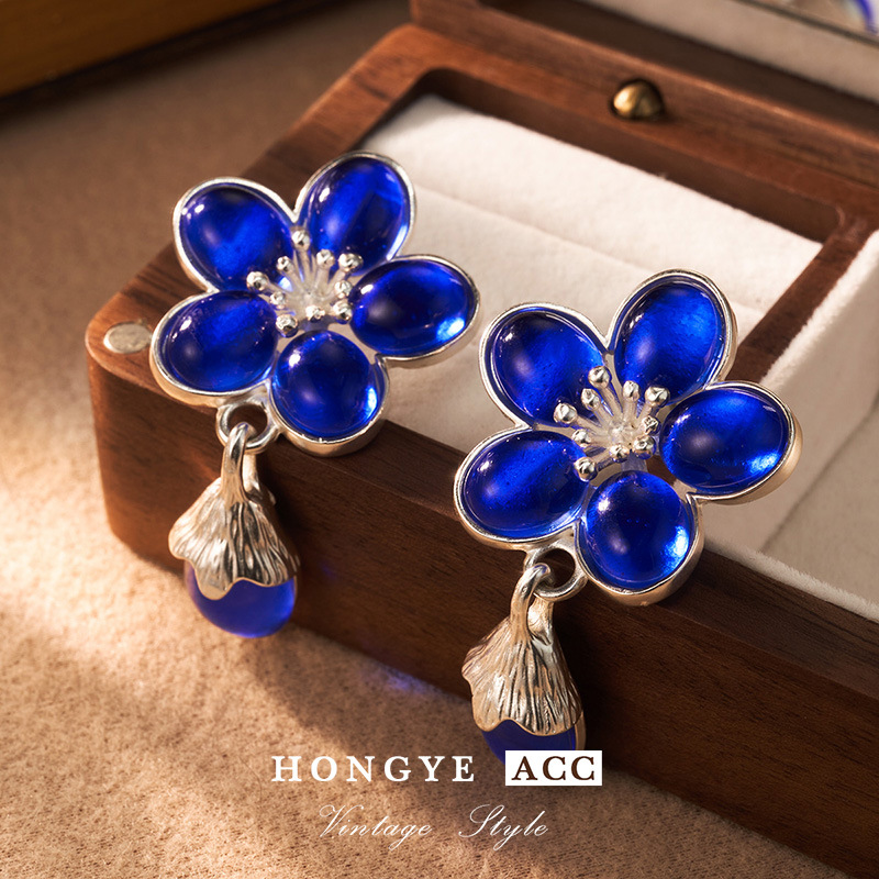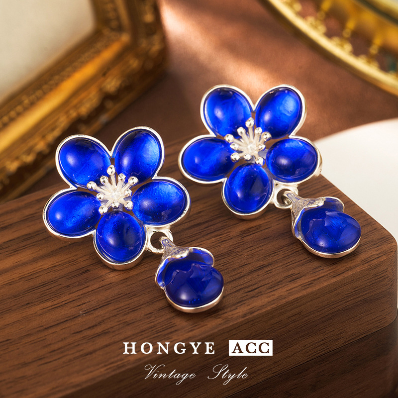 花朵耳环女流苏高级感耳钉中古Vintage饰品轻奢新款复古小众耳饰