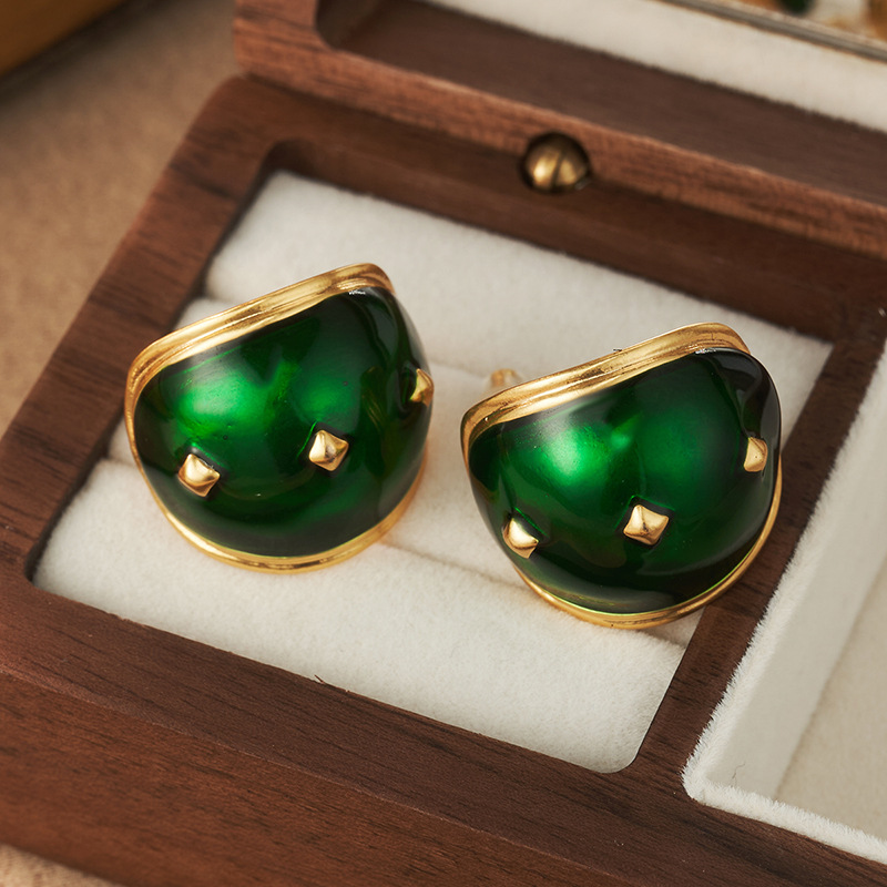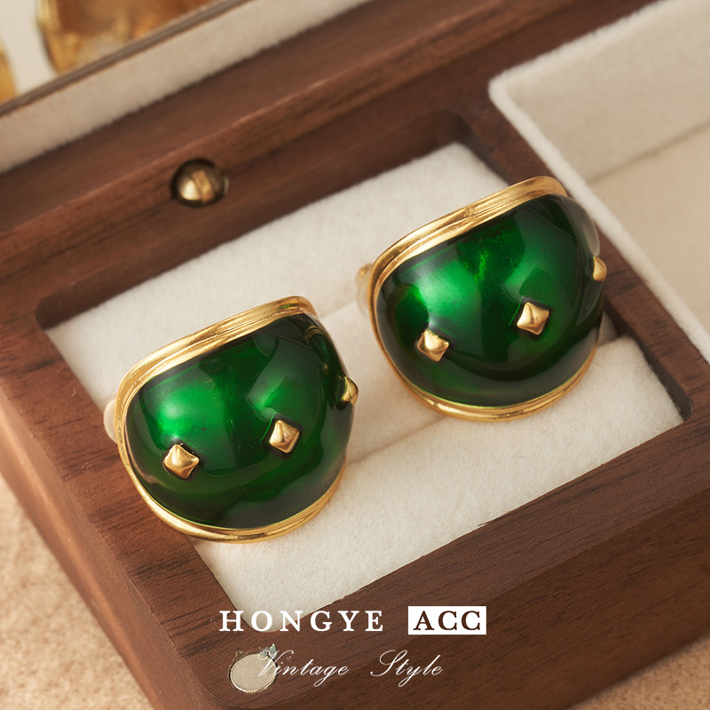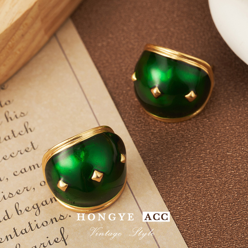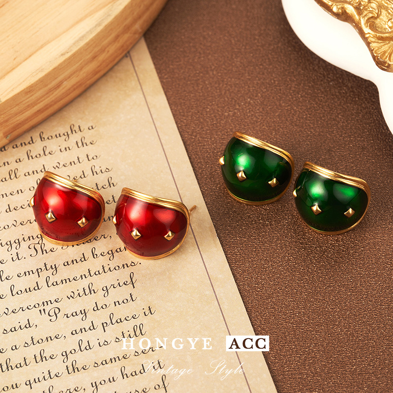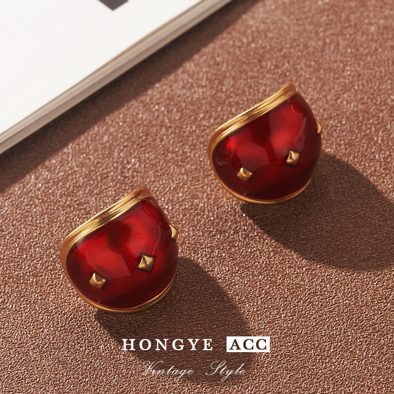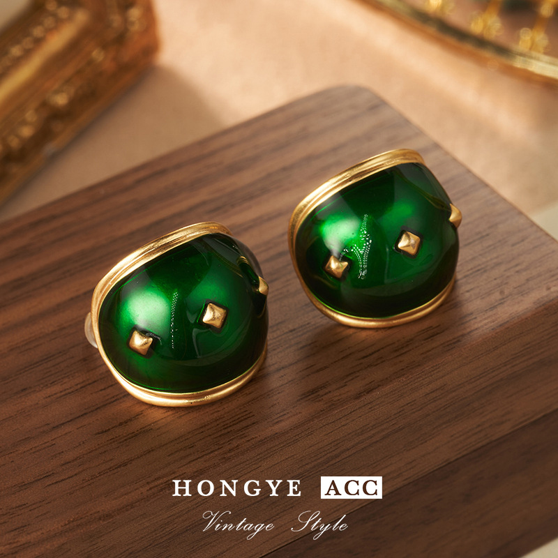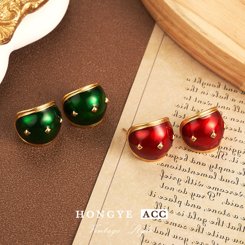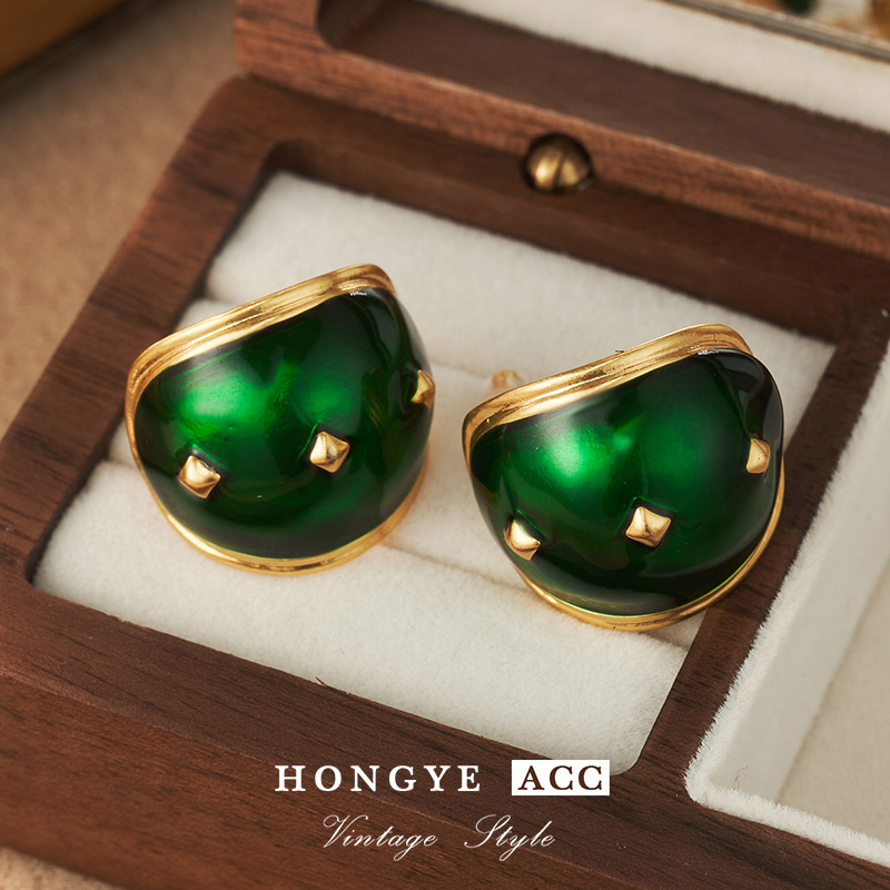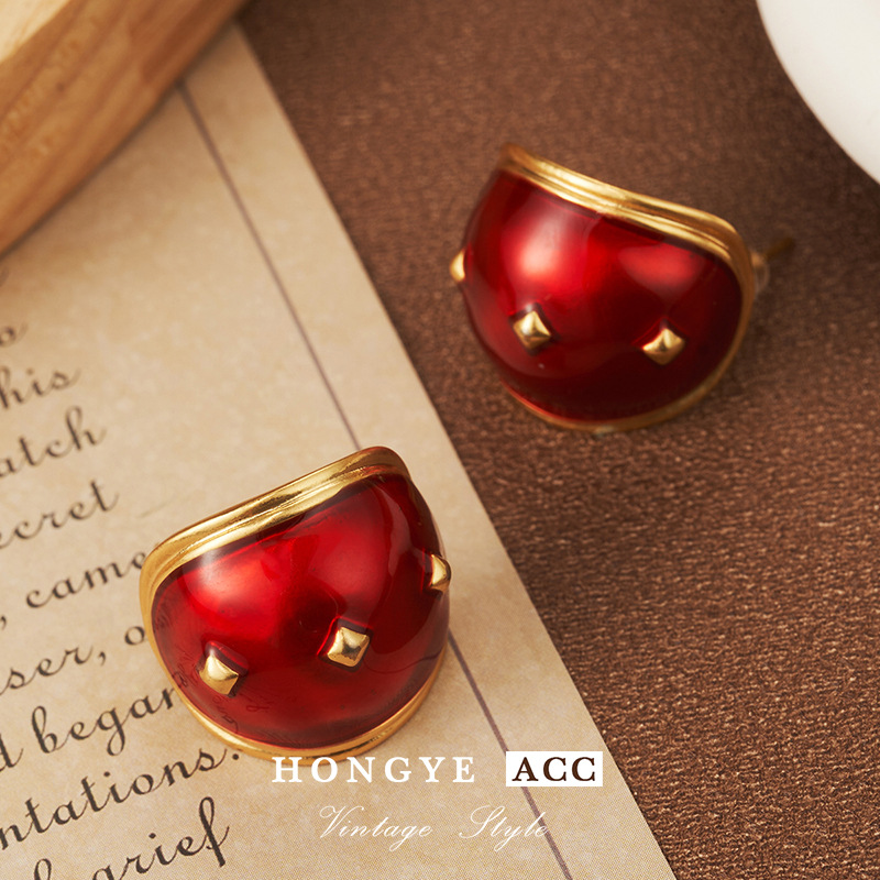 半圆耳钉中古Vintage耳环女高级感轻奢复古气质925饰品新耳饰批发