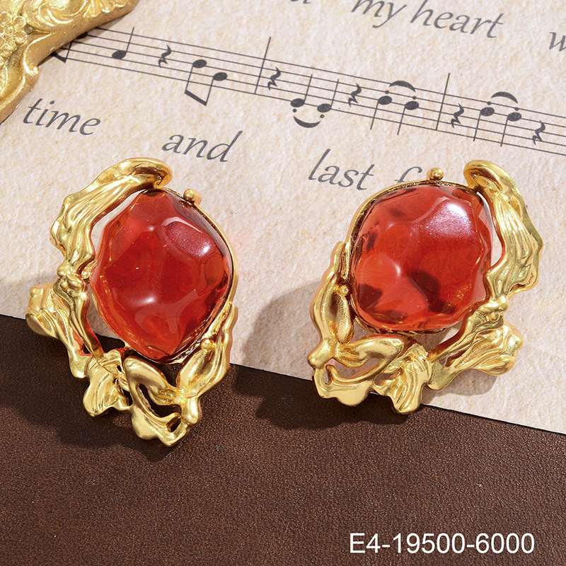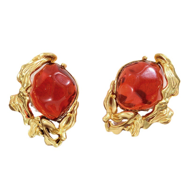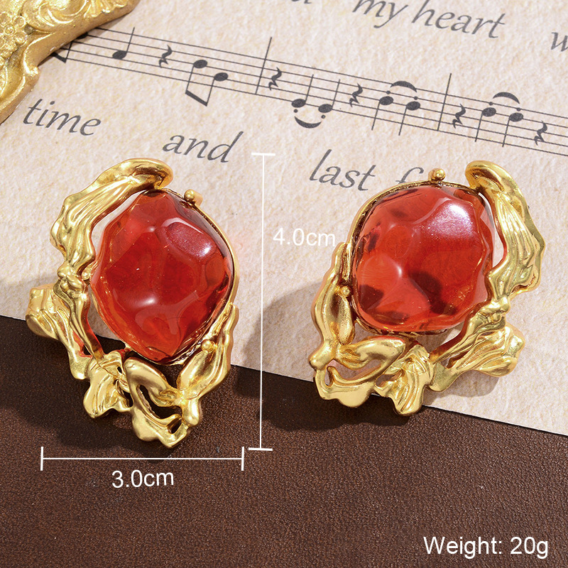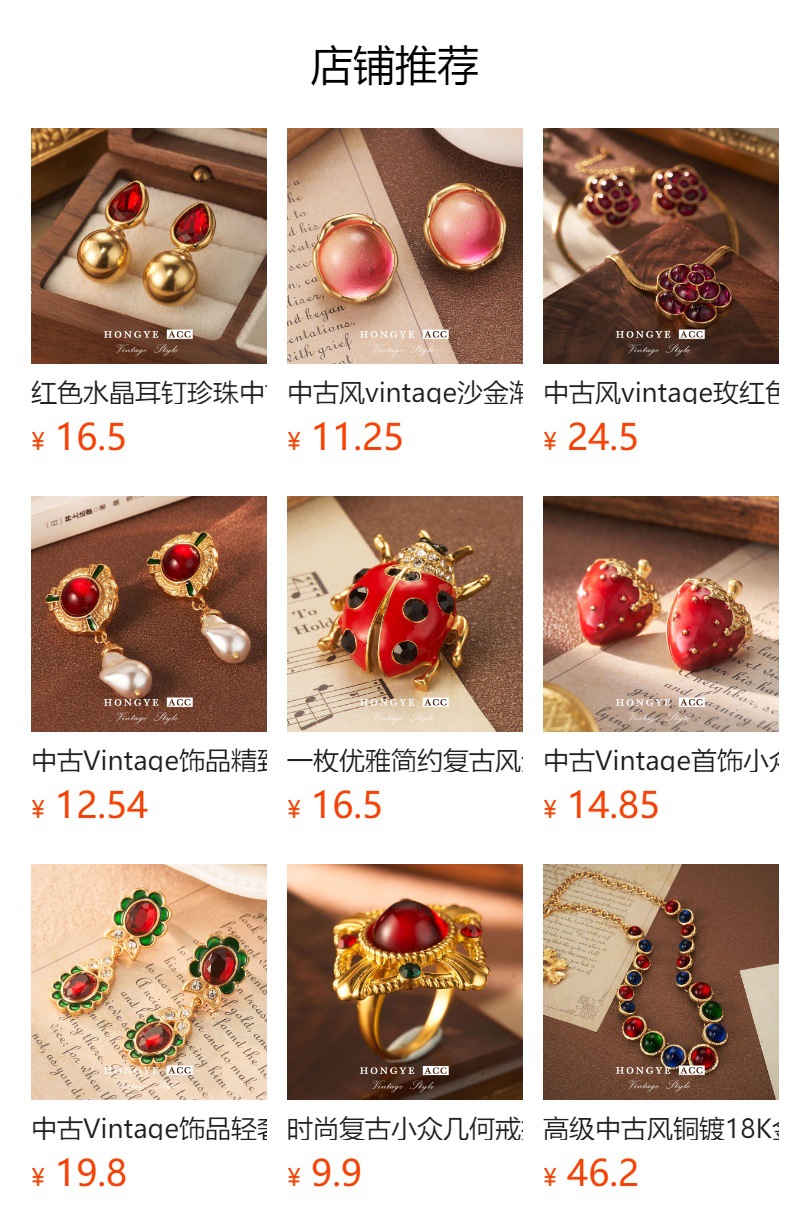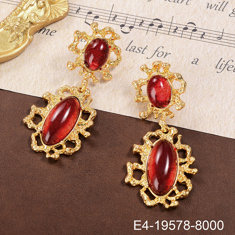 春夏新款中古vintage饰品珍珠红色莱茵石花朵几何耳环小众设计女