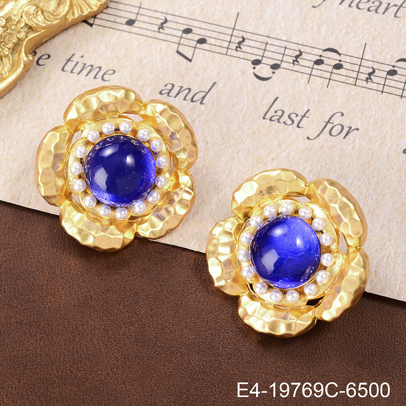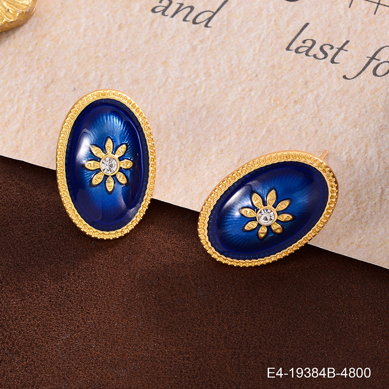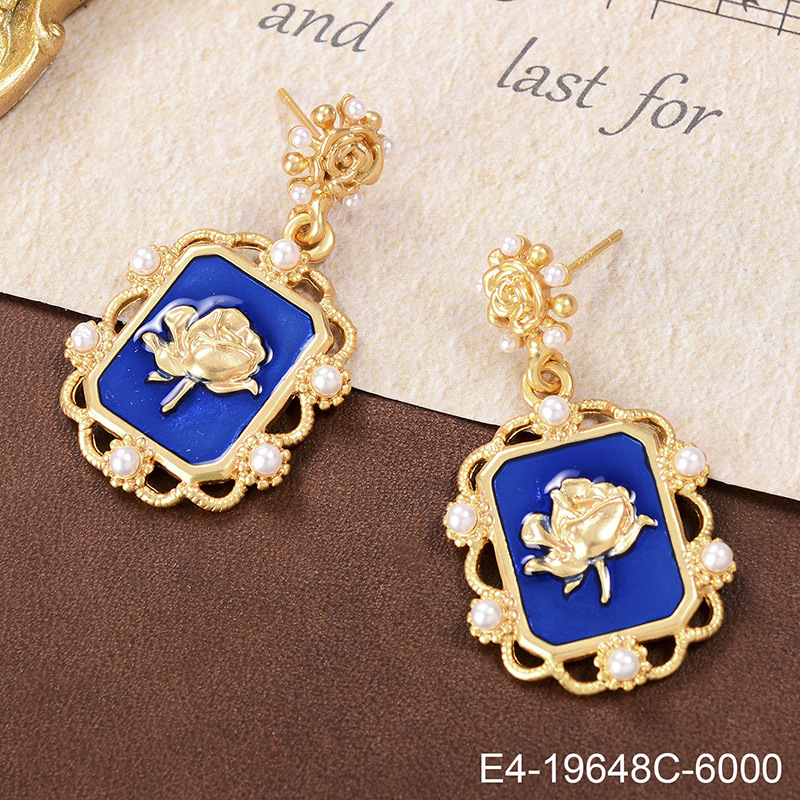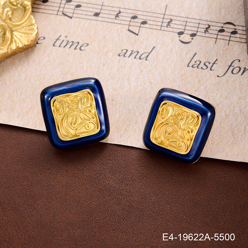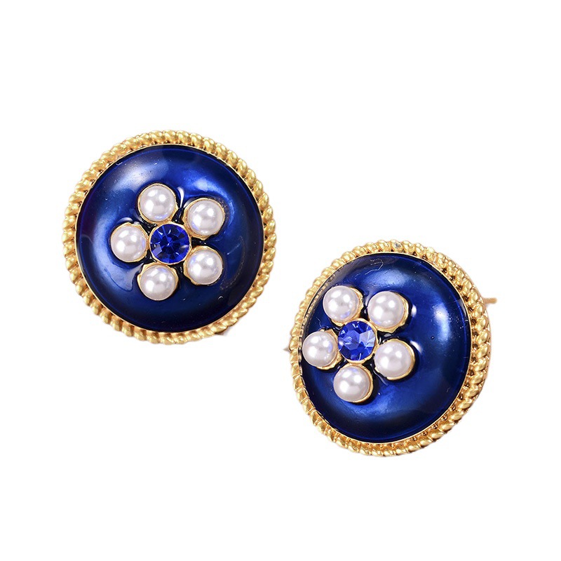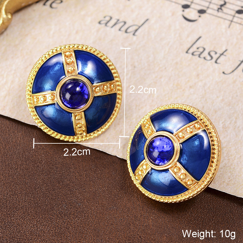 复古宫廷风克莱因蓝耳饰时尚气质几何耳钉2024春季新款设计高级感