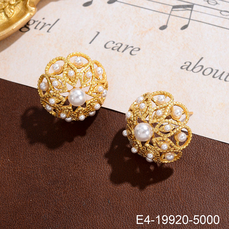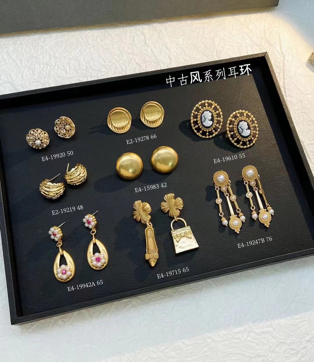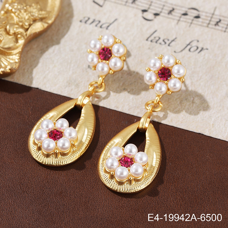 珍珠花朵流苏耳环复古vintage中古耳饰宫廷风高级感百搭耳钉批发