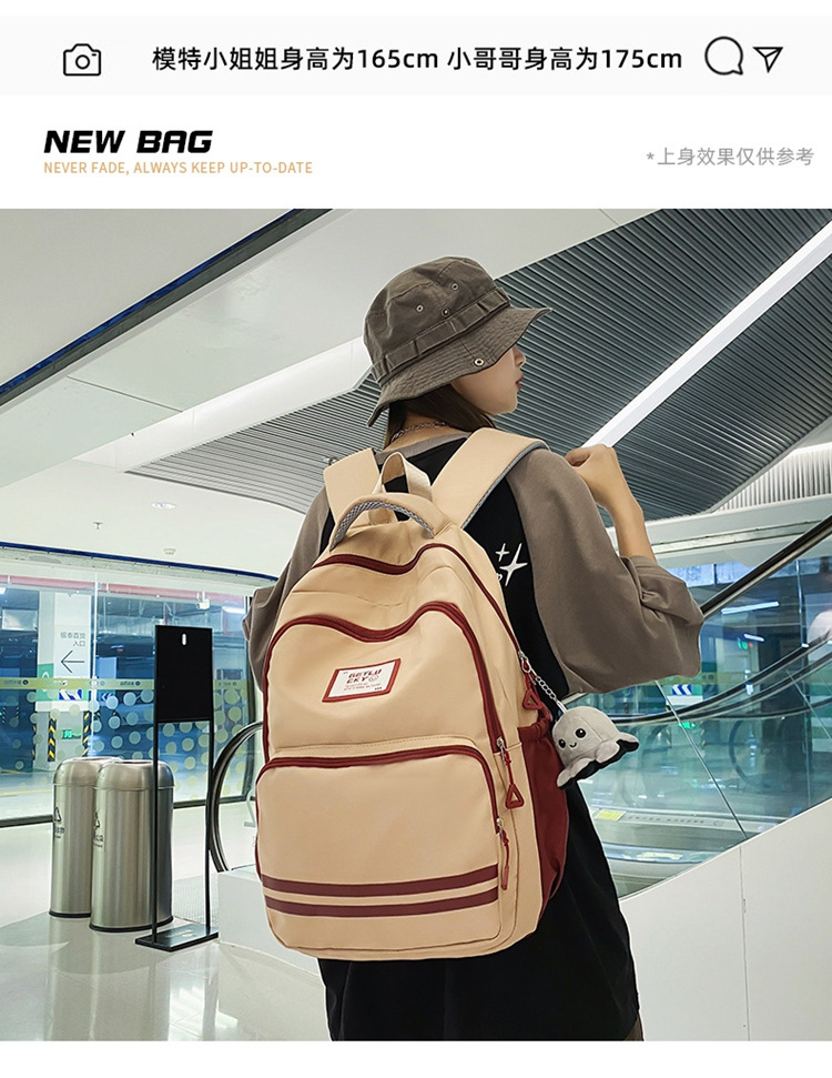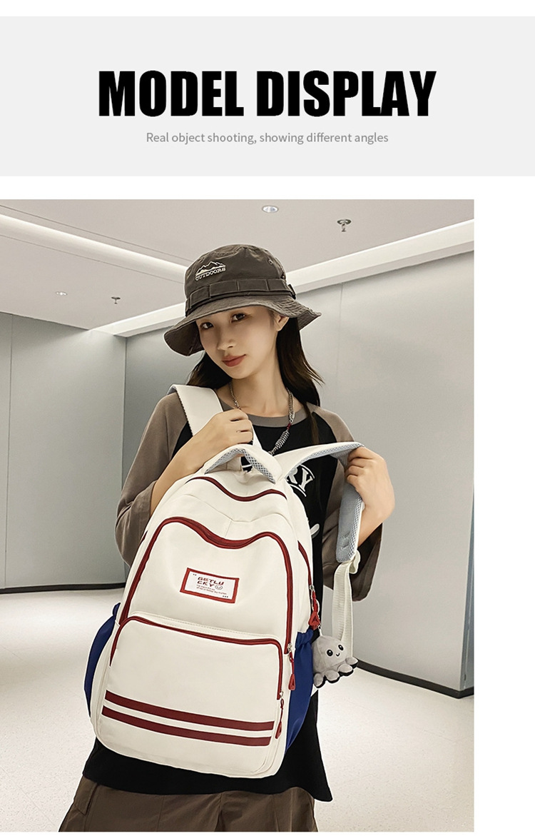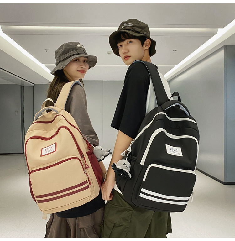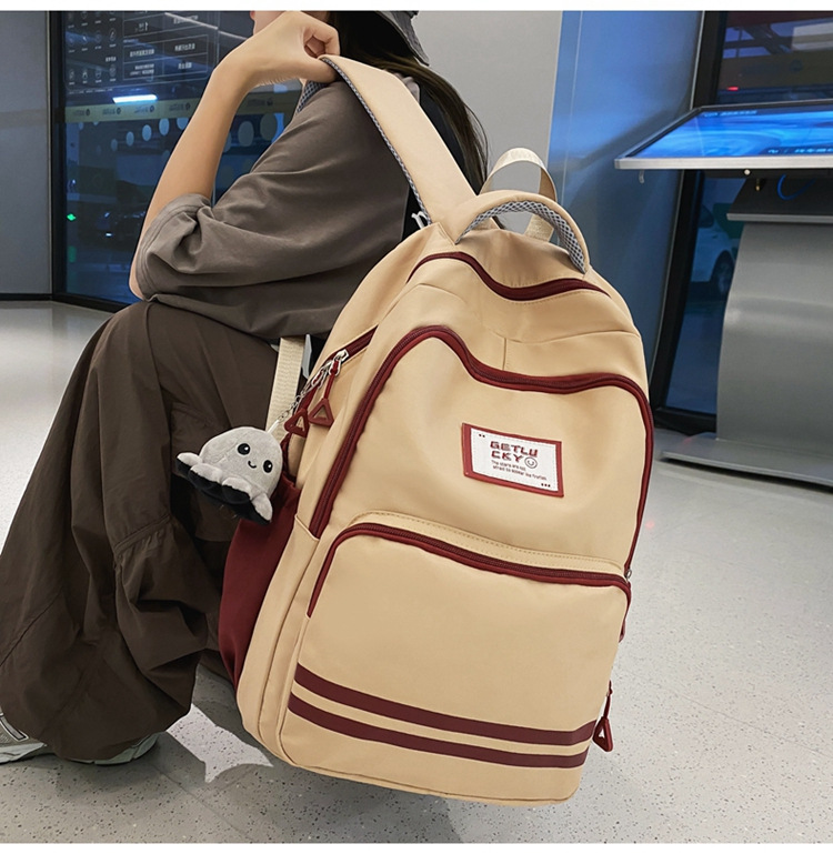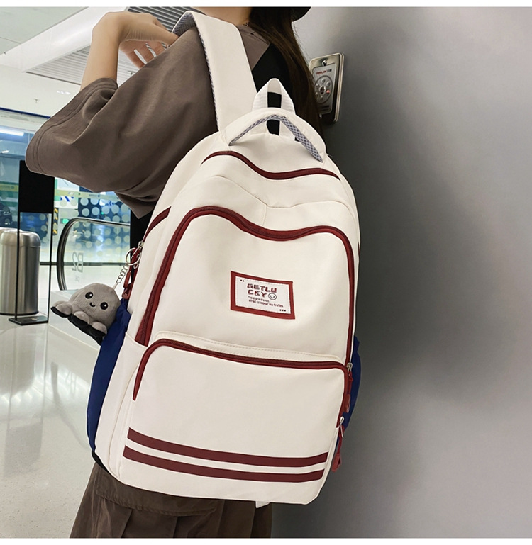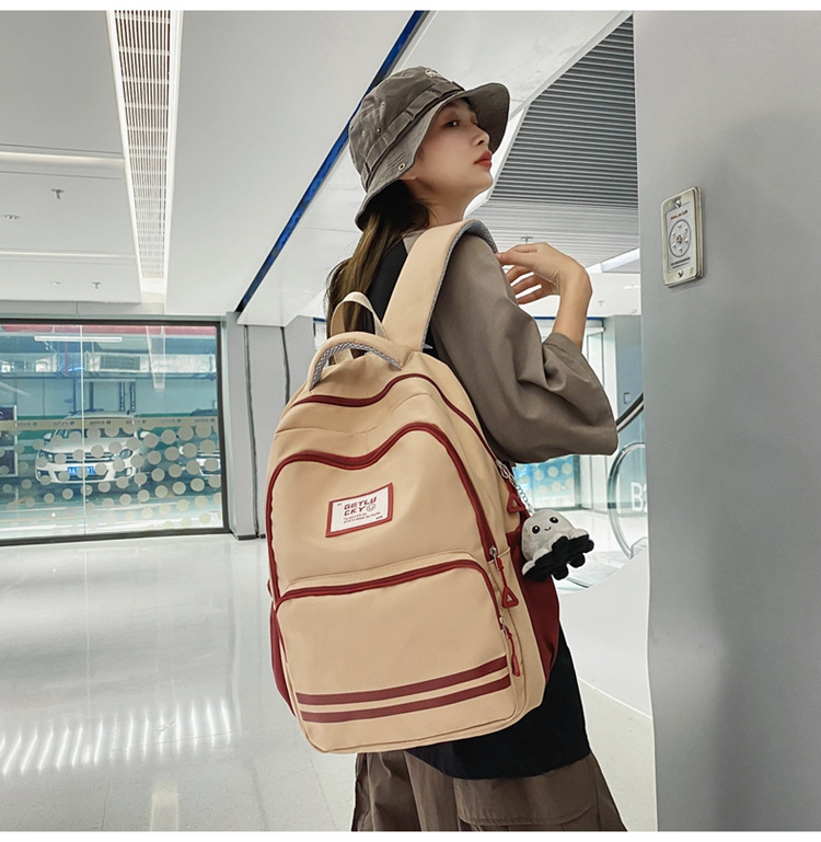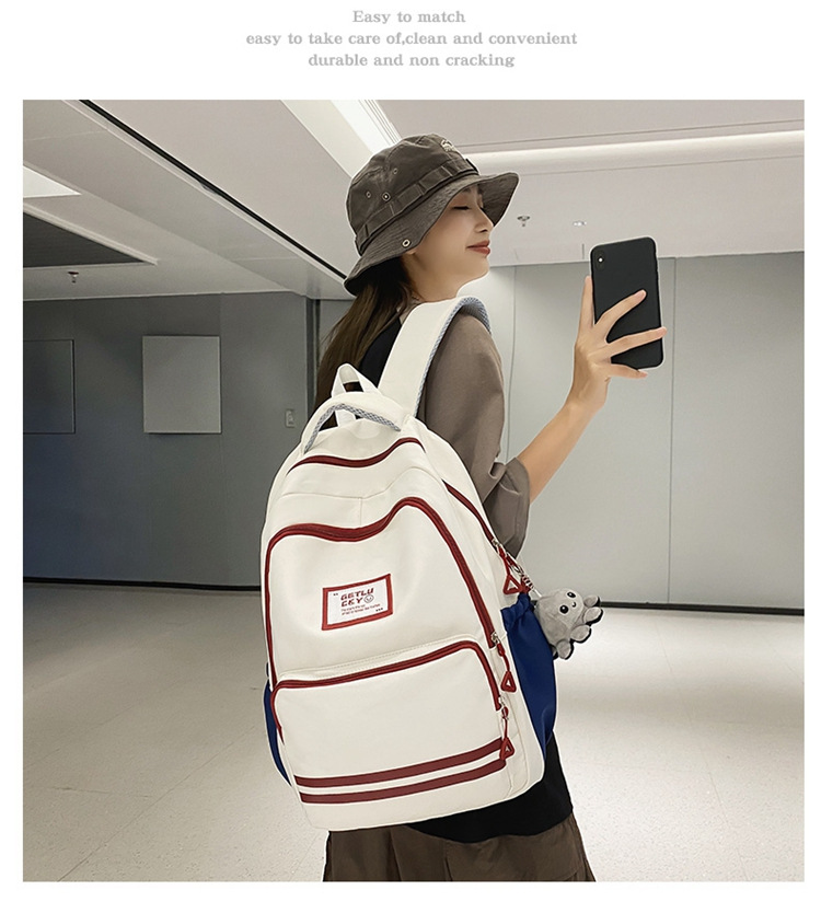 新款时尚双肩包多层初高中学生书包撞色简约外出电脑背包