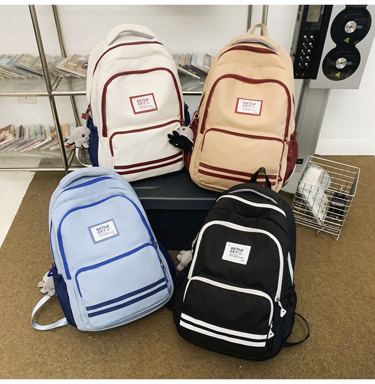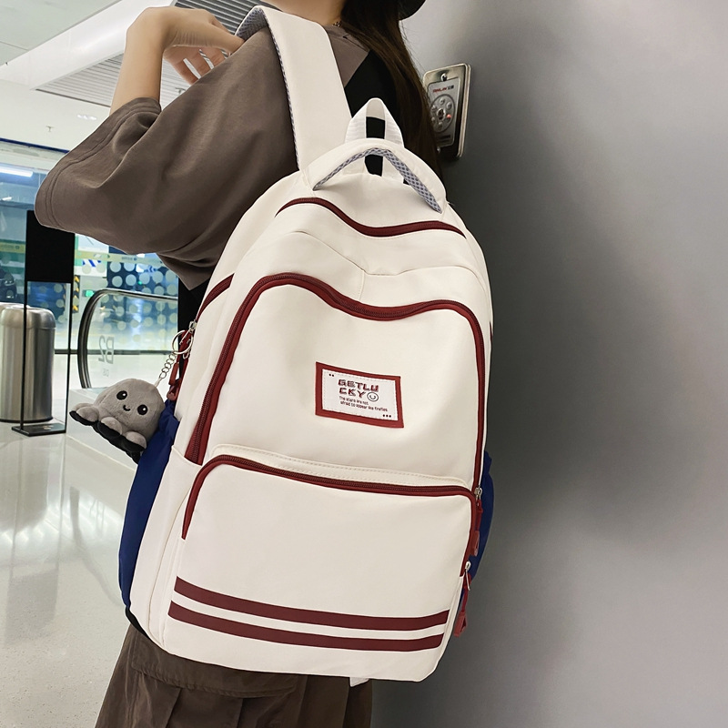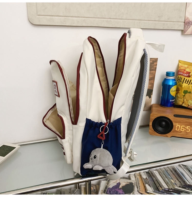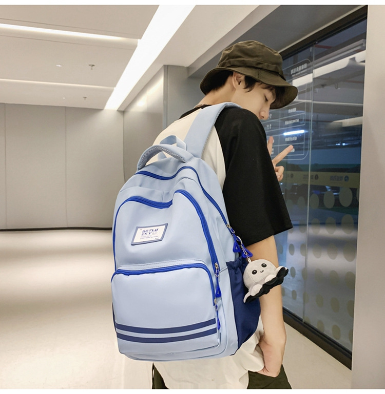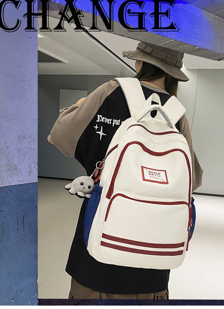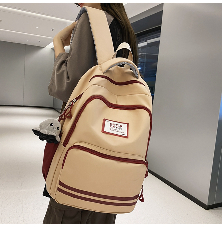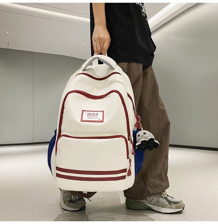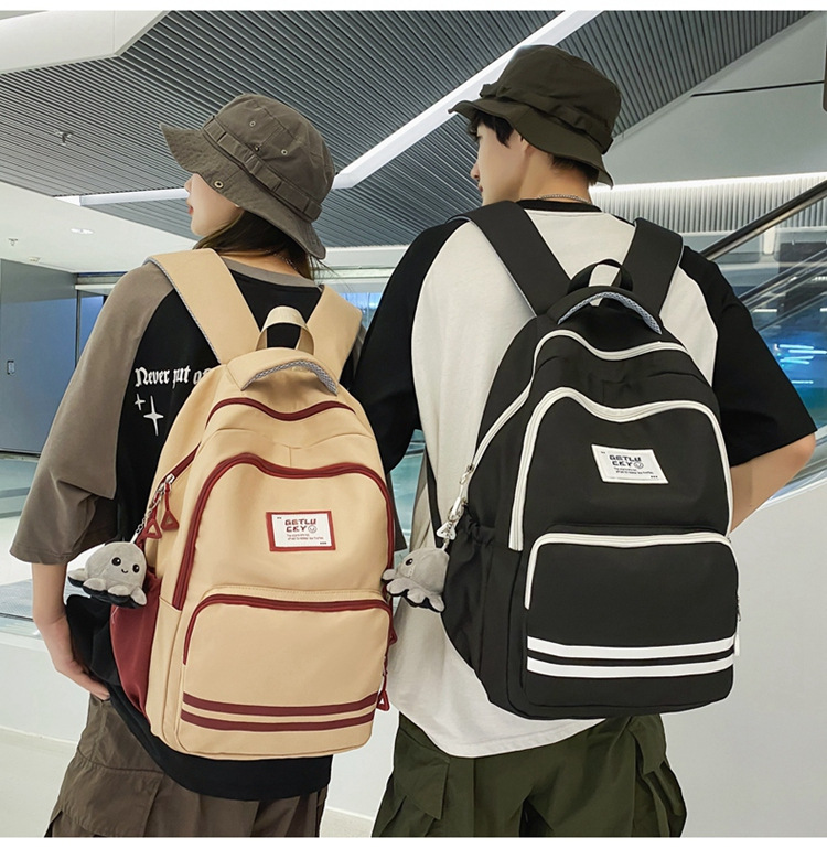 新款时尚双肩包多层初高中学生书包撞色简约外出电脑背包