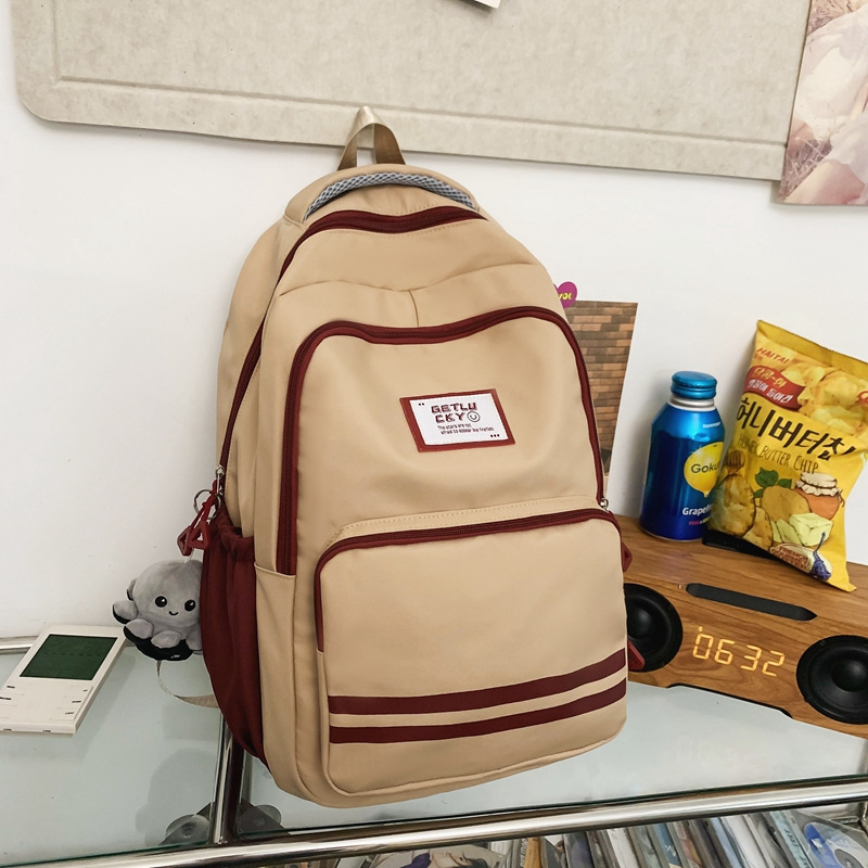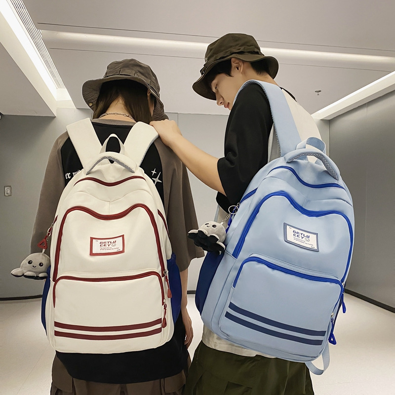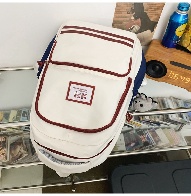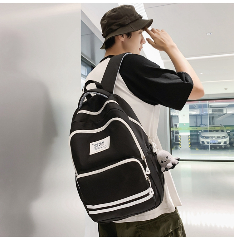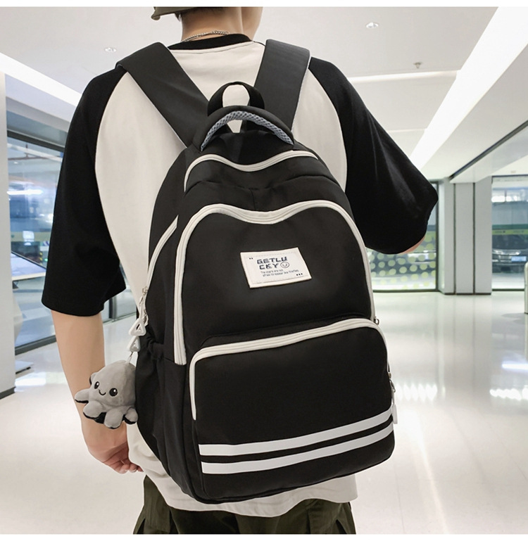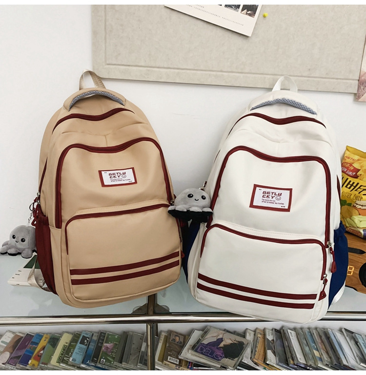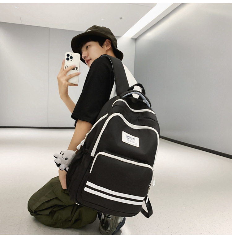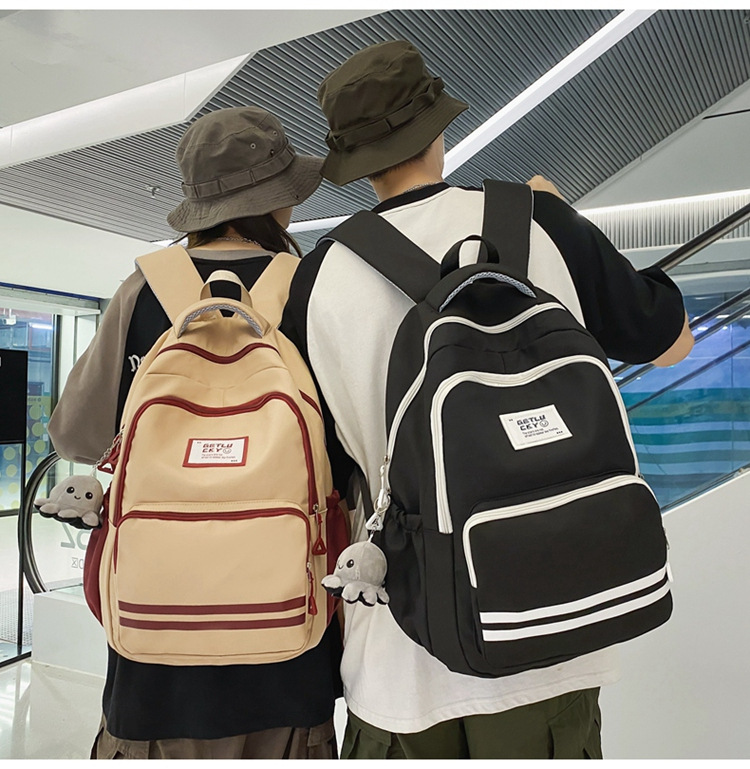 新款时尚双肩包多层初高中学生书包撞色简约外出电脑背包