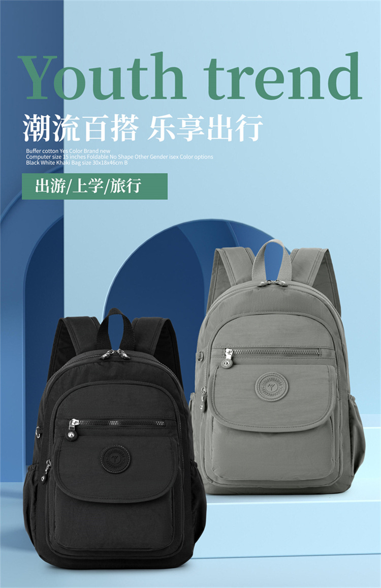 双肩包跨境风潮2024新款女士背包休闲旅行袋学生书包尼龙布包