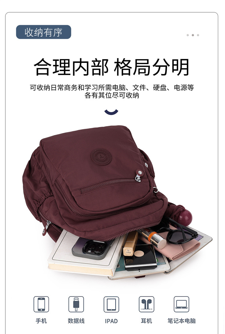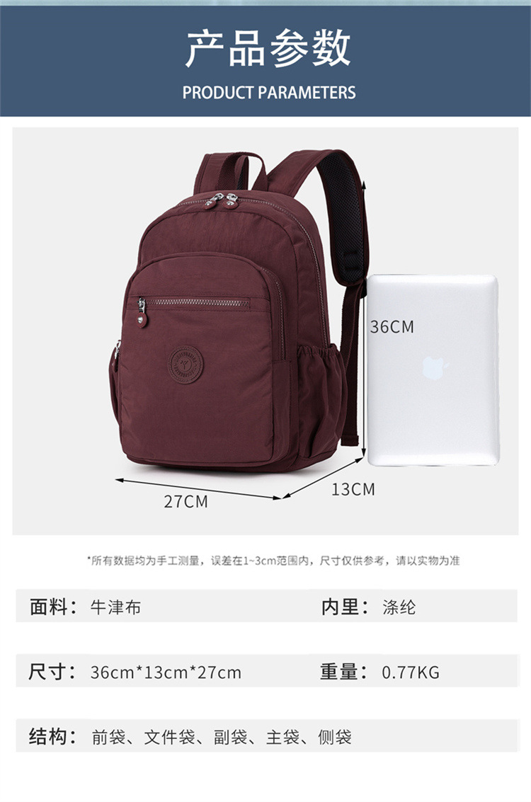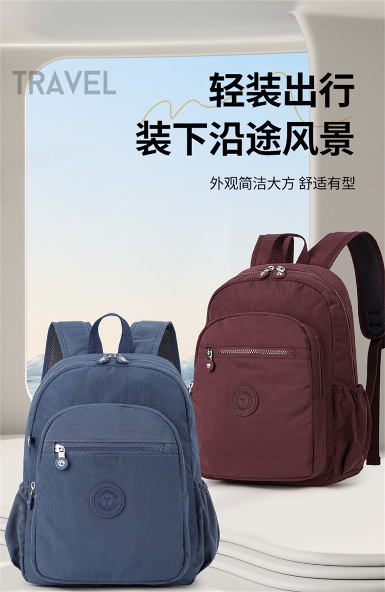 时尚书包2024新款双背包轻便双肩包女旅行背包防泼水尼龙布包