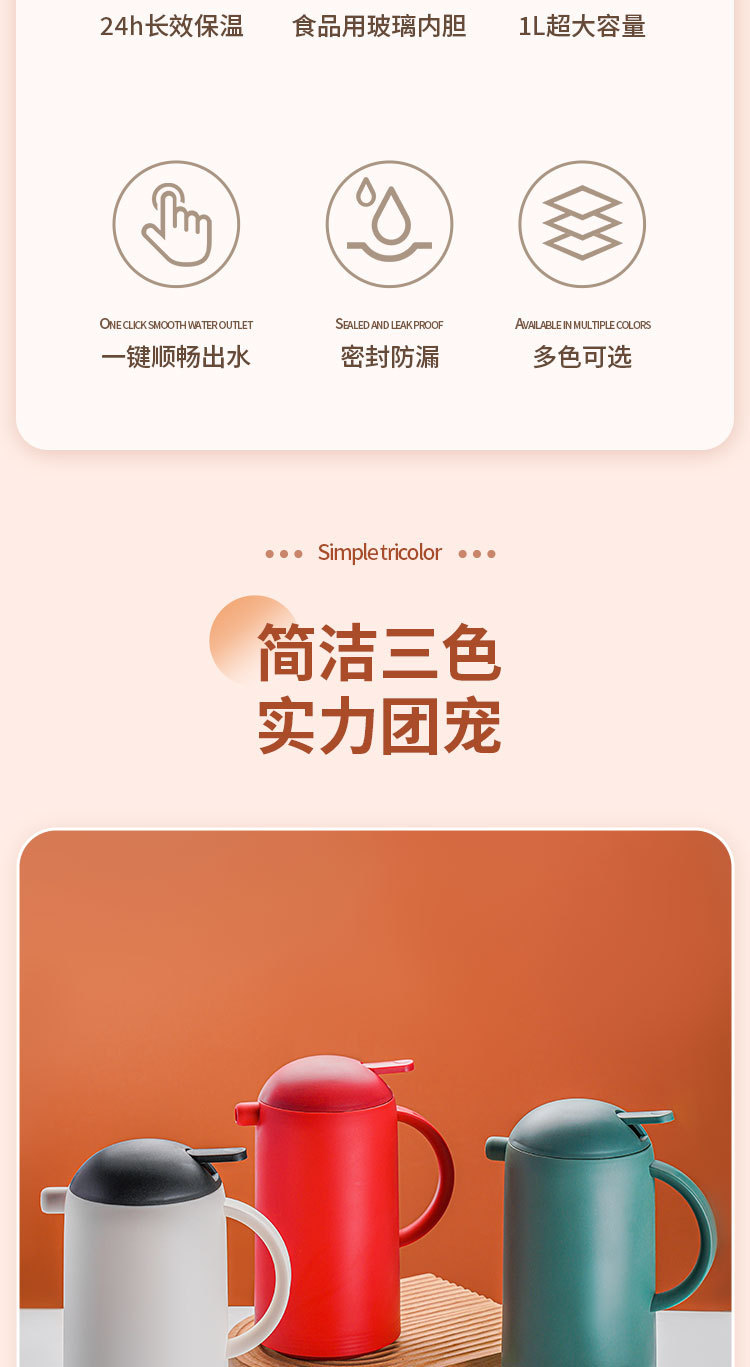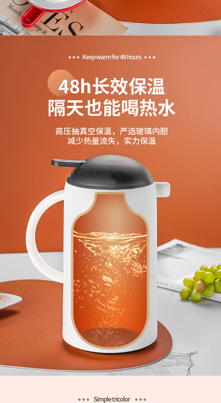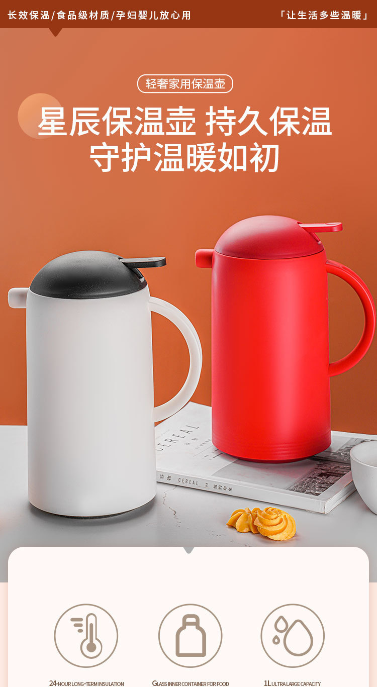星辰保温壶高颜值家用大容量保温壶玻璃内胆保温杯2升壶批发礼品