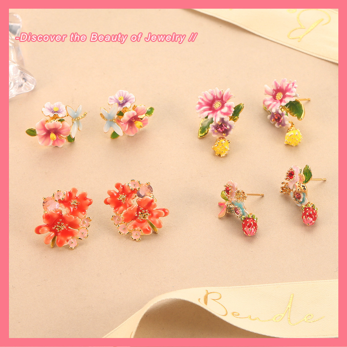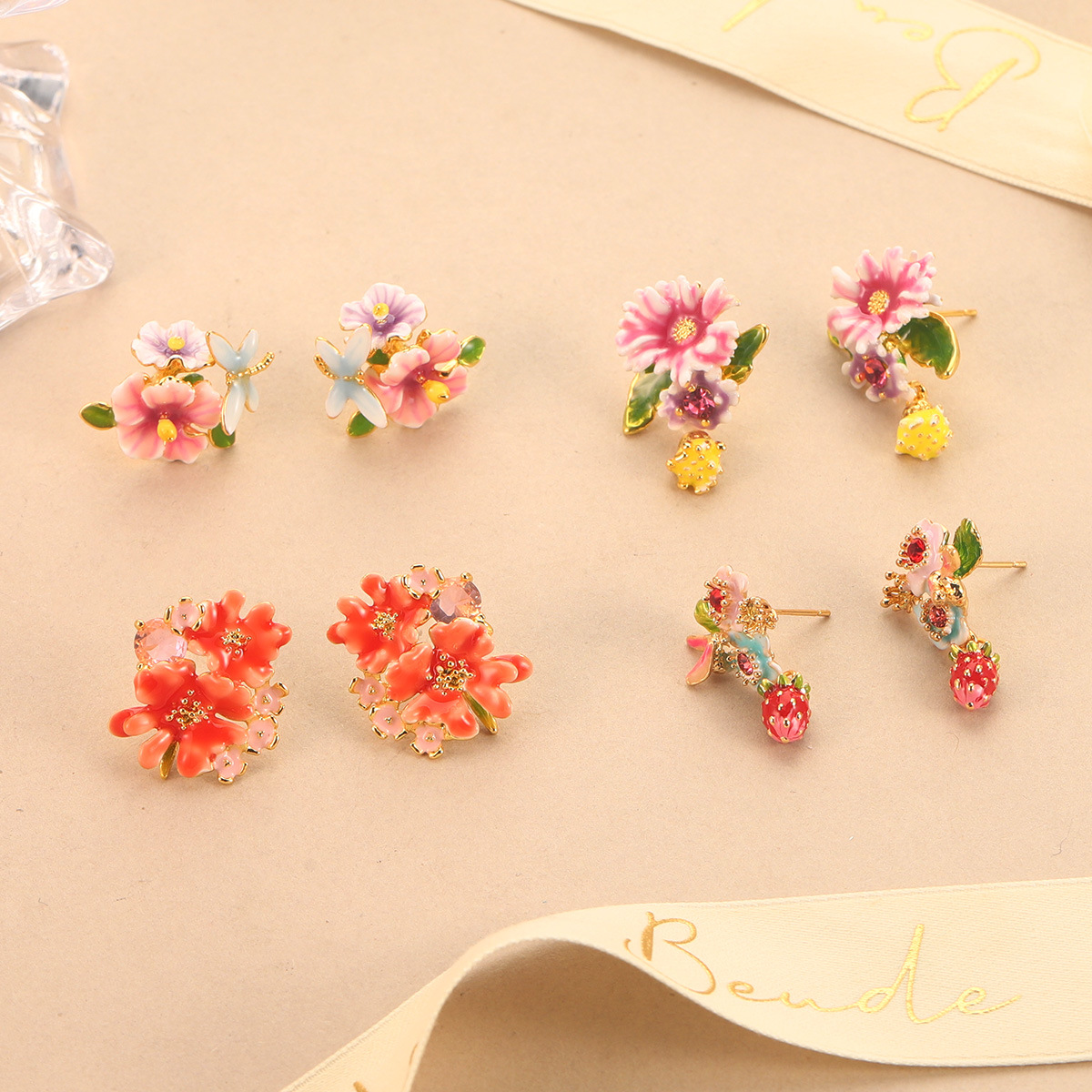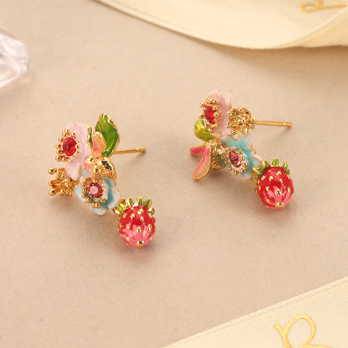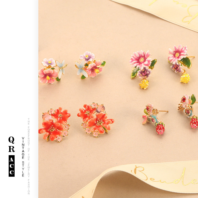 复古花朵耳环新款气质草莓耳饰珐琅彩滴油水果流苏甜美气质耳钉女