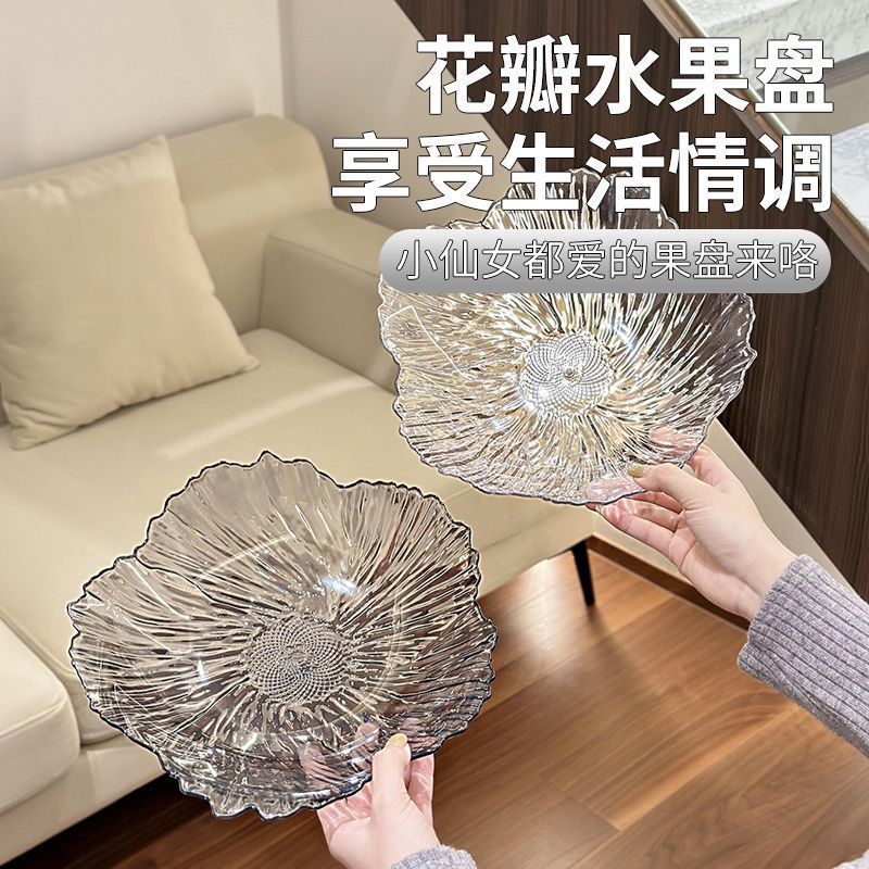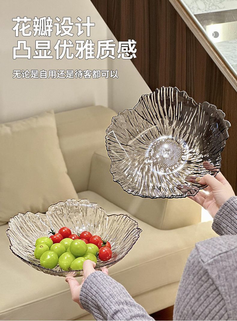 轻奢花瓣水果盘简约玻璃水果盘客厅北欧糖果盘前台办公室果盘子