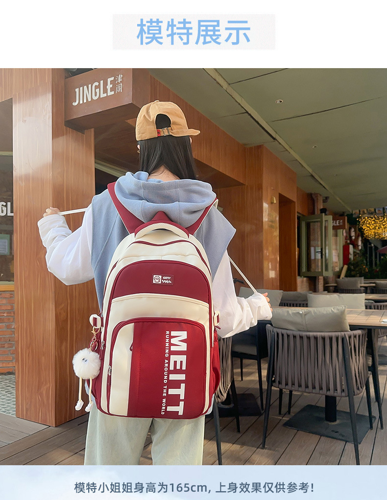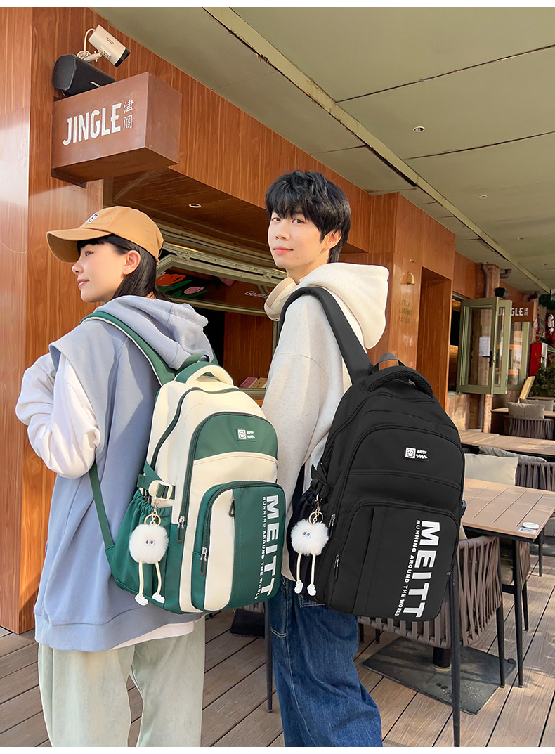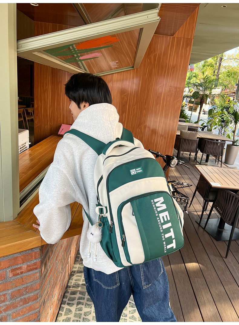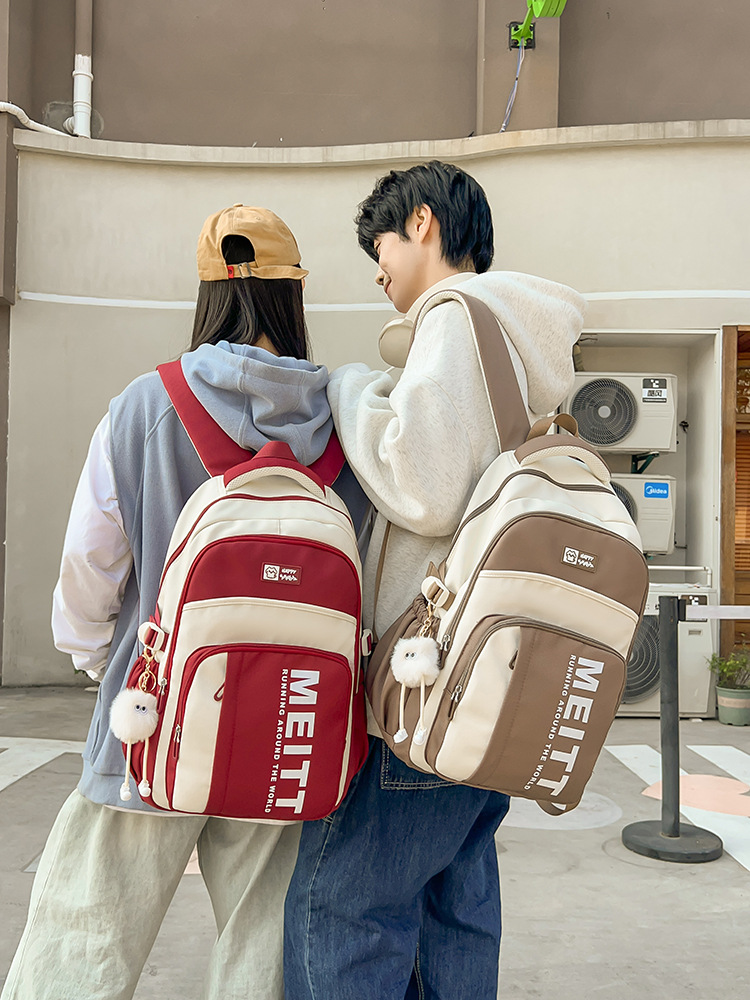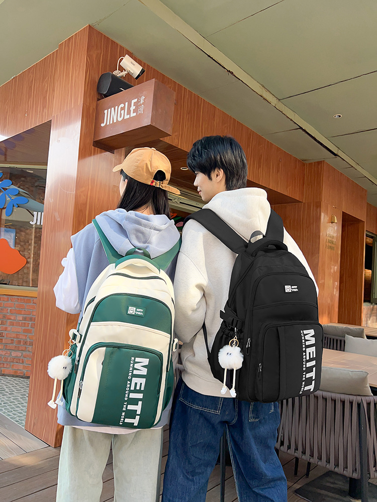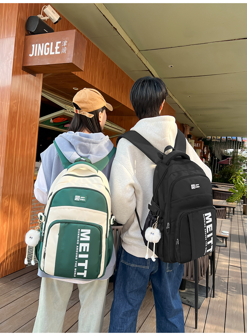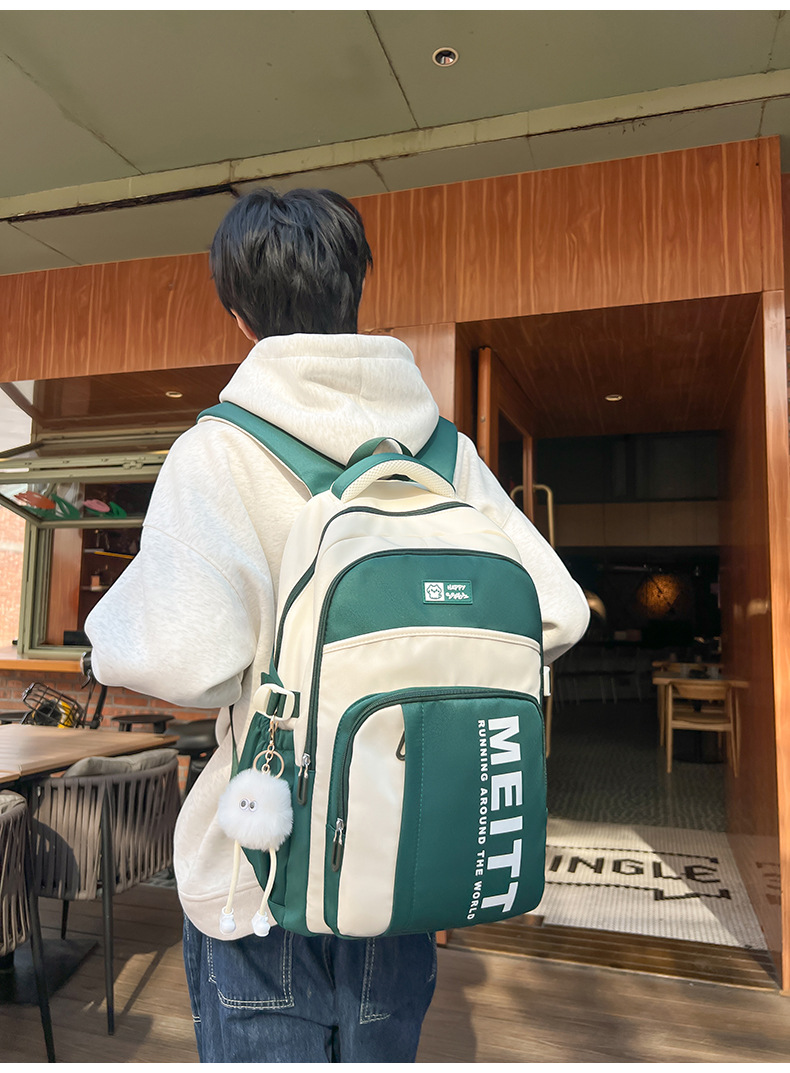 新款休闲双肩包女初高中生简约拼色旅行背包男通勤书包