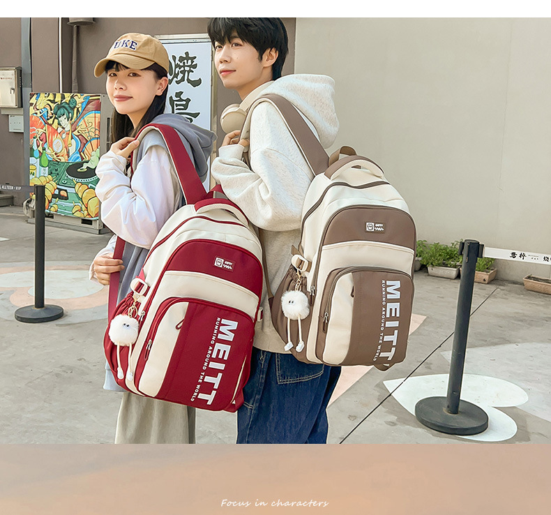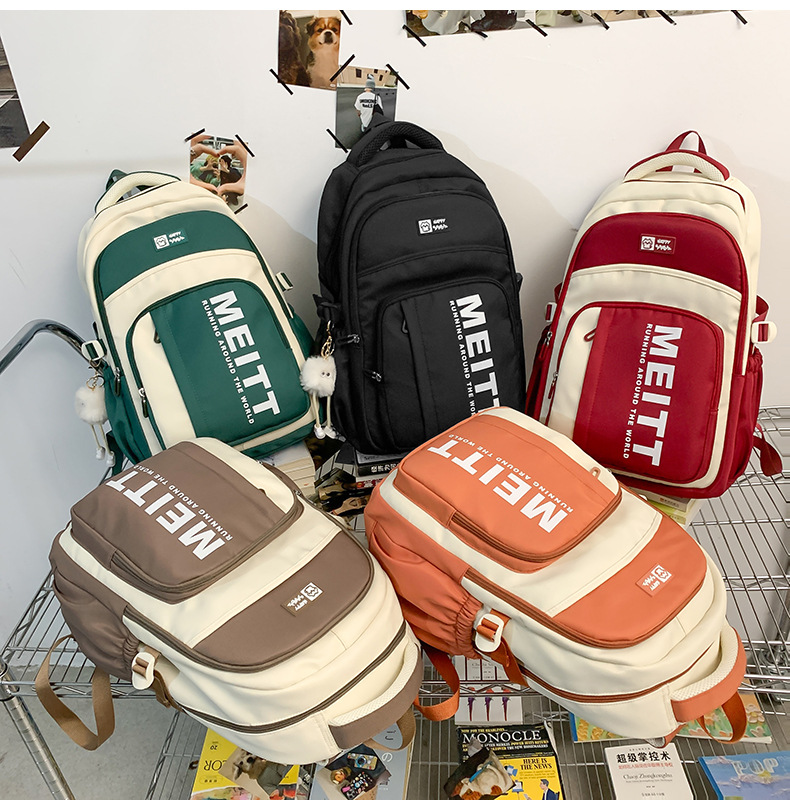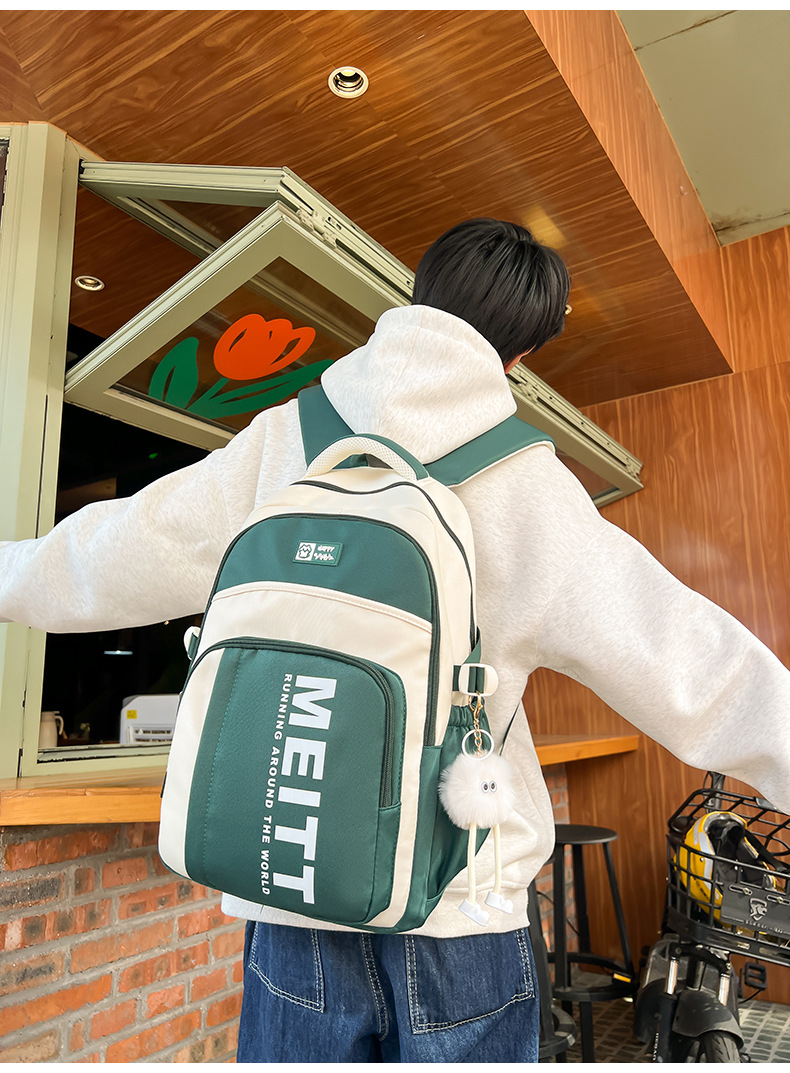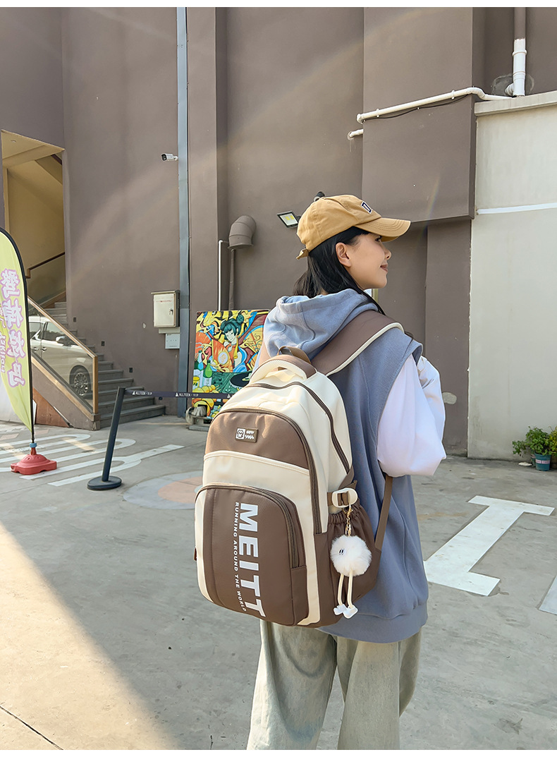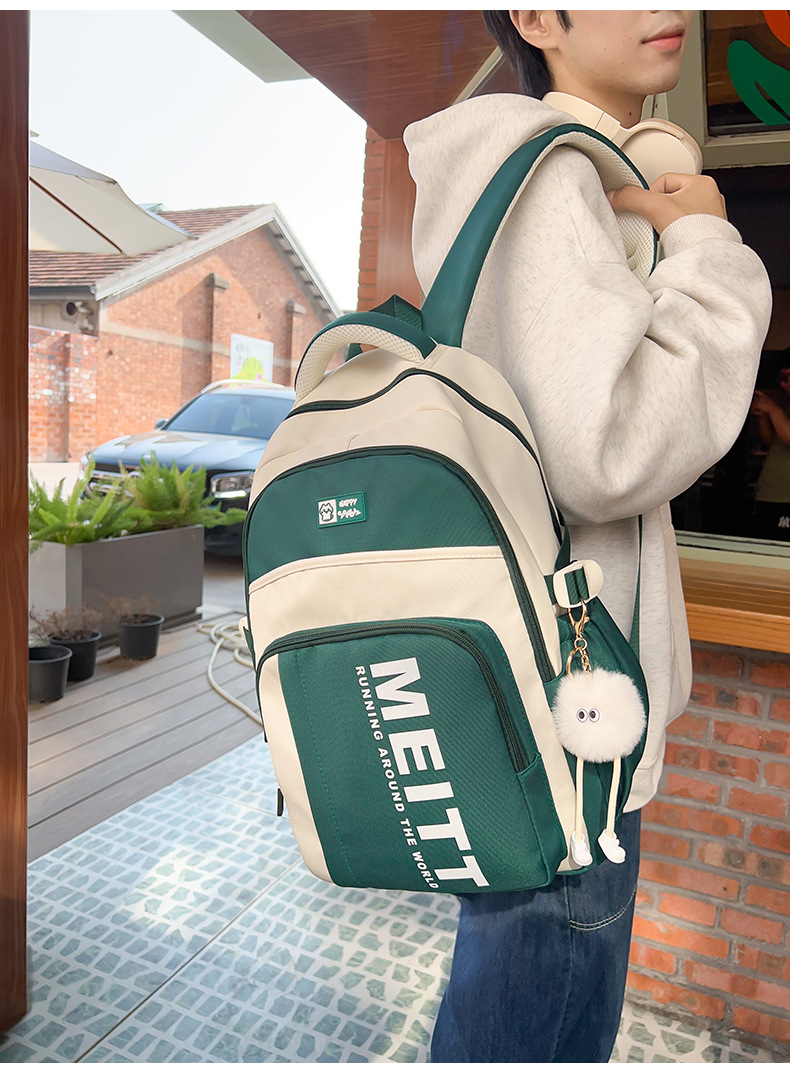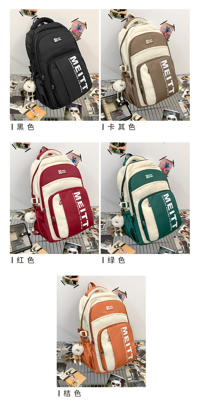 新款休闲双肩包女初高中生简约拼色旅行背包男通勤书包