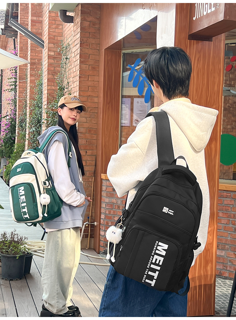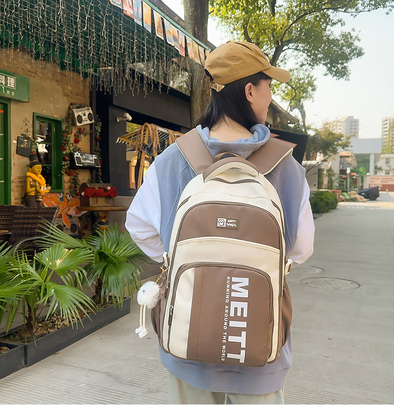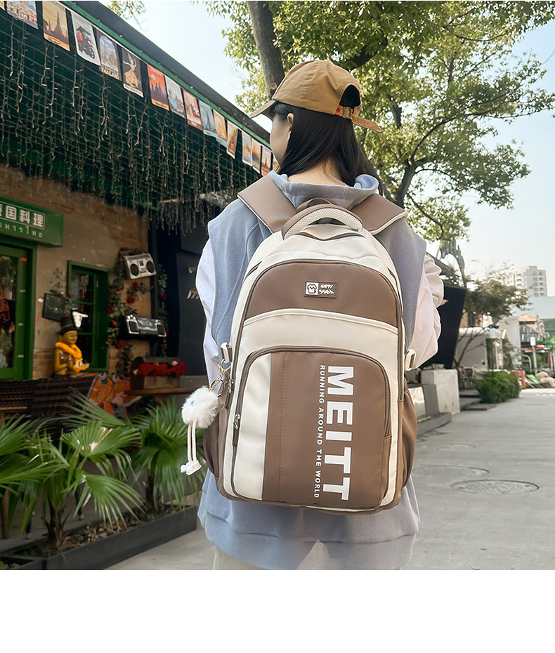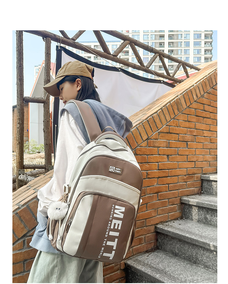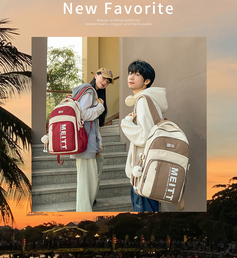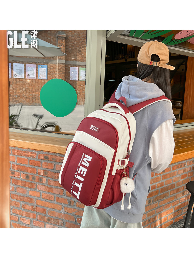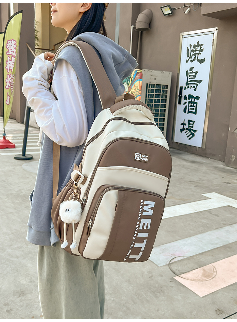 新款休闲双肩包女初高中生简约拼色旅行背包男通勤书包