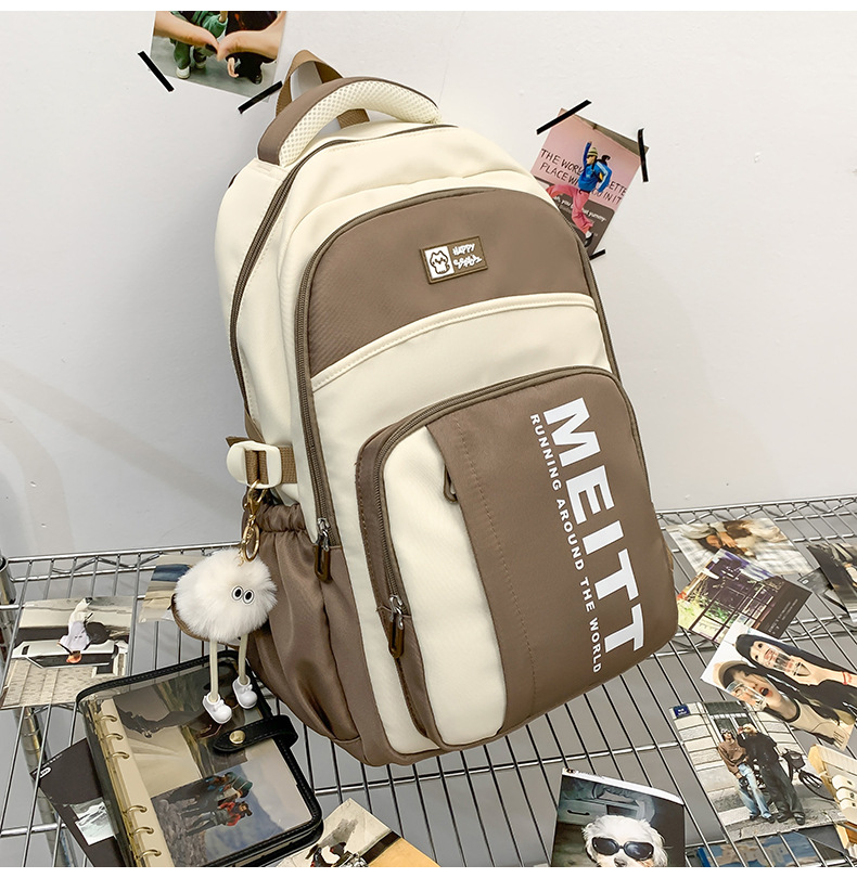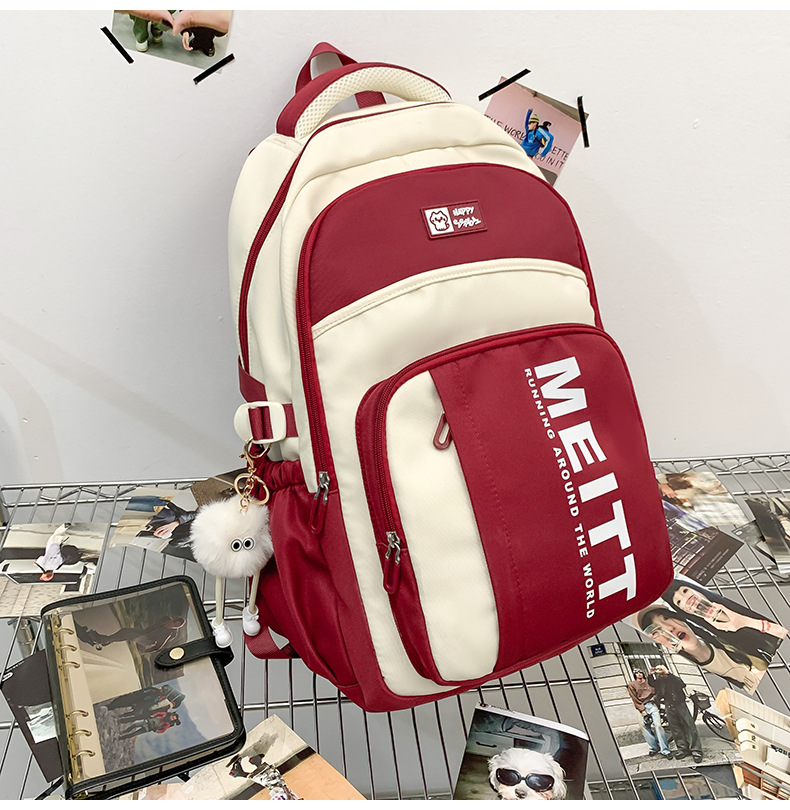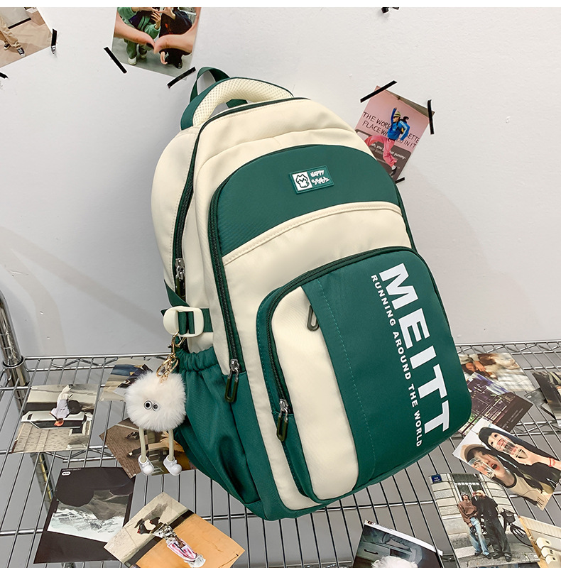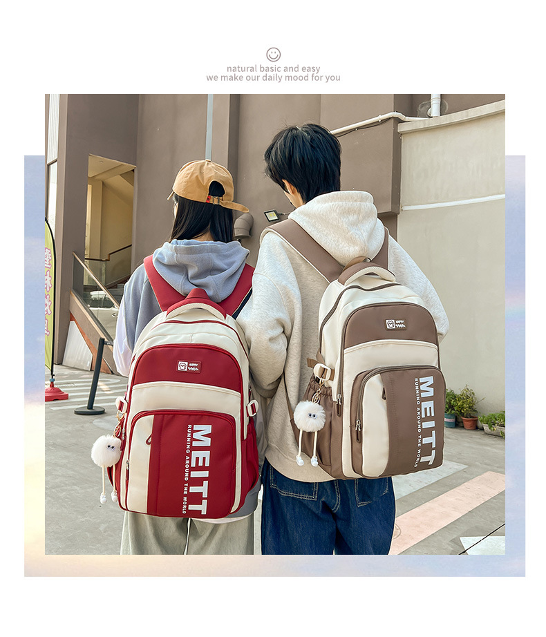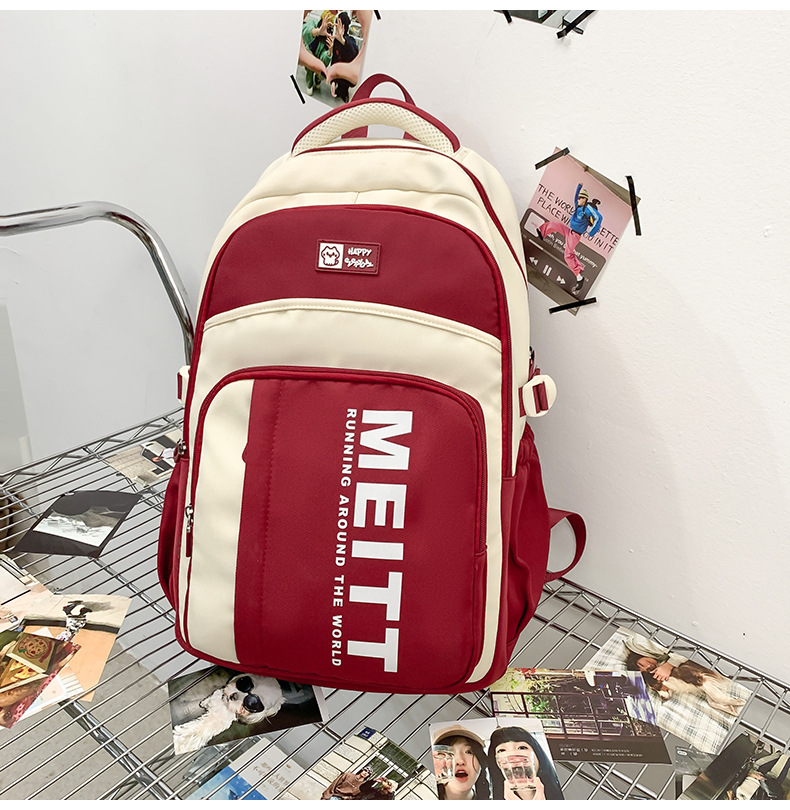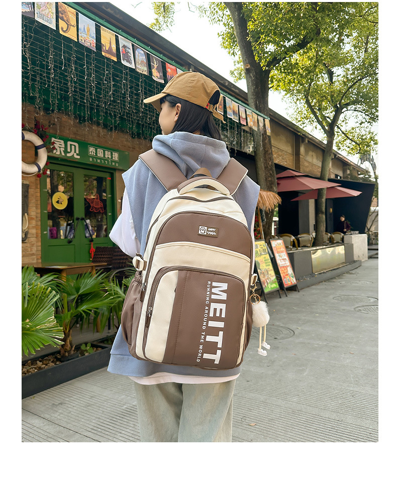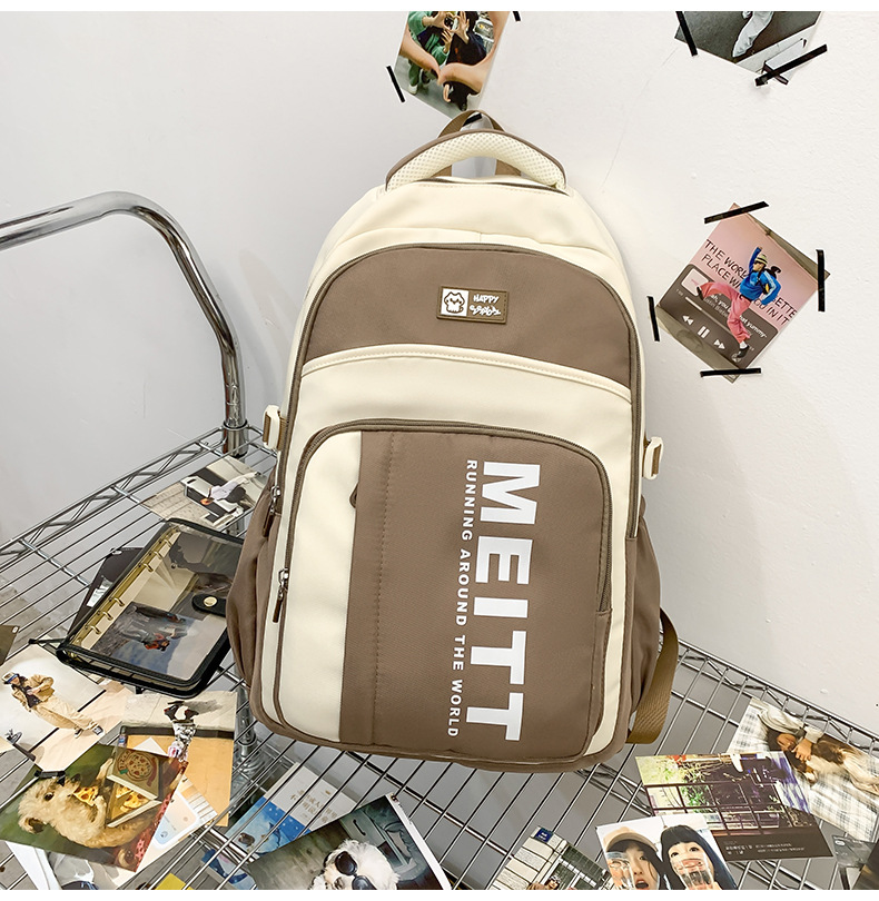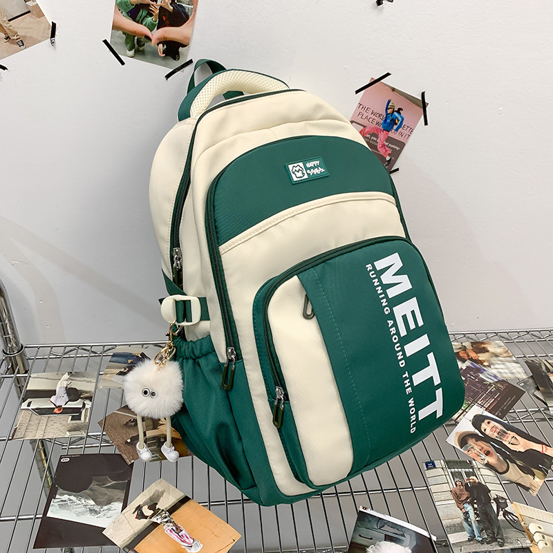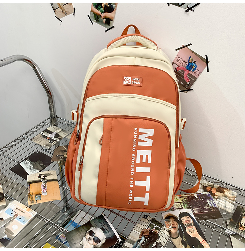 新款休闲双肩包女初高中生简约拼色旅行背包男通勤书包