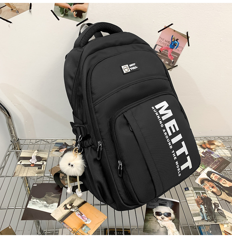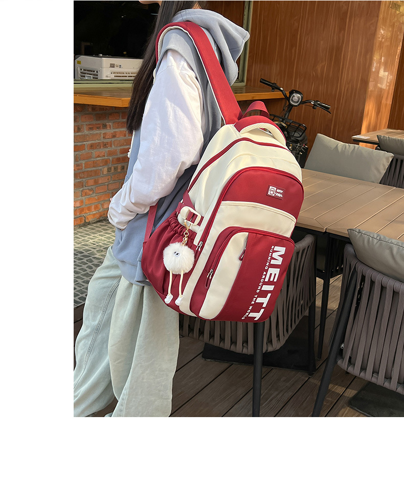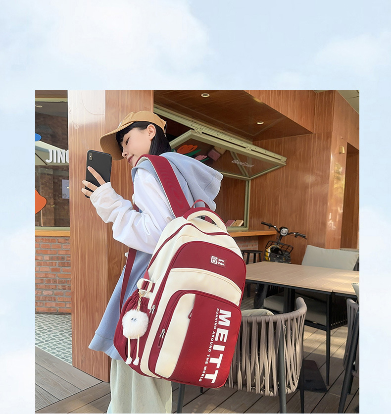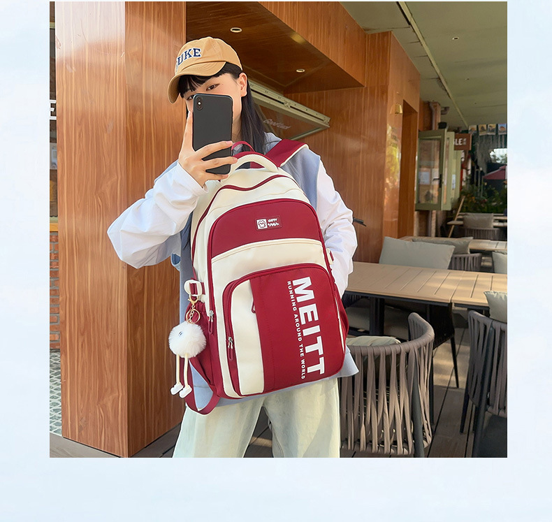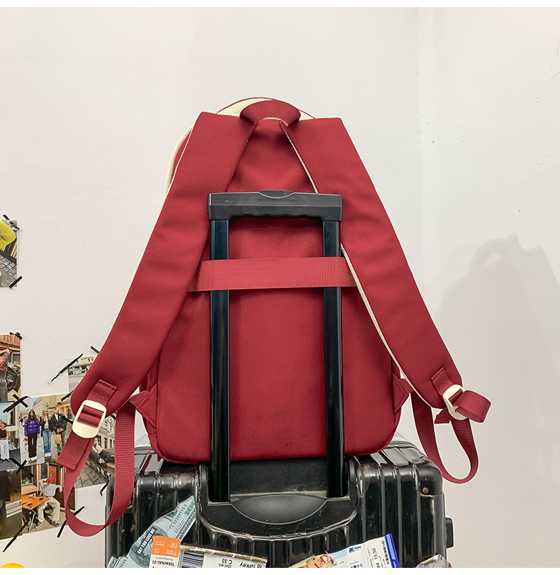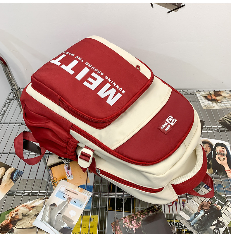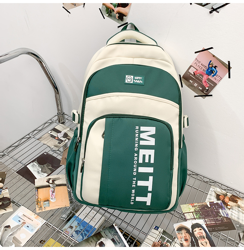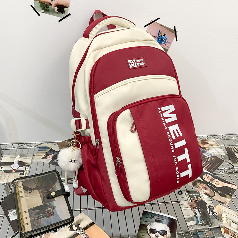 新款休闲双肩包女初高中生简约拼色旅行背包男通勤书包