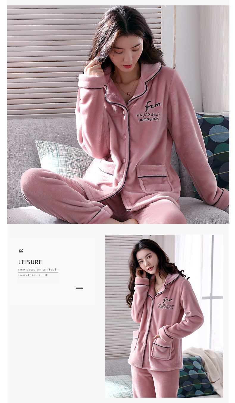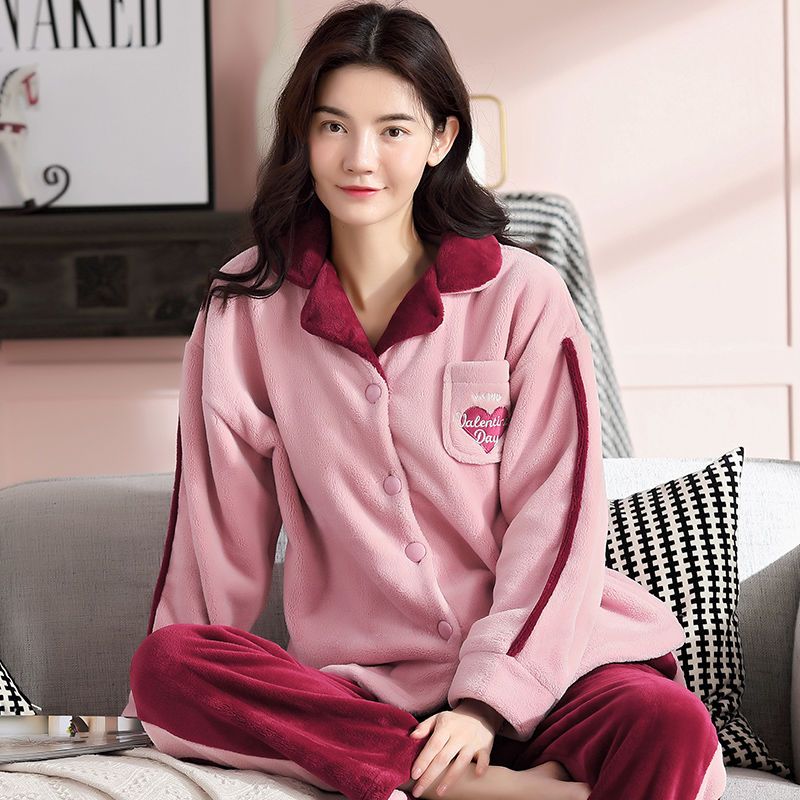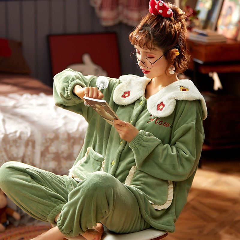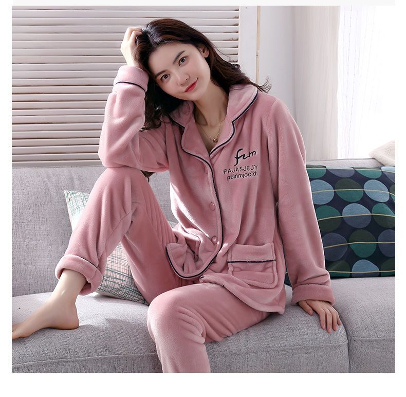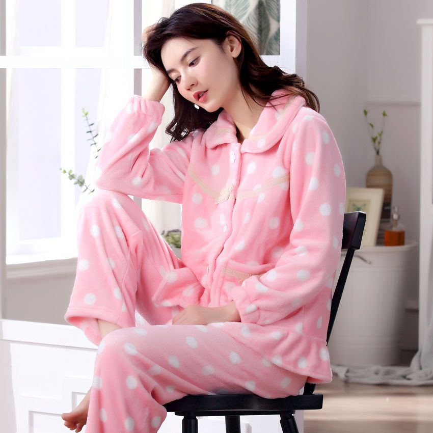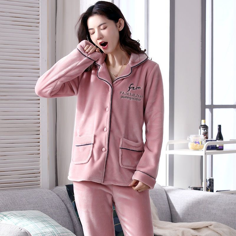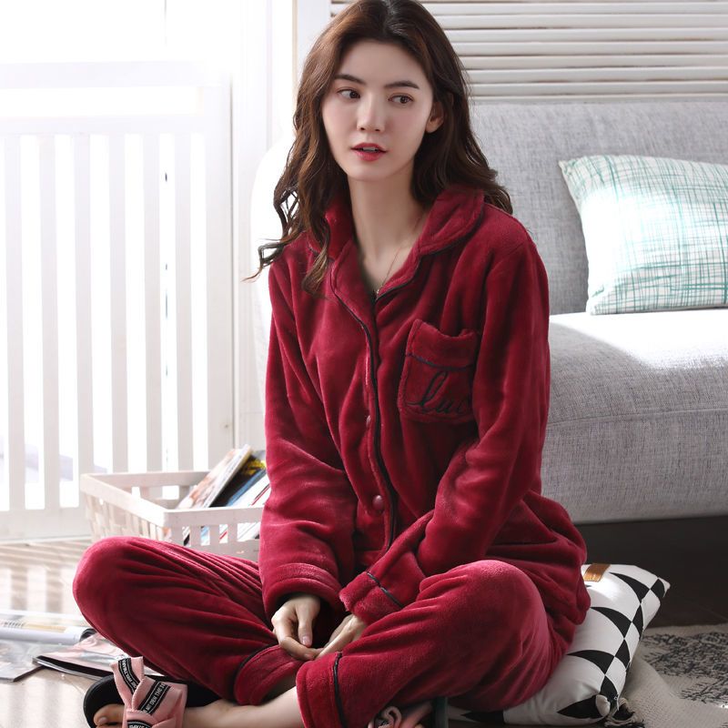 秋冬季珊瑚绒睡衣女冬加厚女士中年加绒法兰绒保暖内衣套装家居服